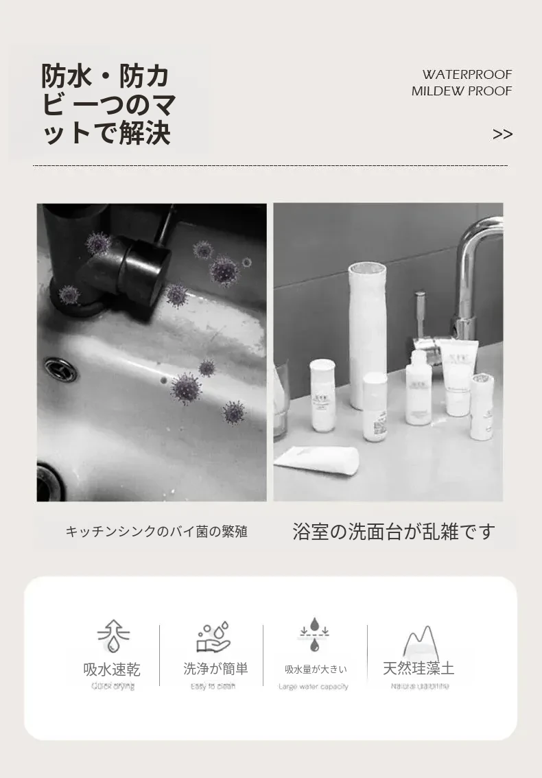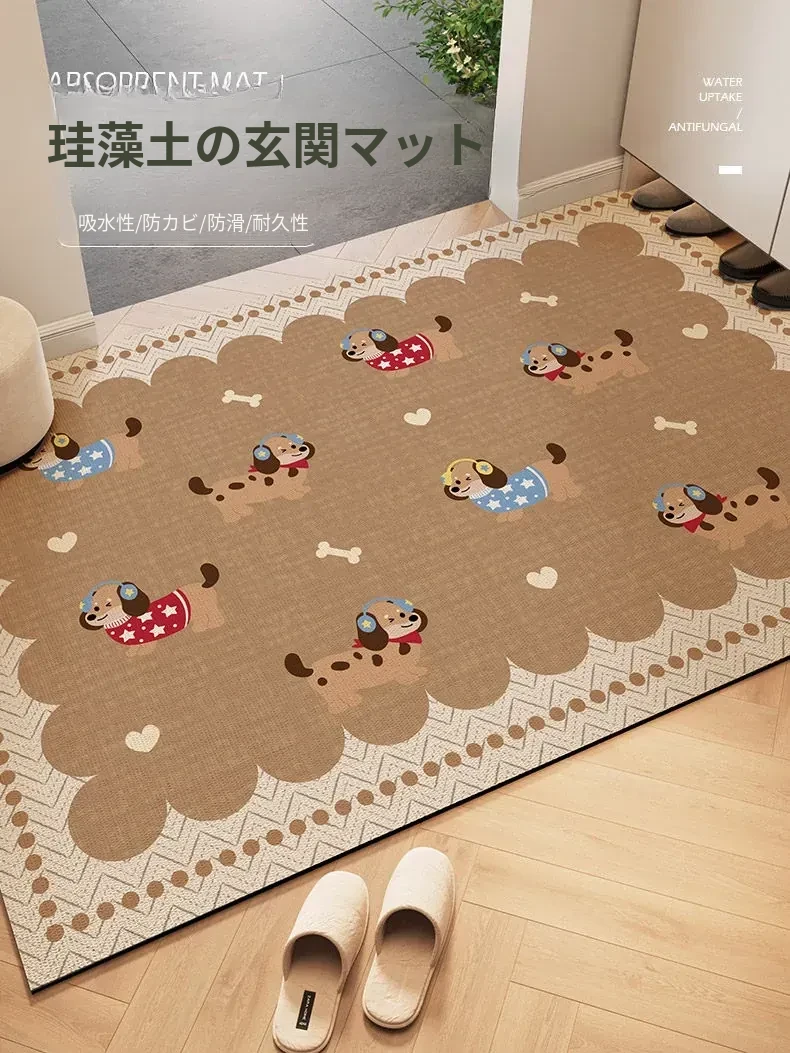 2026年新作!高級感あふれるデザインの珪藻土入り玄関マット - 日本式のスタイリッシュな室内用スリムカーペットで、おしゃれな玄関を演出!