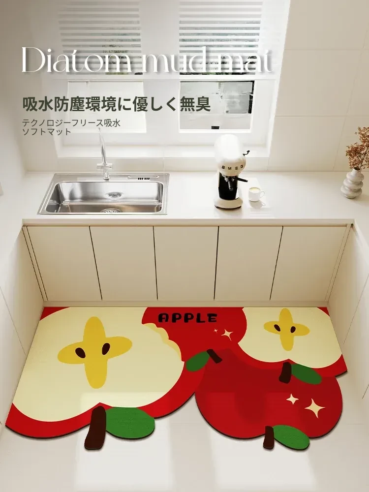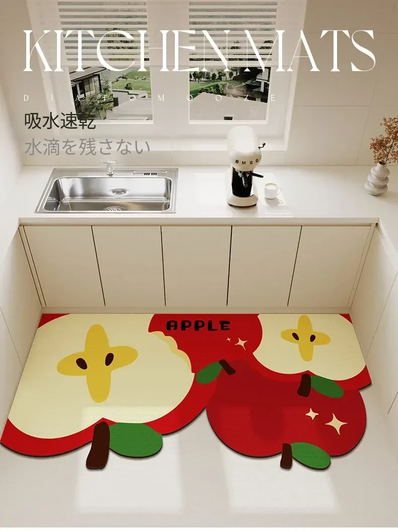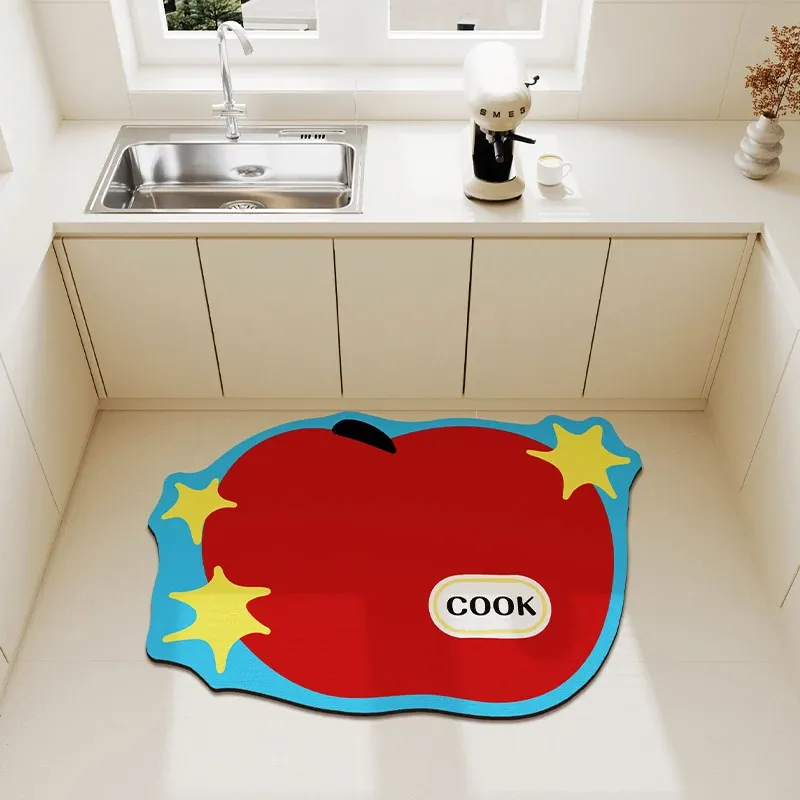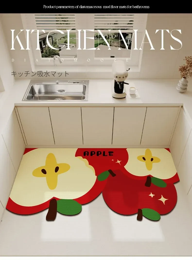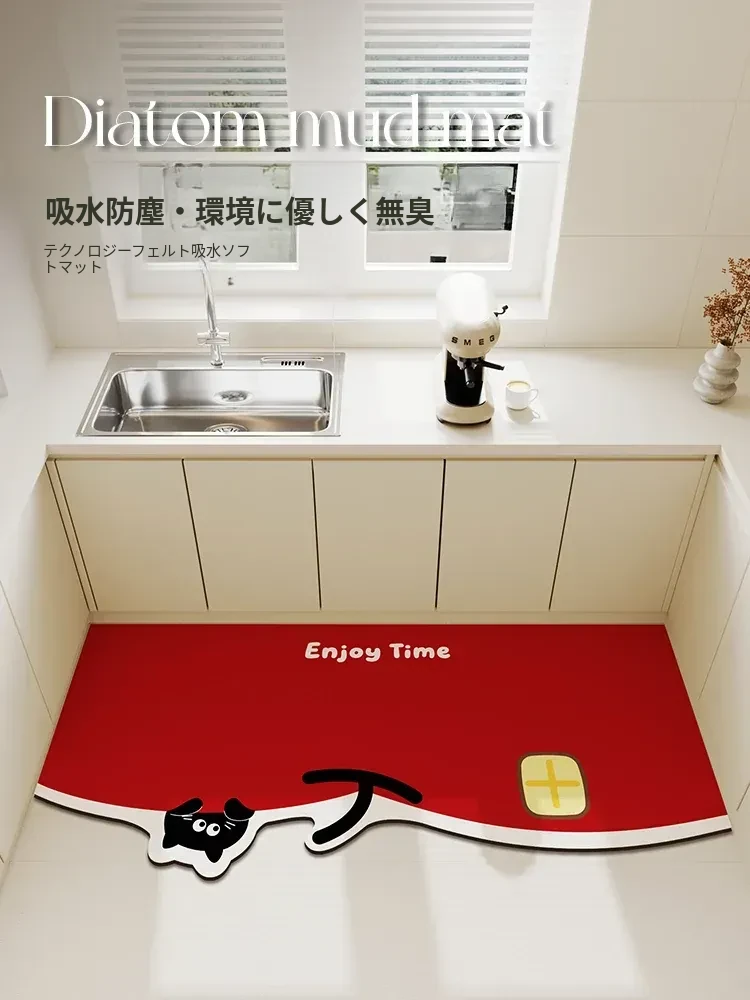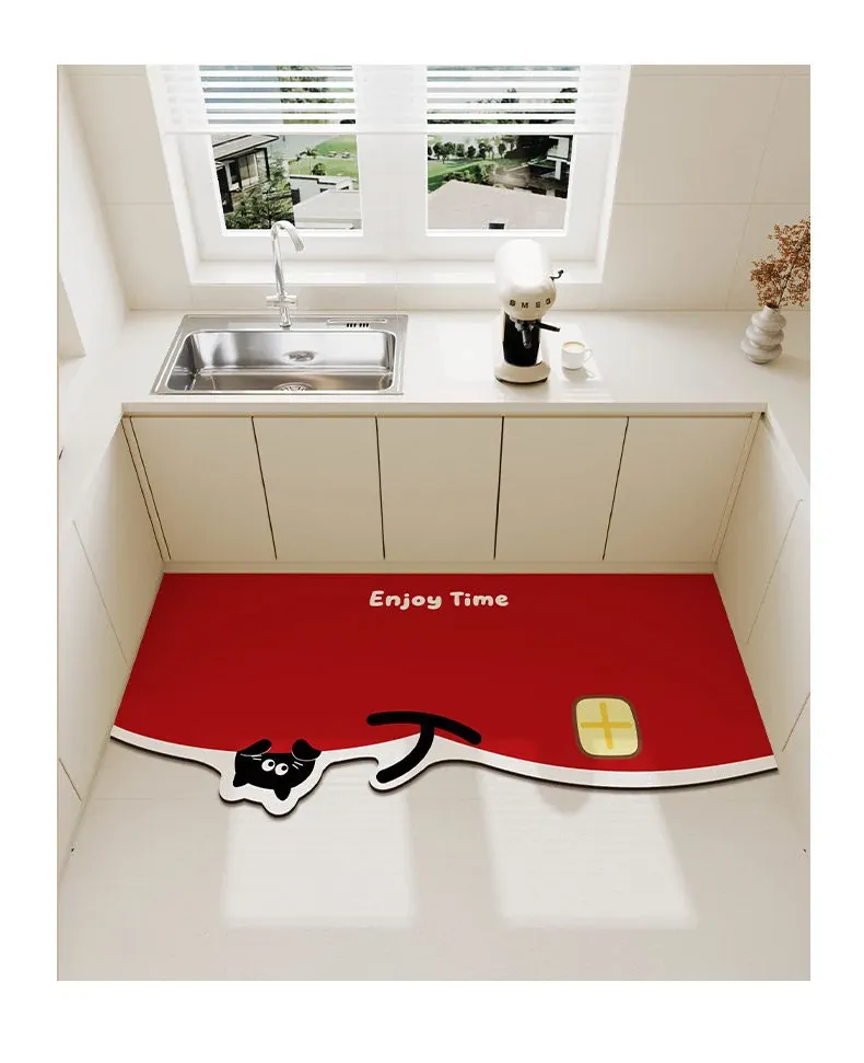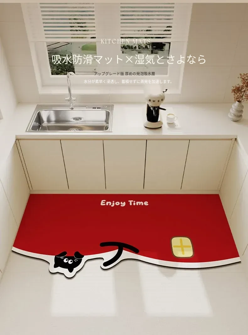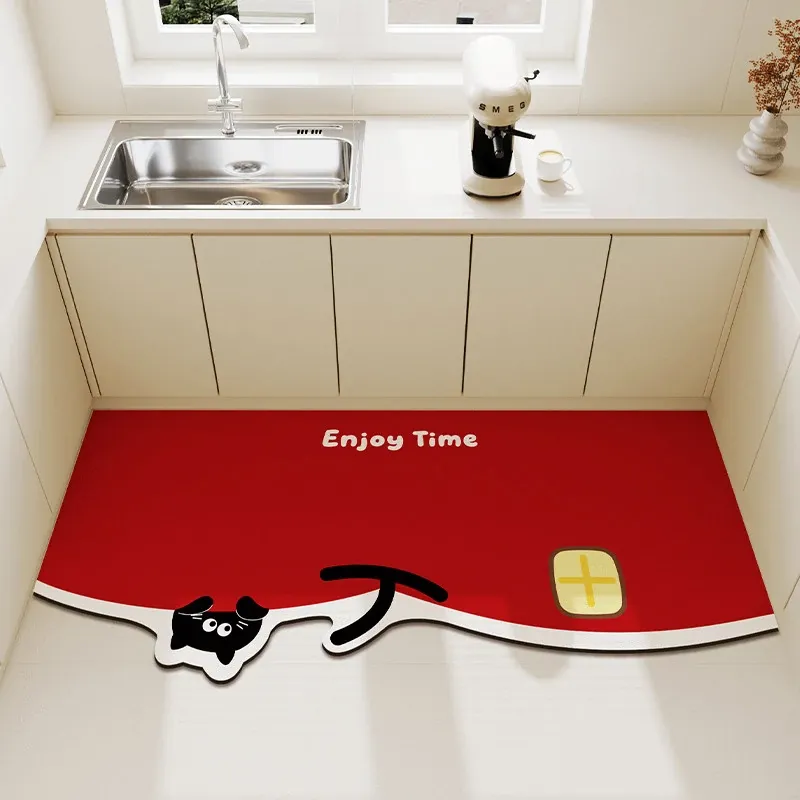 2026年新作!キッチン用吸水マット - お正月を彩る赤いデザイン、自由にカットできる形状のフットマットで、楽しいお正月を演出!