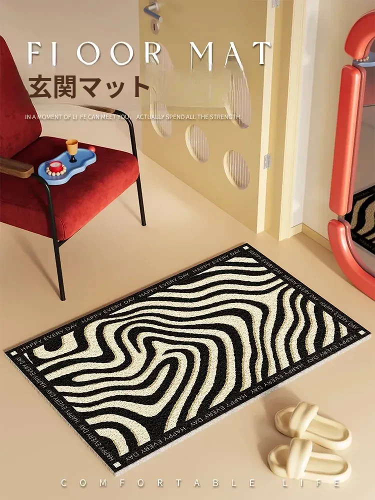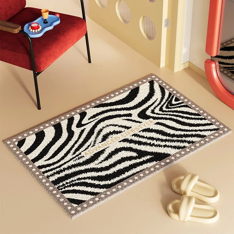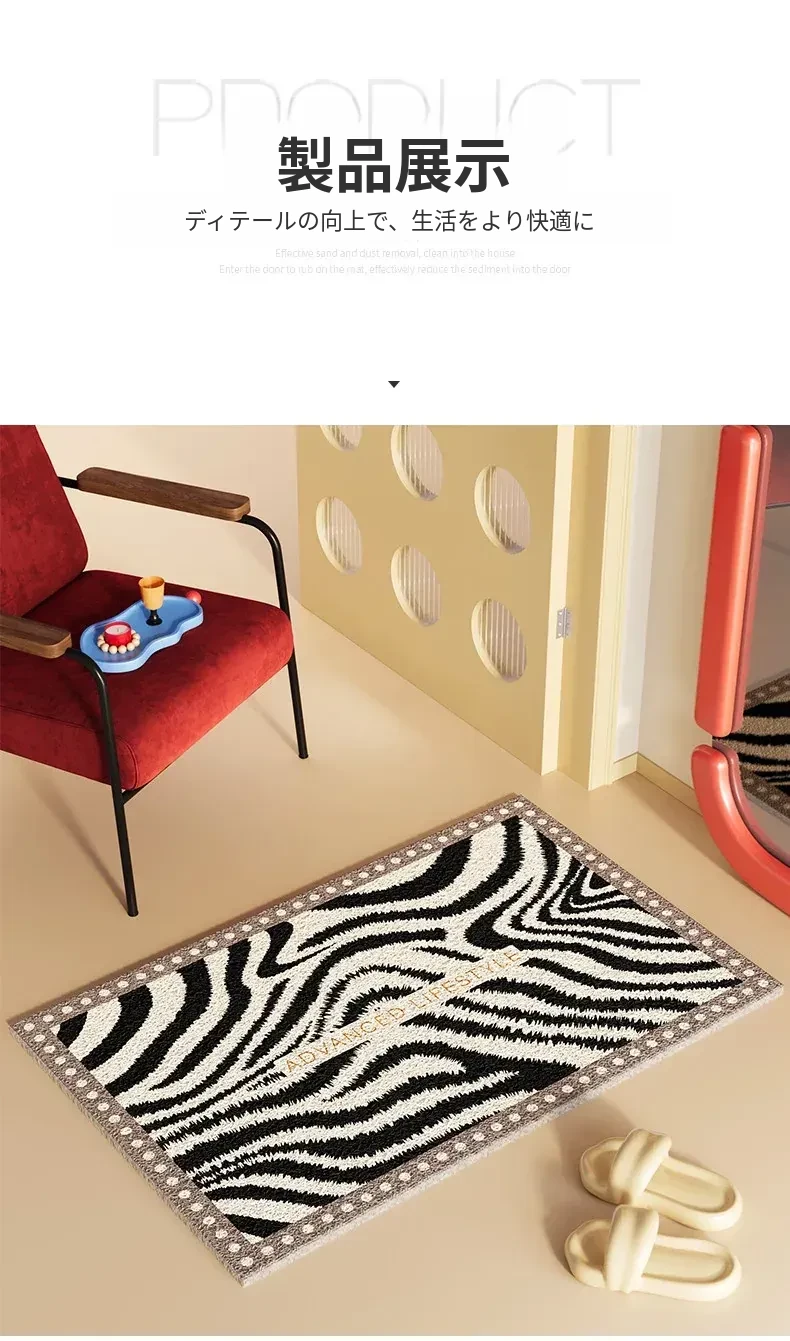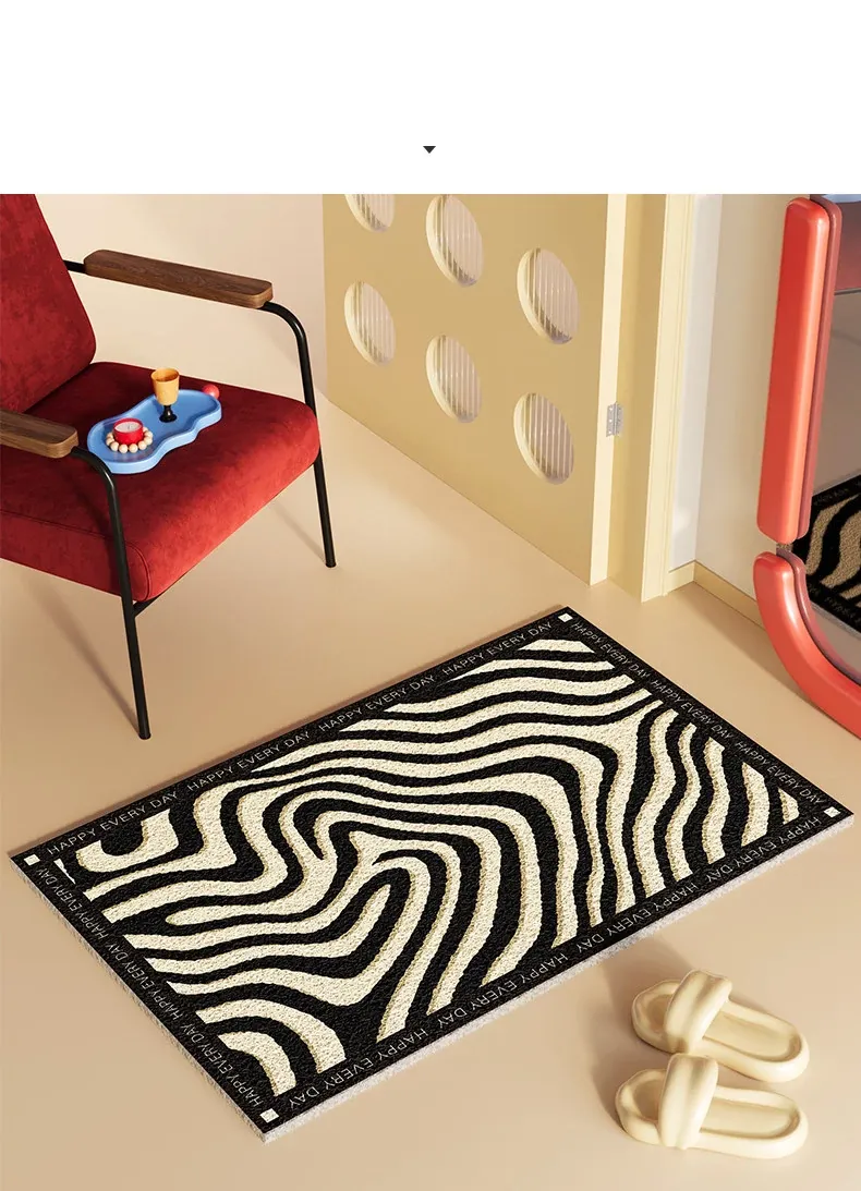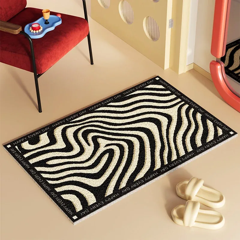 新作2026年版!シックなブラック&ホワイトのゼブラ柄玄関マット - 滑り止め機能付き・汚れに強い・洗える室内フットマットで、来客をおしゃれに迎え入れましょう!