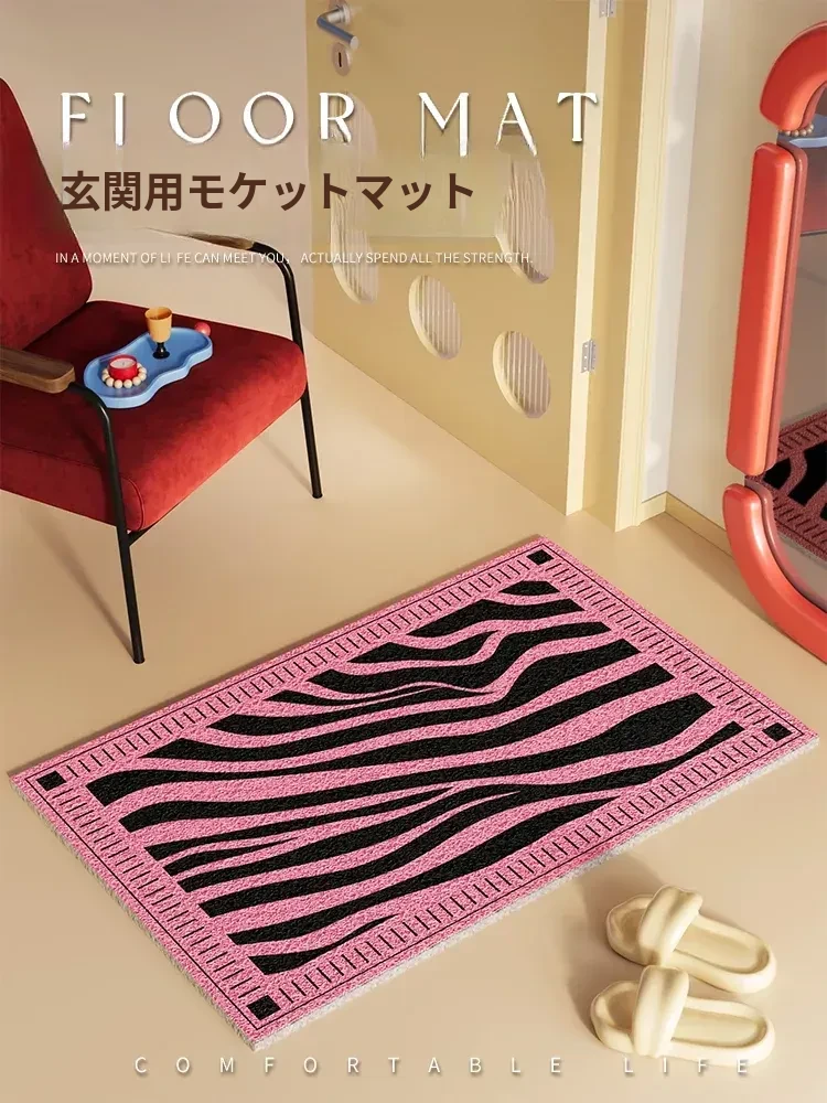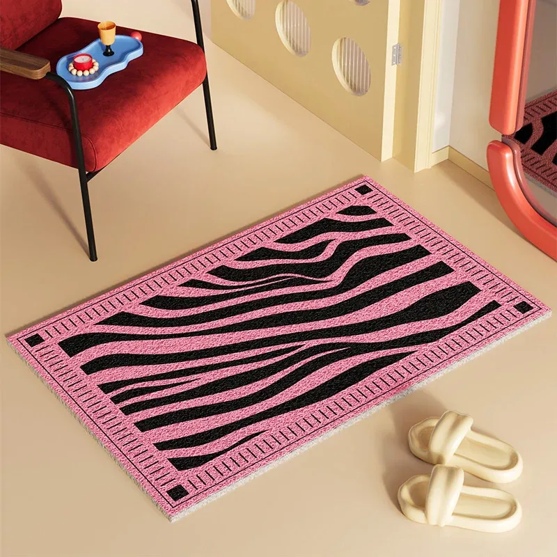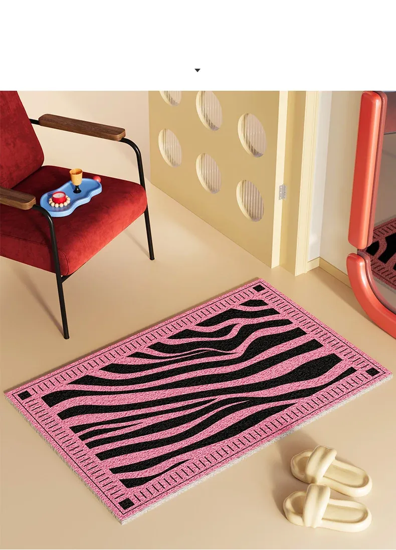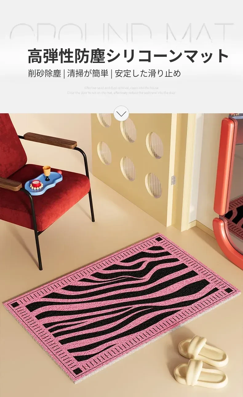 新作2026年版!シックなブラック&ホワイトのゼブラ柄玄関マット - 滑り止め機能付き・汚れに強い・洗える室内フットマットで、来客をおしゃれに迎え入れましょう!