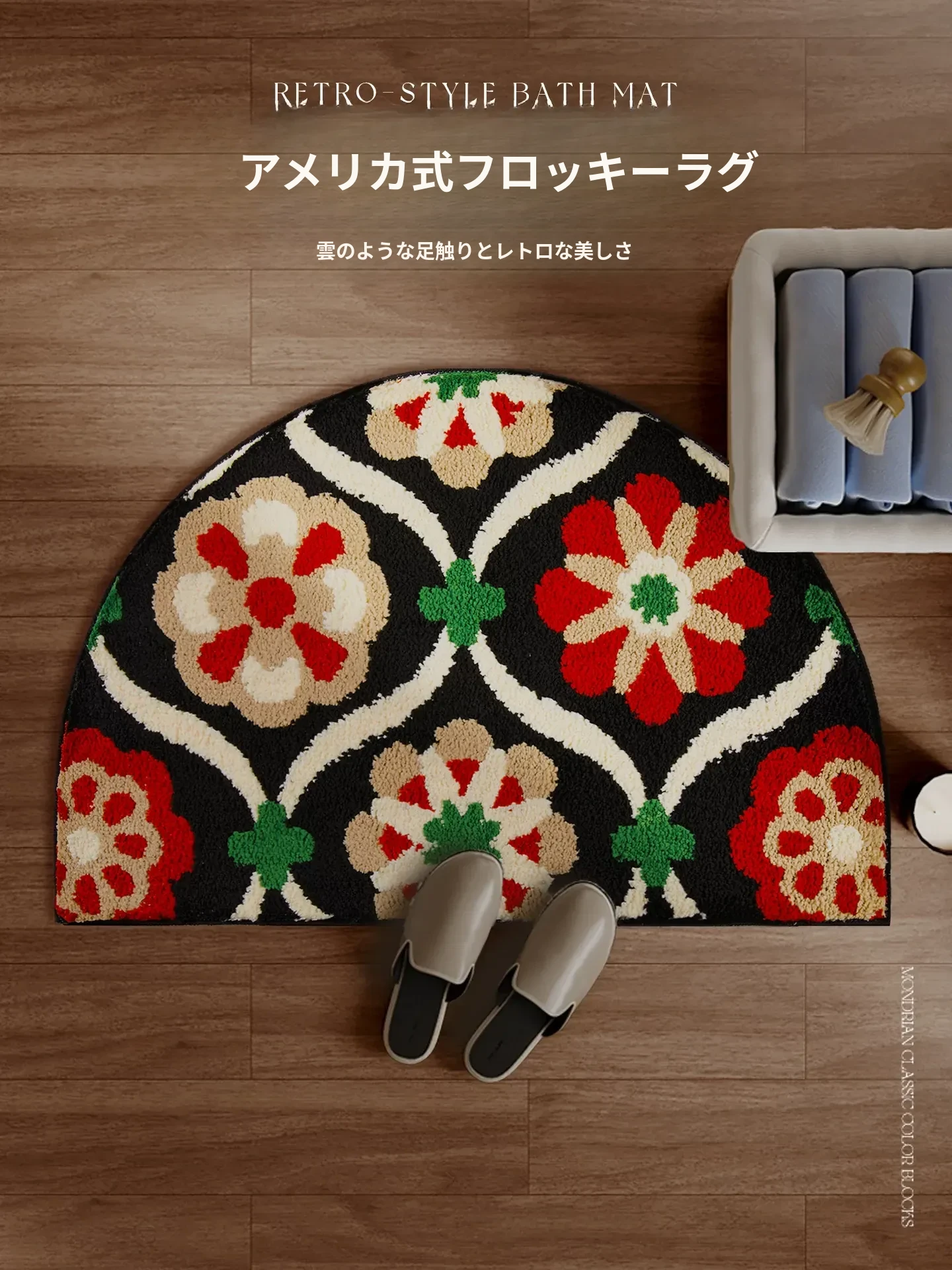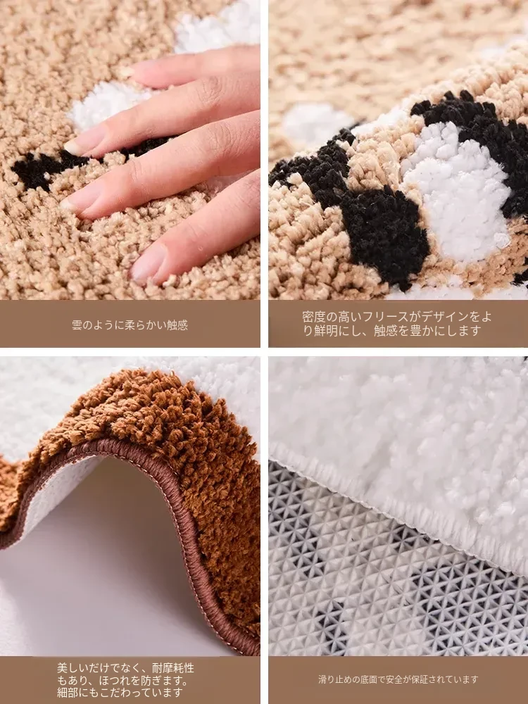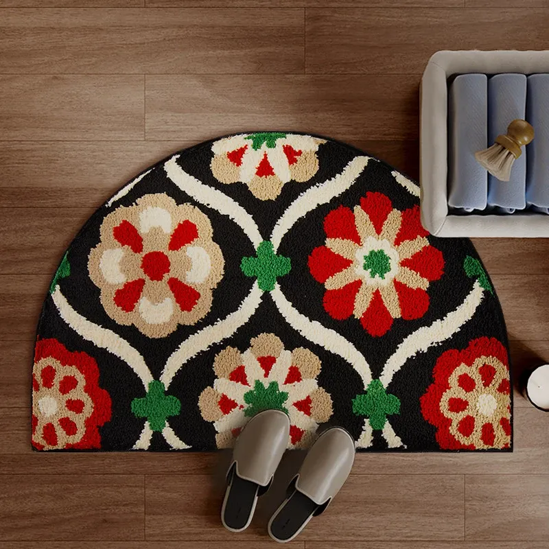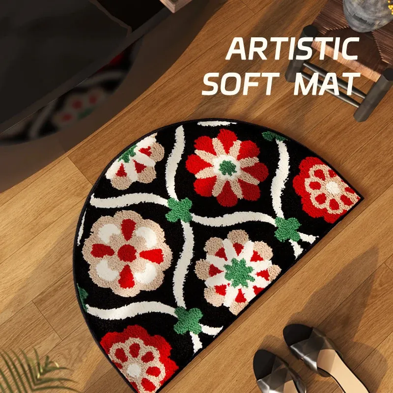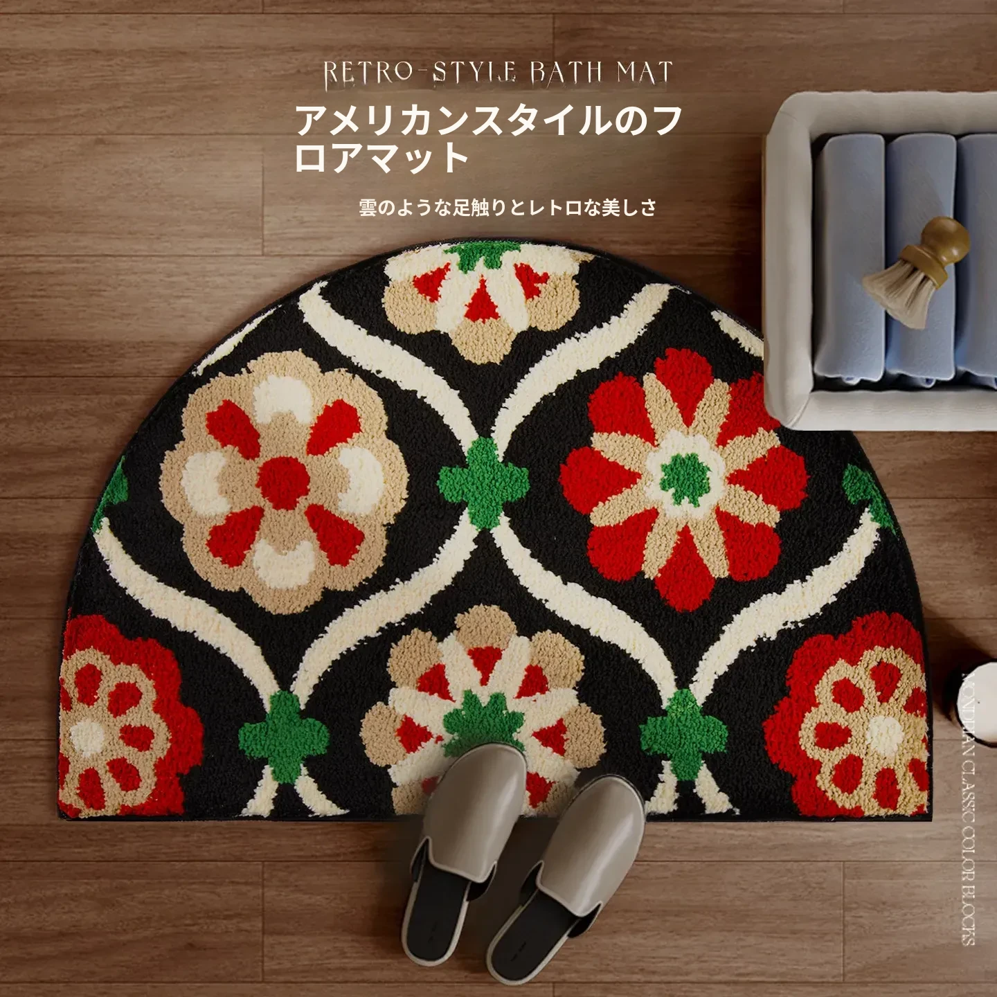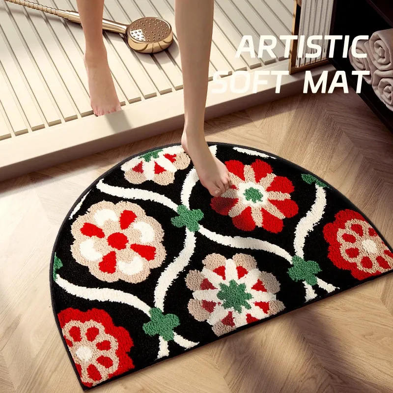 アメリカンスタイルの吸水バスマット 半円形 滑り止め付き トイレ用カーペット フロッキー素材 足元マット シャワールーム用 ふわふわ感を楽しめる!