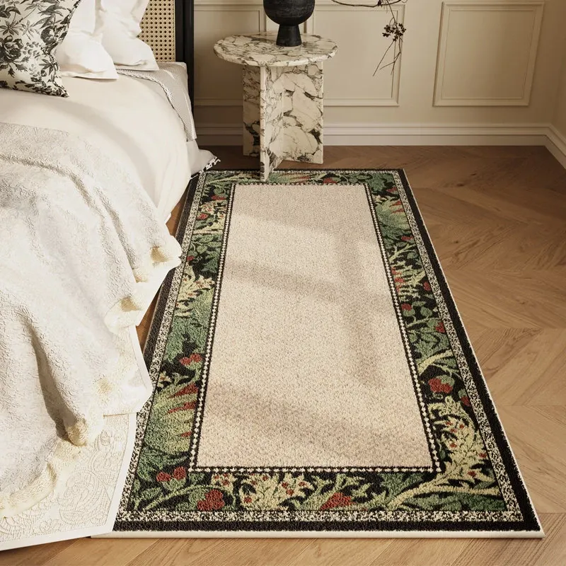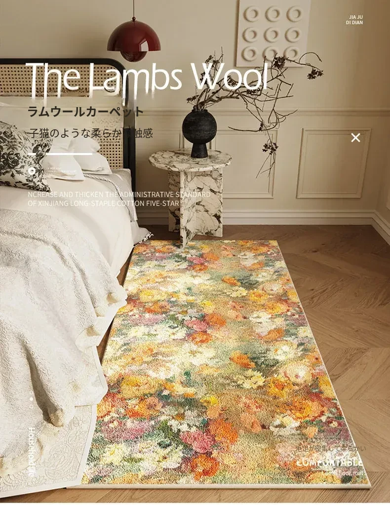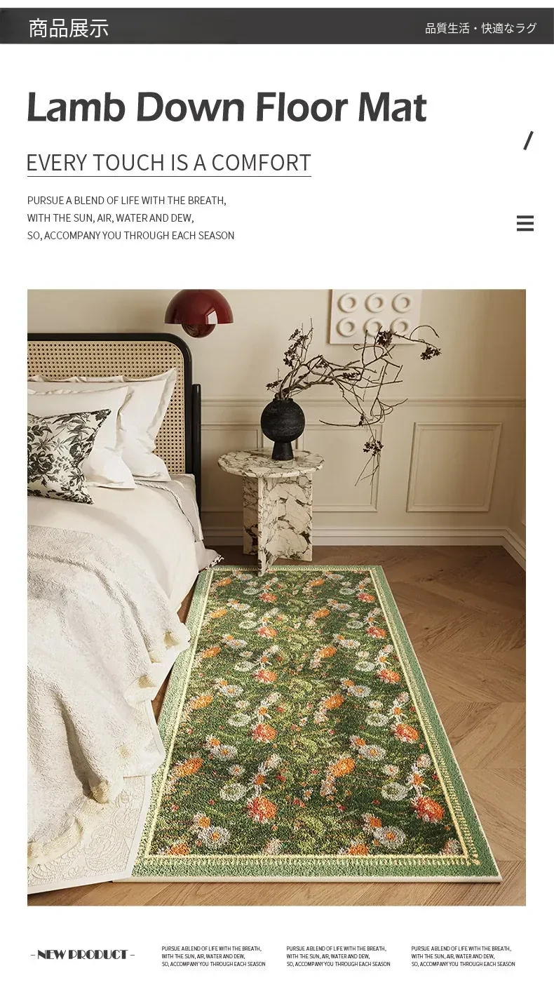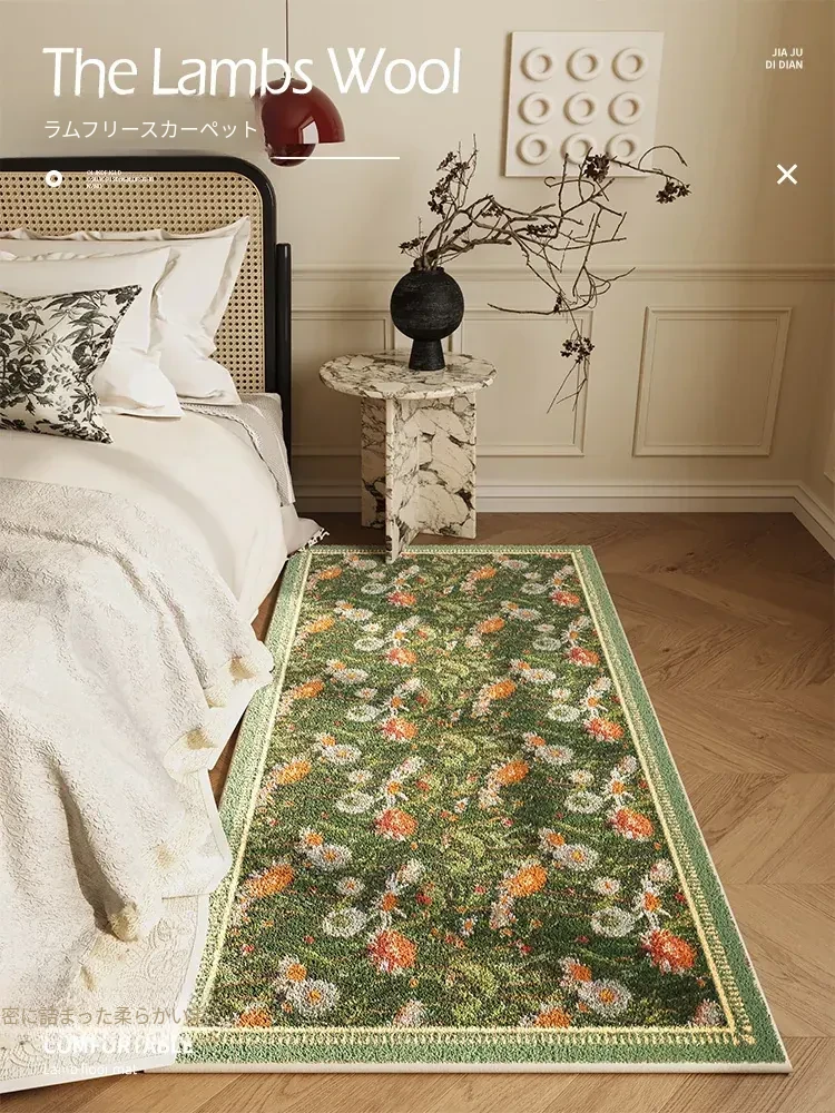 アメリカンレトロデザインのベッドサイドカーペット - 主寝室にぴったりのラグジュアリー感あふれる油絵風マット、洗濯不要でお手入れ簡単なフロアマット!