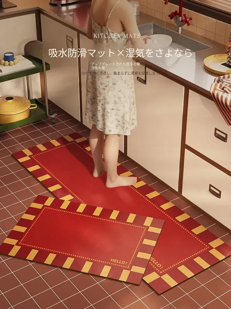 バウハウススタイルのキッチンマット2025新作!吸水性に優れたシンク用フットマット。ヴィンテージ風で高級感があり、洗える防滑カーペットです。おしゃれなキッチンを演出し、快適な毎日をサポート!