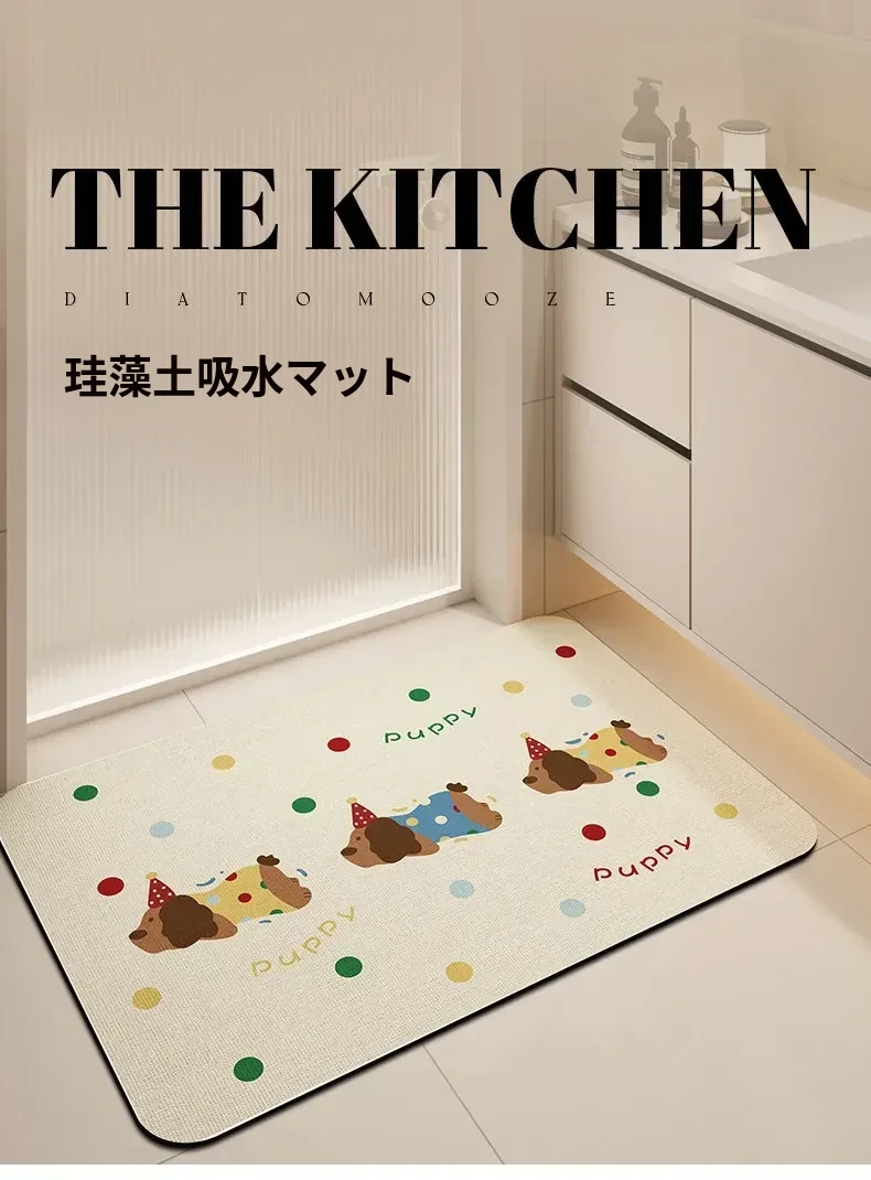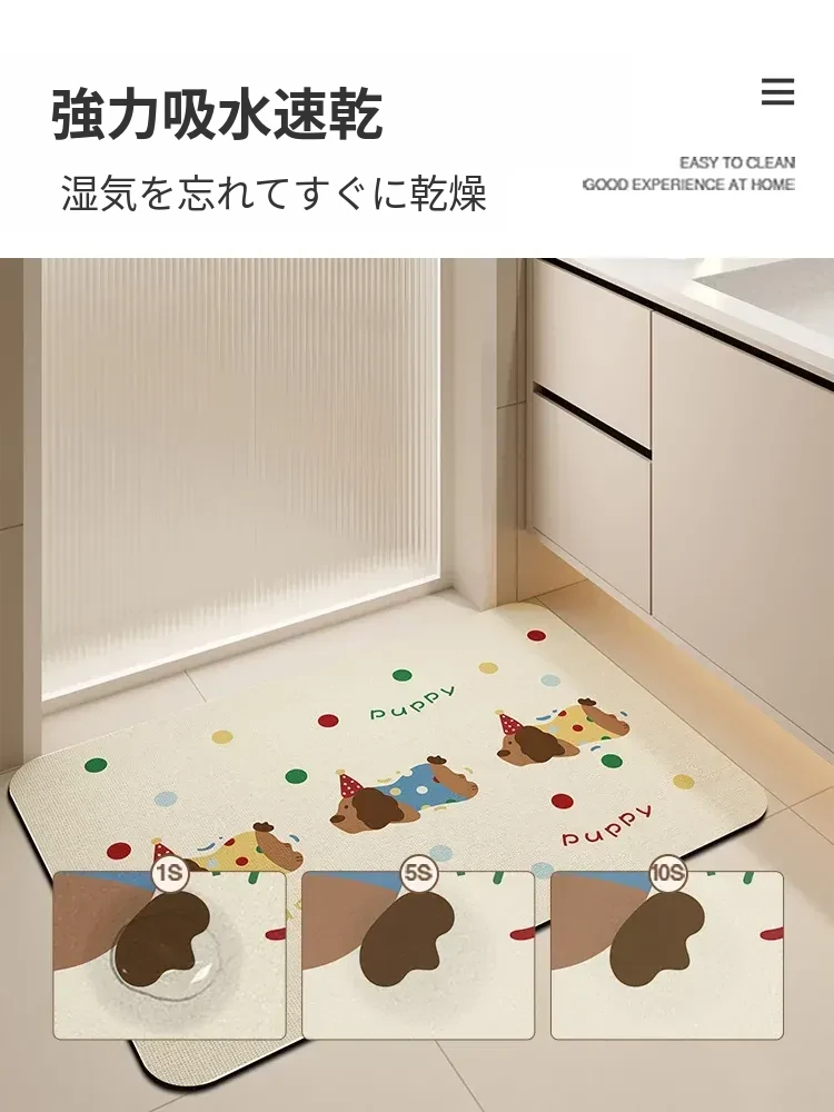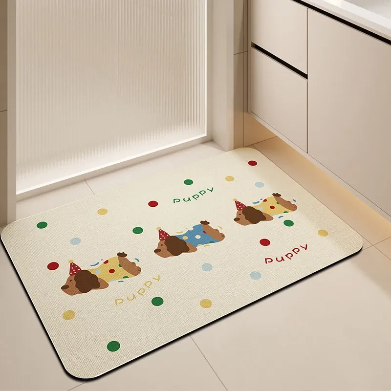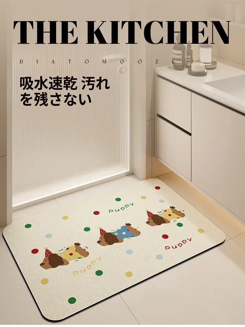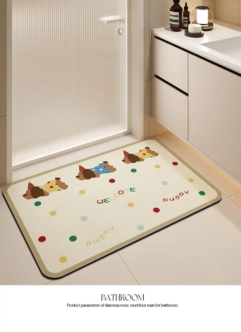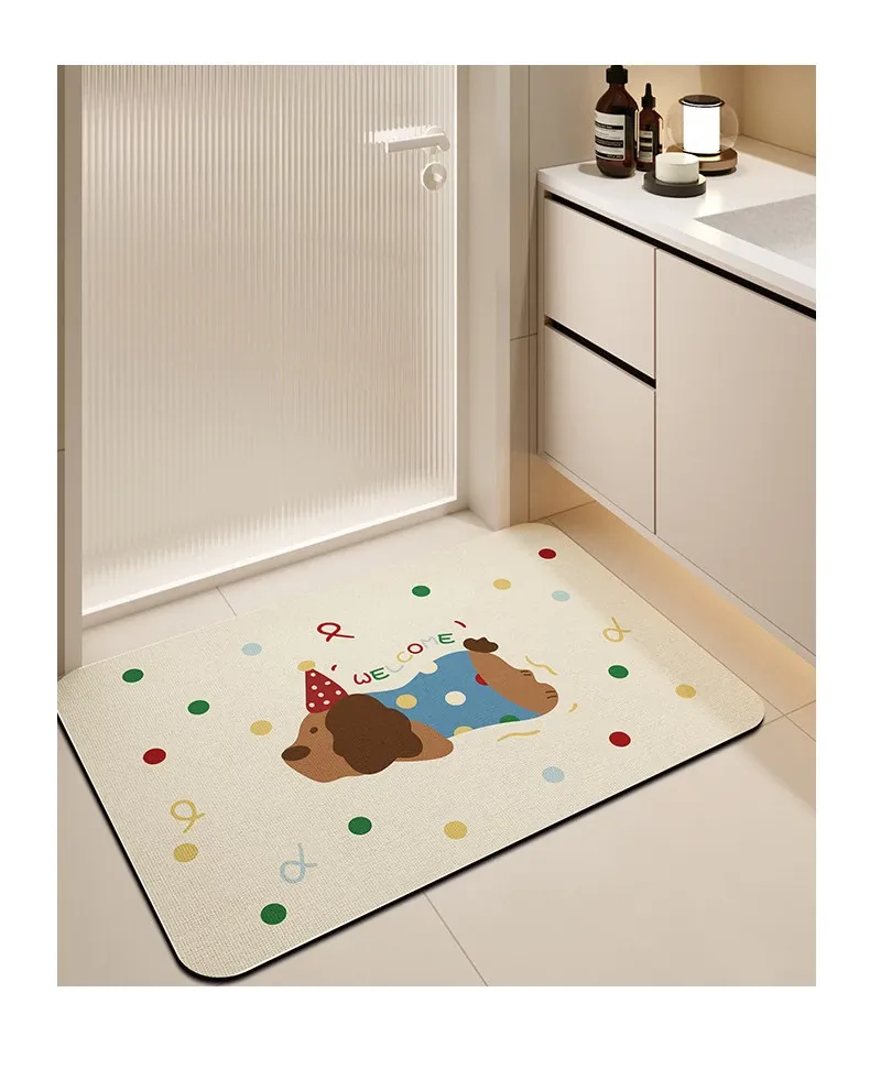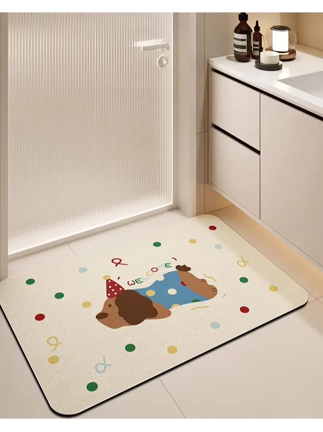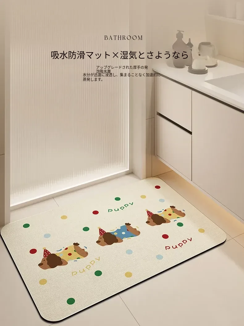かわいいカートゥーンデザインの吸水マット!シリカゲル素材で速乾性抜群、トイレやバスルームに最適。汚れに強く、滑り止め付きで安心。おしゃれで機能的な足元マットで、毎日の生活をもっと楽しく!