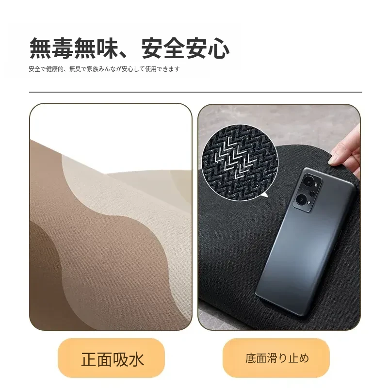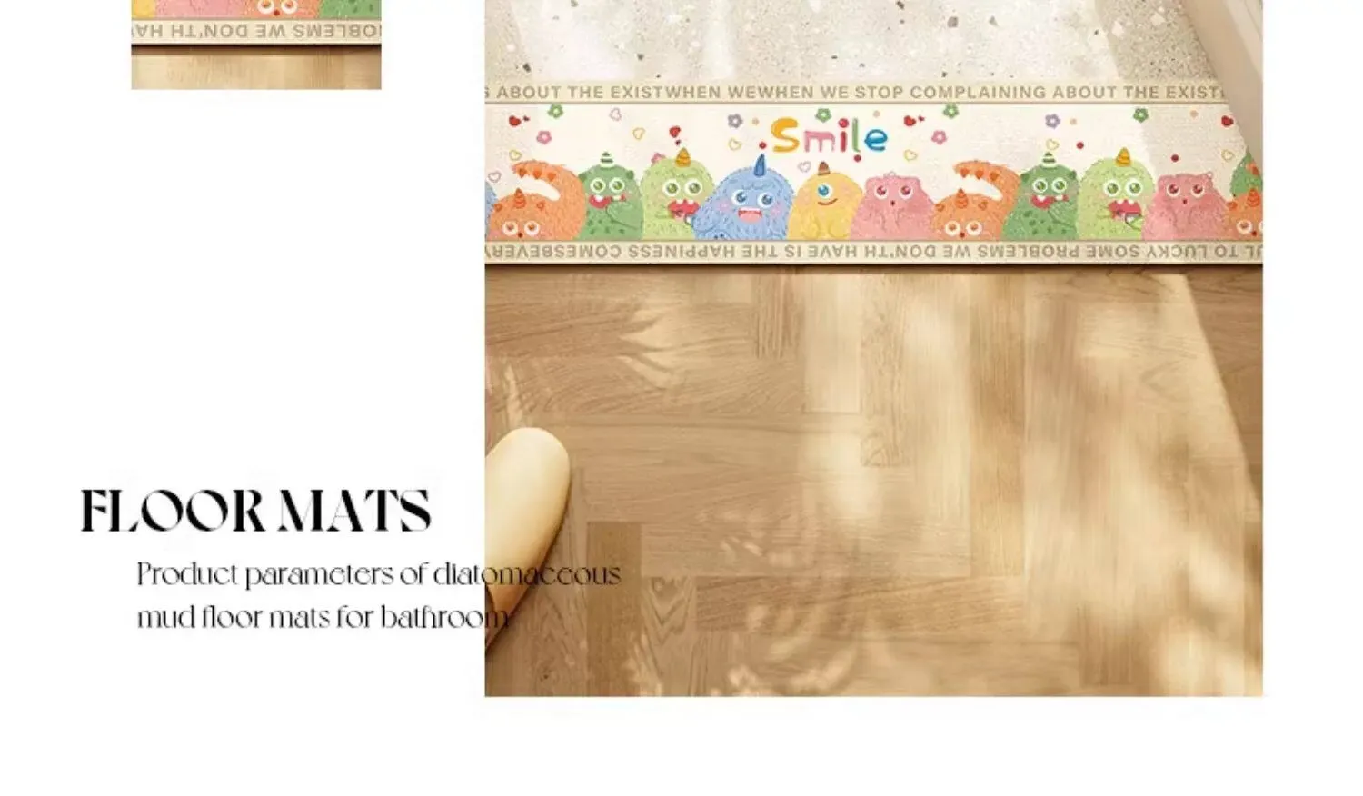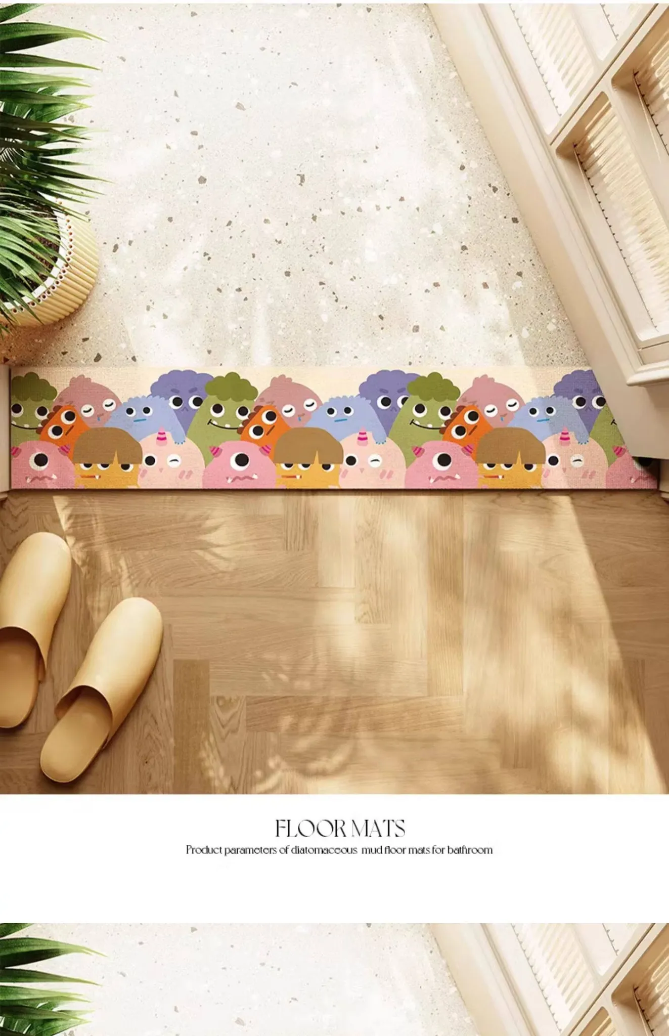 カートゥーンデザインの吸水性シリカゲルマット!キッチンやバスルーム、玄関にぴったりのスリムな長方形マット。超薄型で、床の美しさを引き立てながら水分をしっかり吸収。快適でおしゃれな空間を演出します!