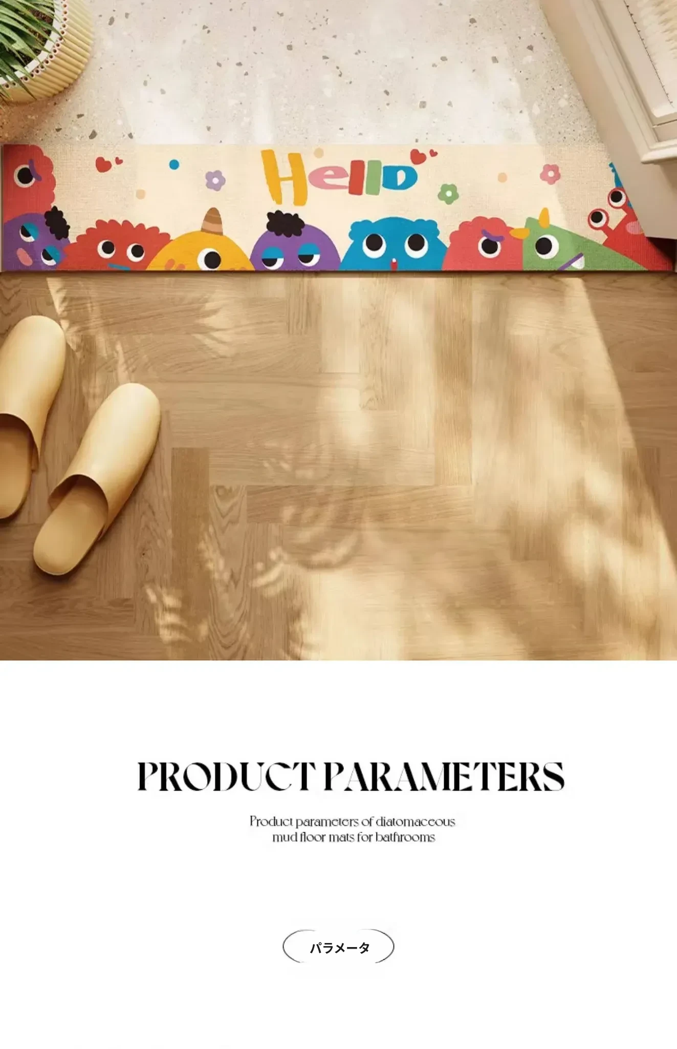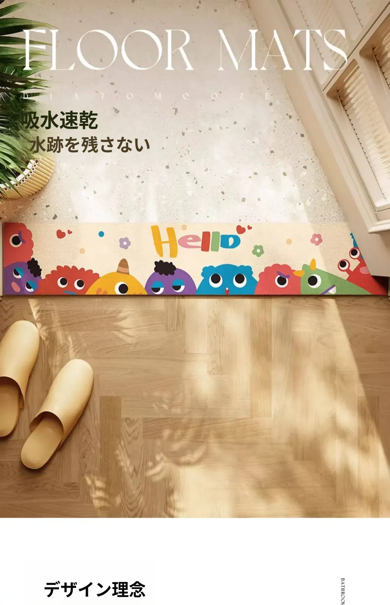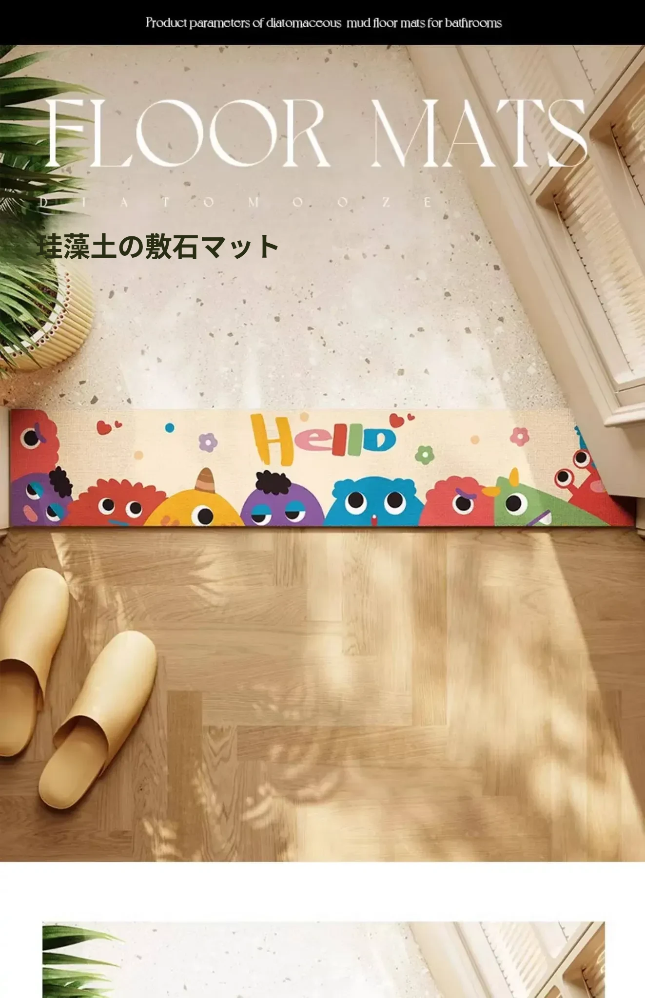カートゥーンデザインの吸水性シリカゲルマット!キッチンやバスルーム、玄関にぴったりのスリムな長方形マット。超薄型で、床の美しさを引き立てながら水分をしっかり吸収。快適でおしゃれな空間を演出します!