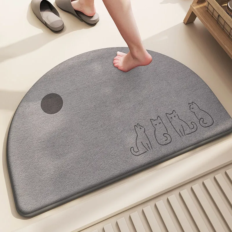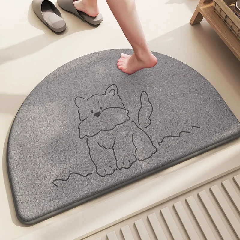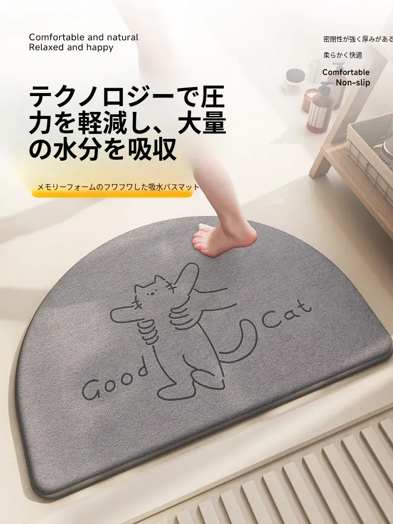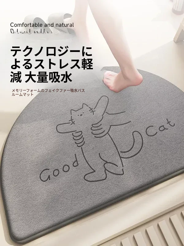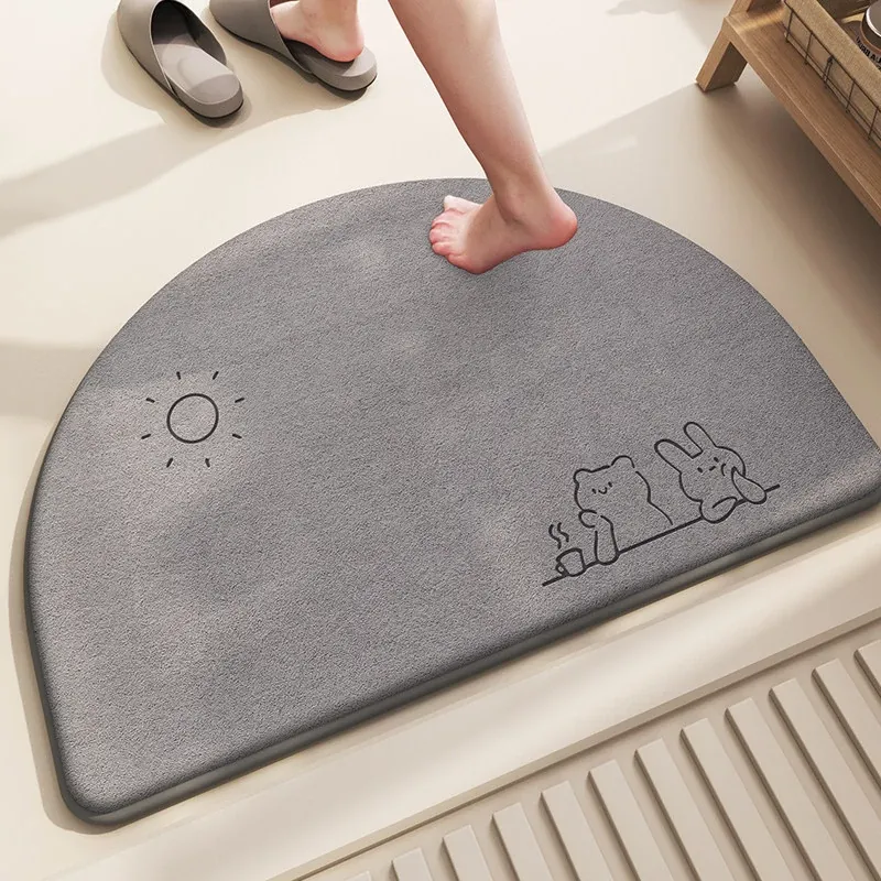カートゥーンデザインのハーフサークルバスマット - シンプルで快適な記憶フォーム、吸水速乾!おしゃれなトイレ用、家庭にぴったりの耐汚れフワフワマット。あなたのバスルームを華やかに!