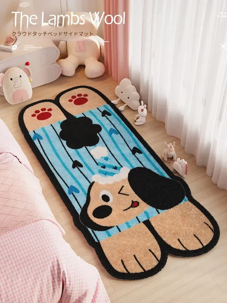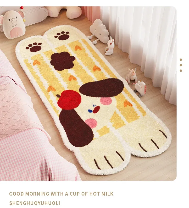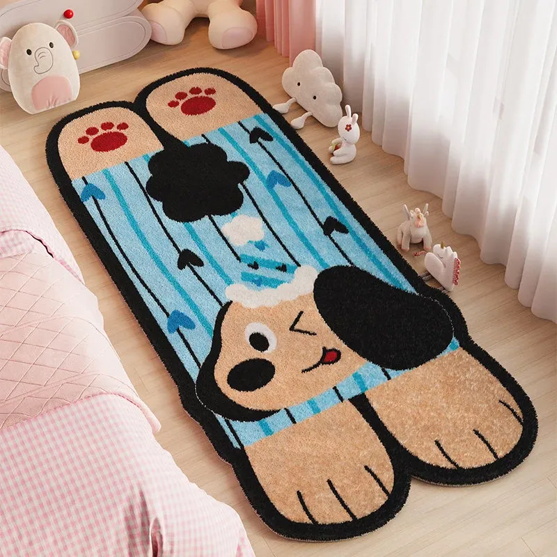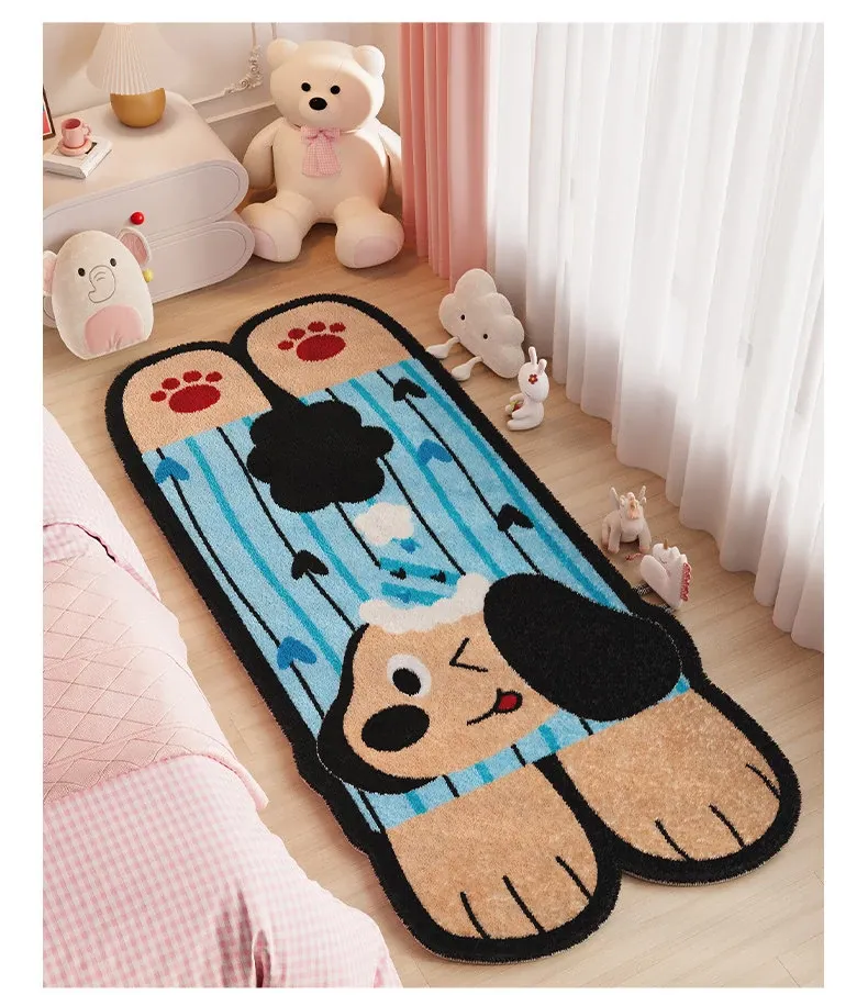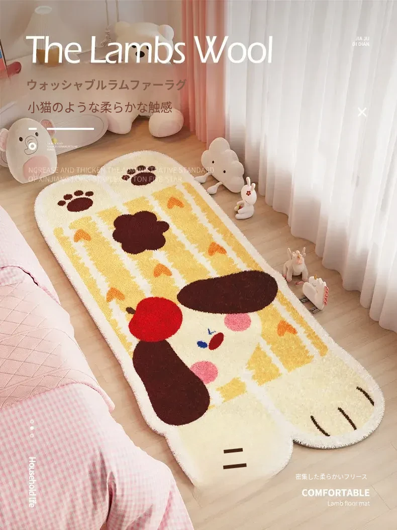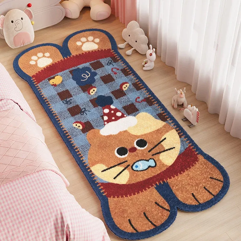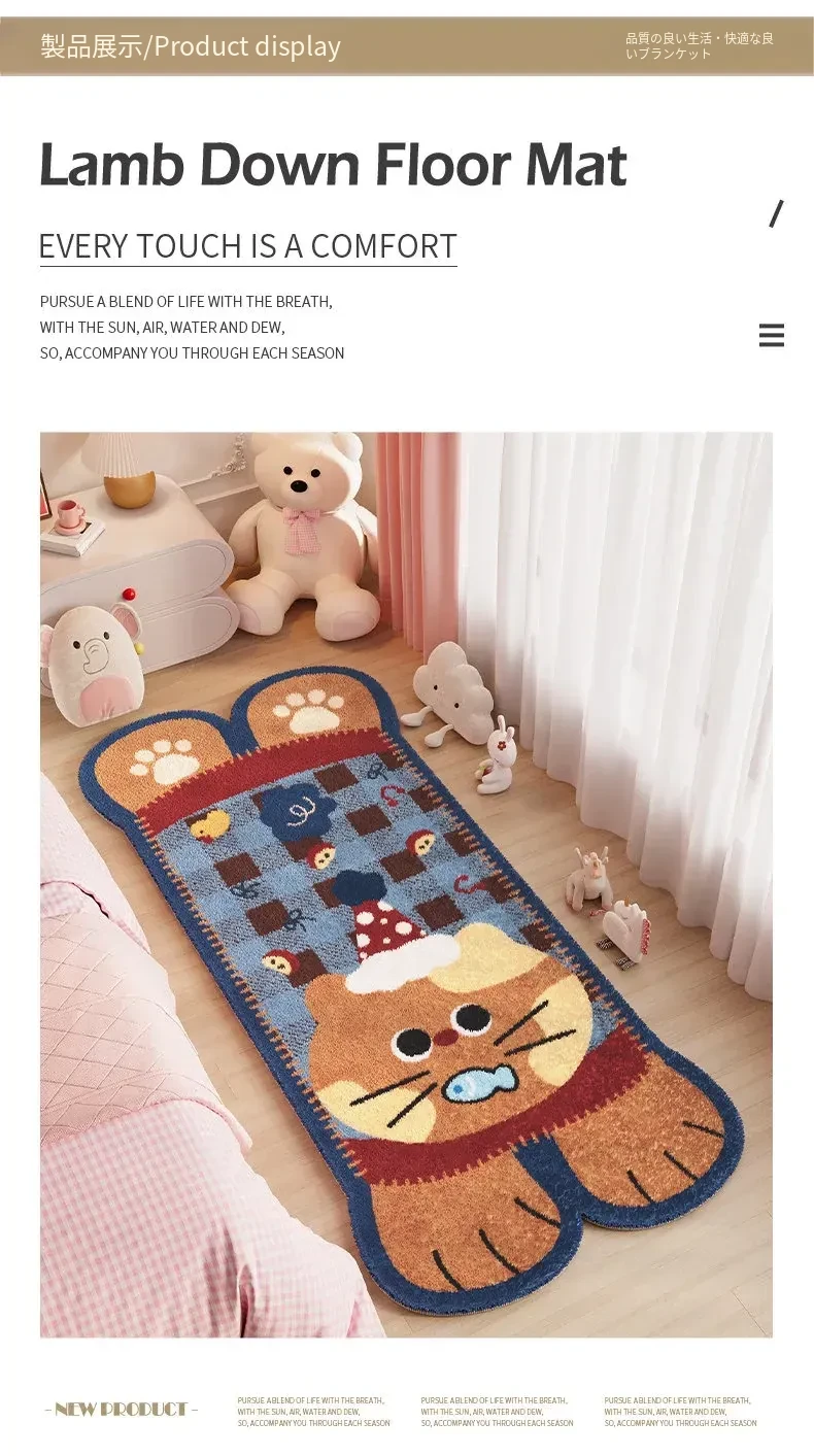 カラフルなキャラクター形状のベッドサイドマット|子供部屋にぴったり!ドーパミンを感じるふわふわの冬用ラグ|寝室のベッド下や前に最適な暖かい足元マット。