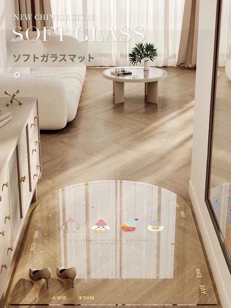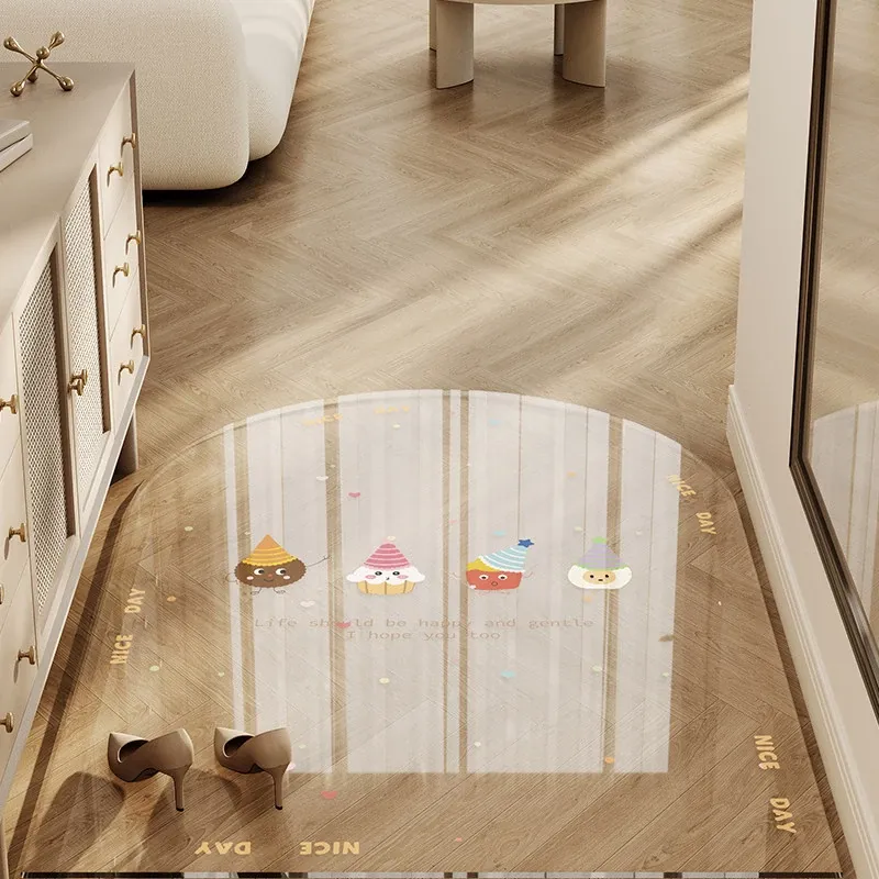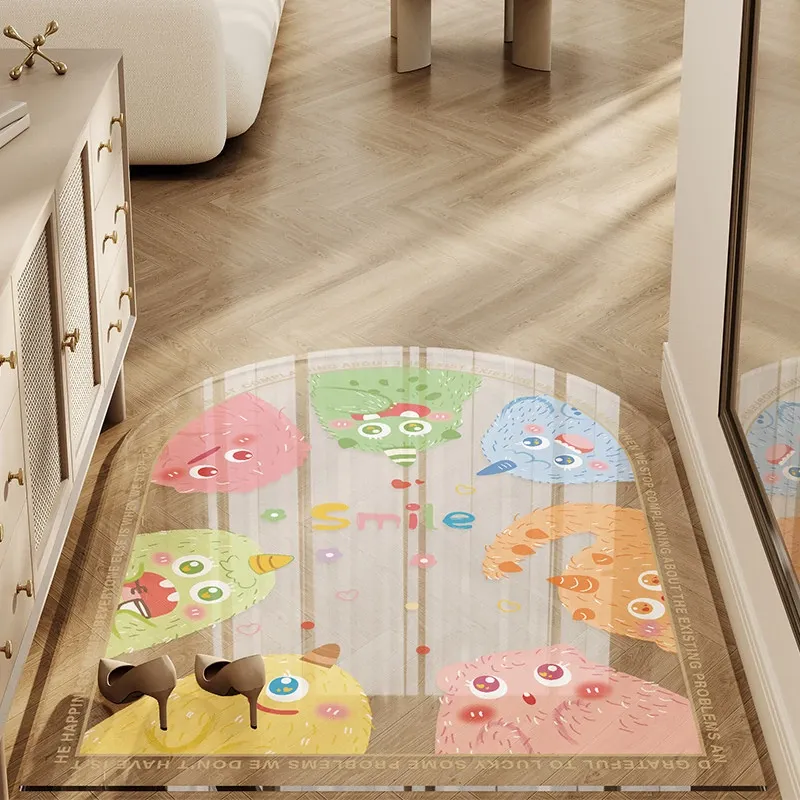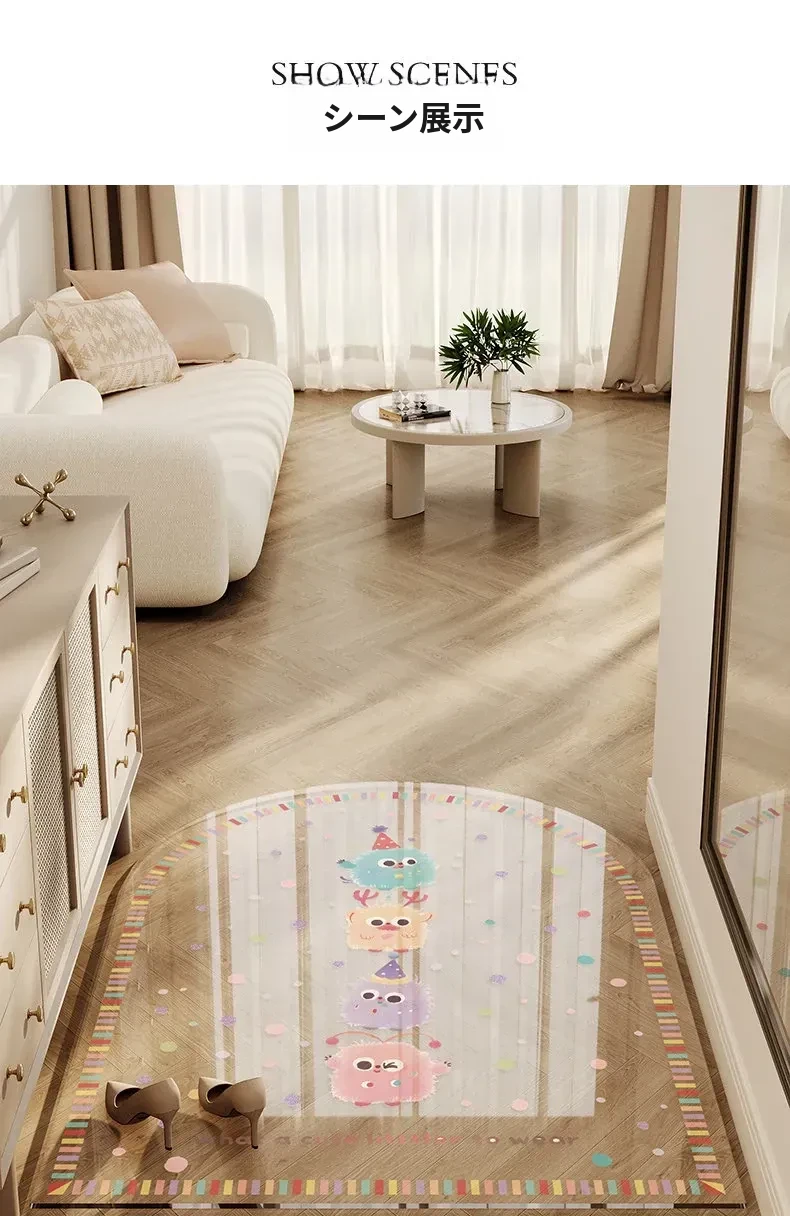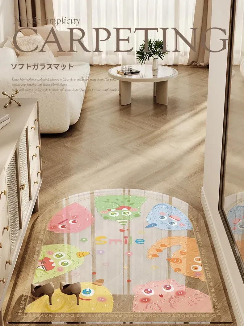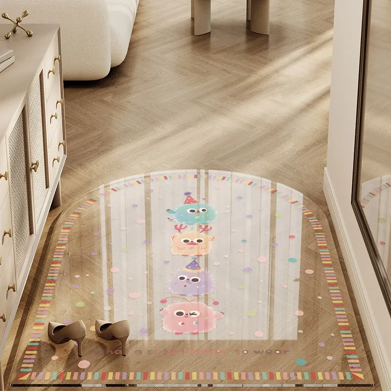カラフルな透明キャラクター玄関マット 超薄型でドアを邪魔しない柔らかいガラス製 滑り止め機能付き 洗える防水カーペットで、玄関をおしゃれに演出!