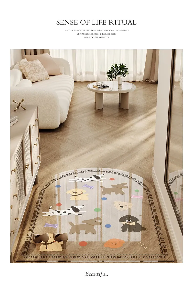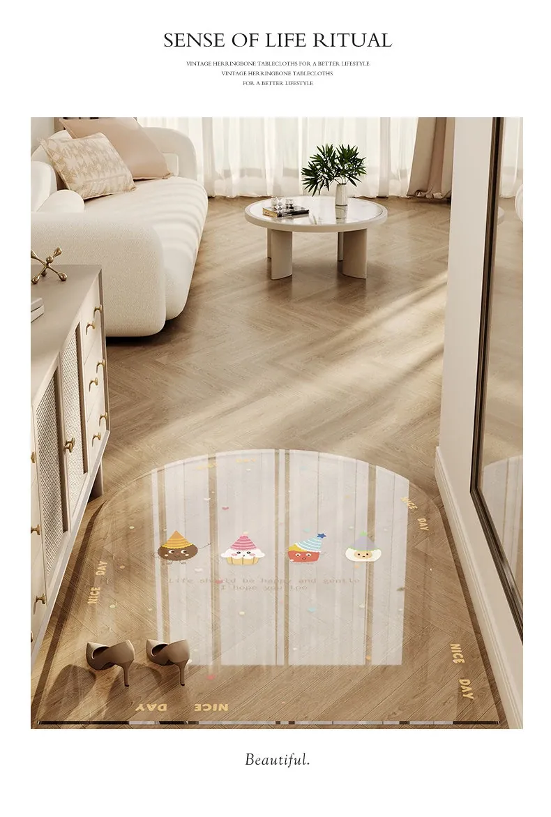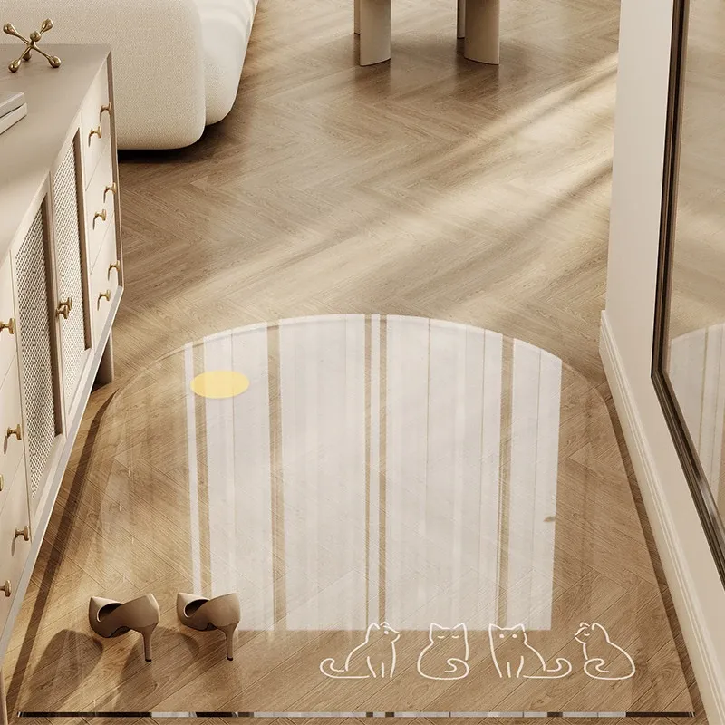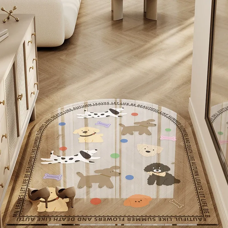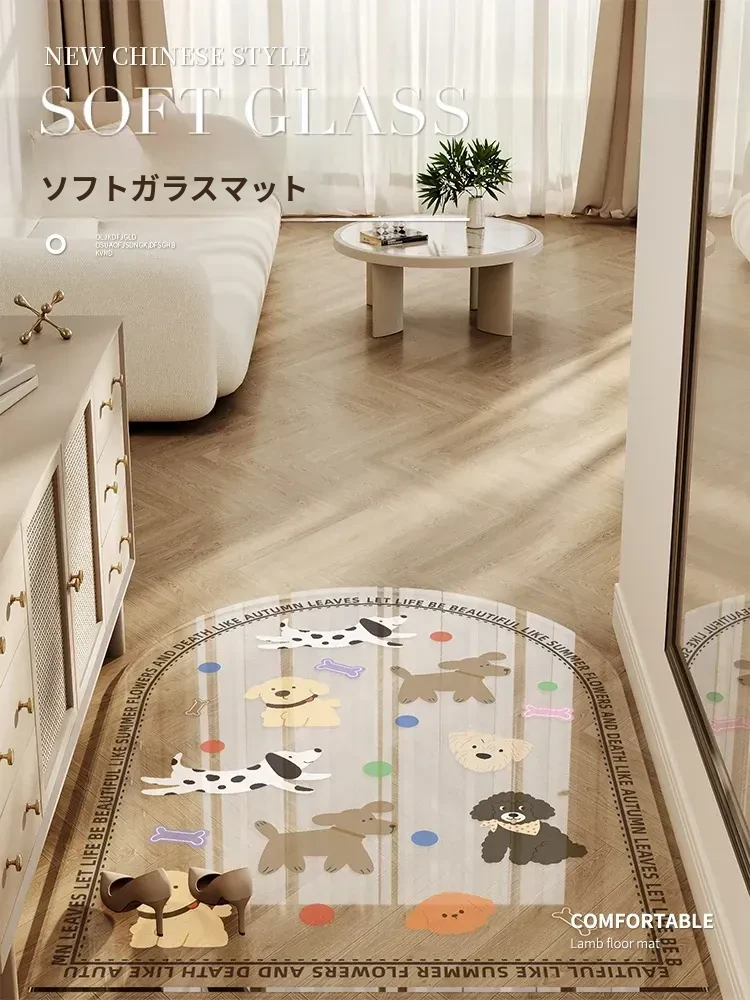 カラフルな透明キャラクター玄関マット 超薄型でドアを邪魔しない柔らかいガラス製 滑り止め機能付き 洗える防水カーペットで、玄関をおしゃれに演出!