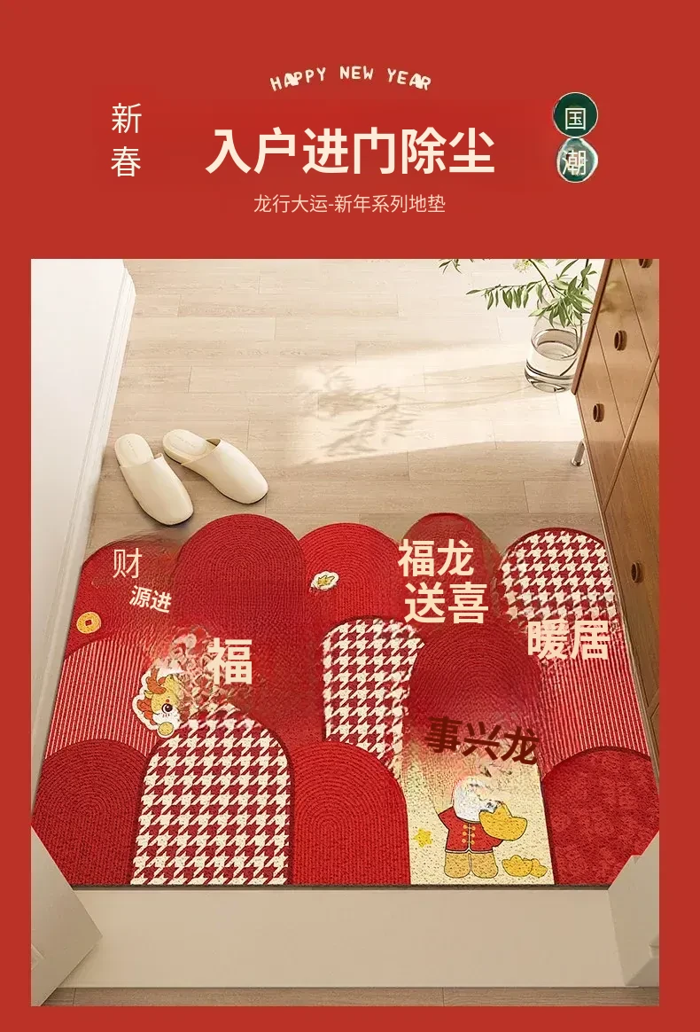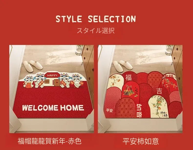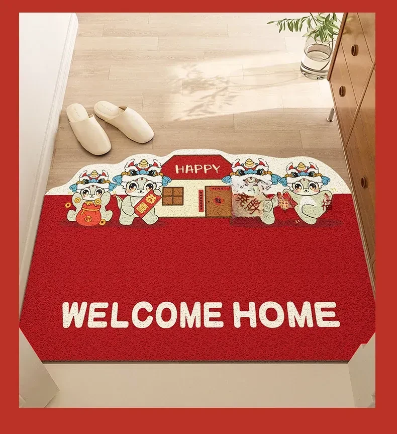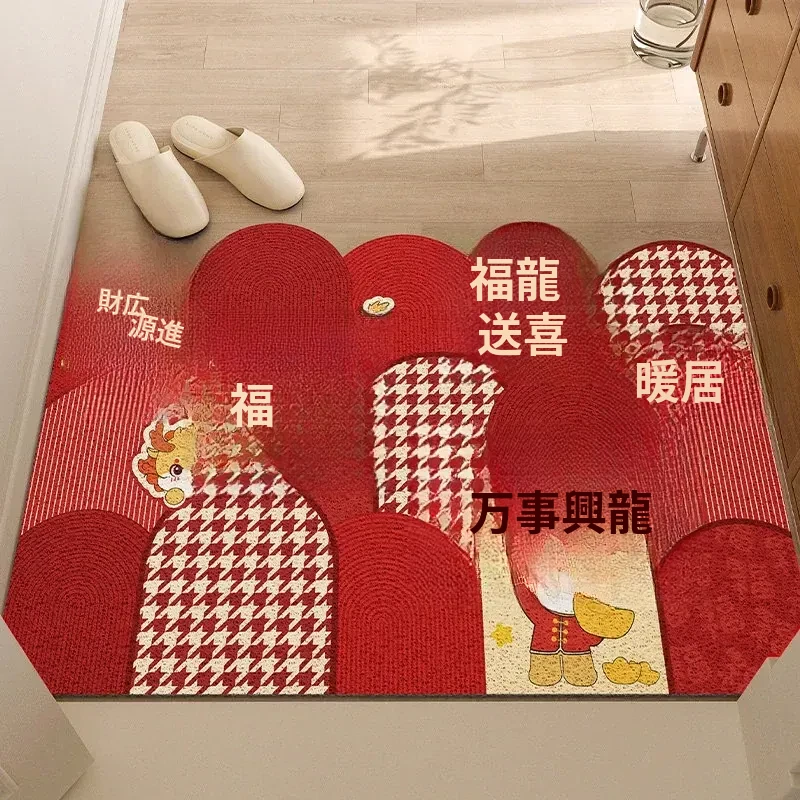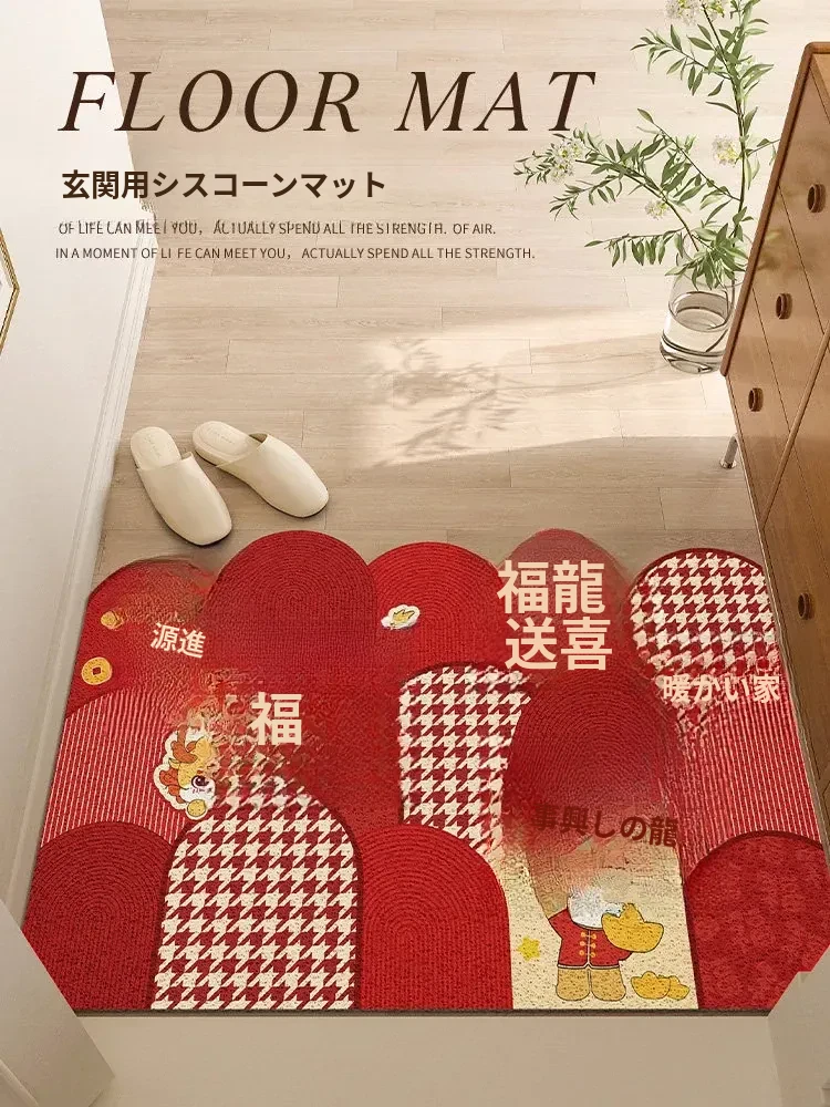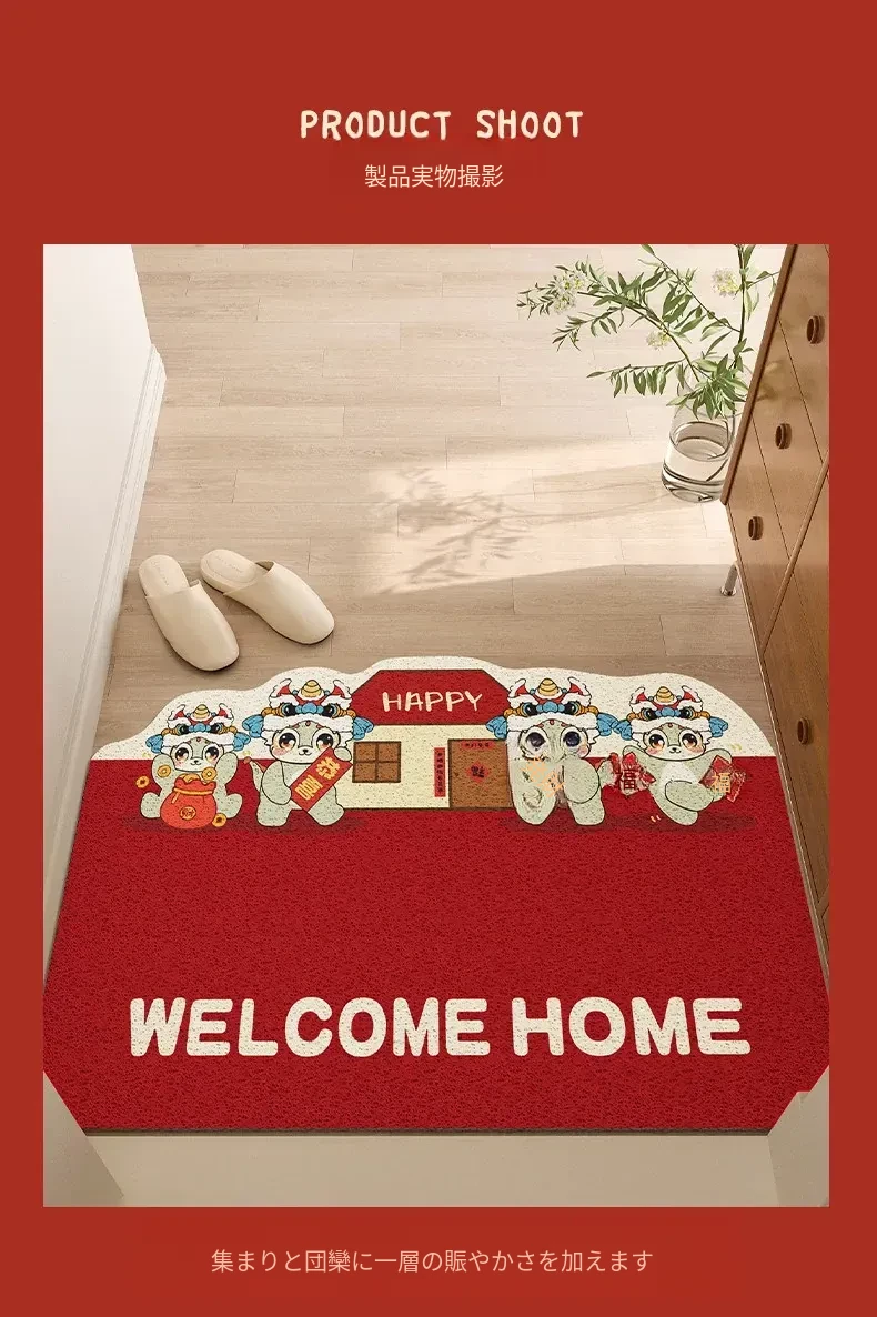 馬年の特別デザイン!入室用のユニークな玄関マット - 春節・新年を祝う防滑マットで、家の入り口を華やかに彩ります。安全でスタイリッシュな足元を演出し、訪れる人々を温かく迎えます。