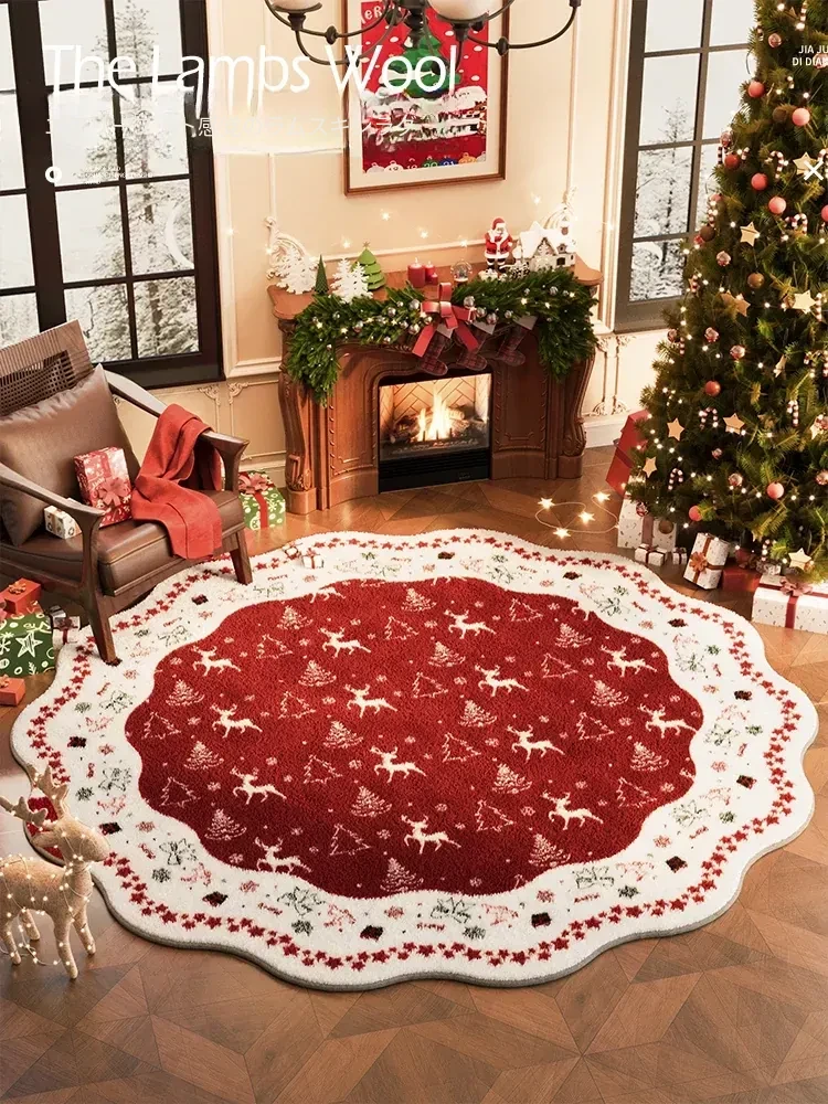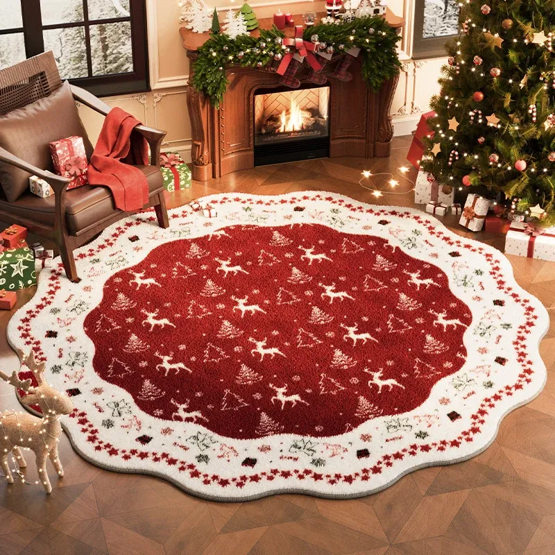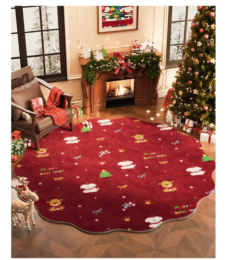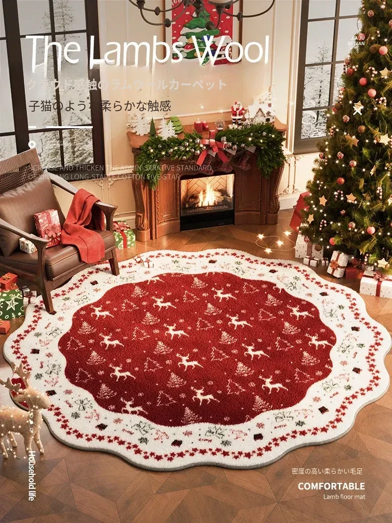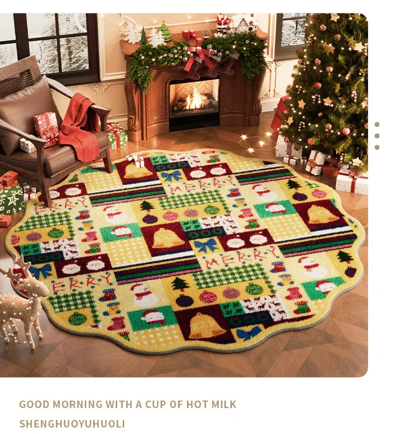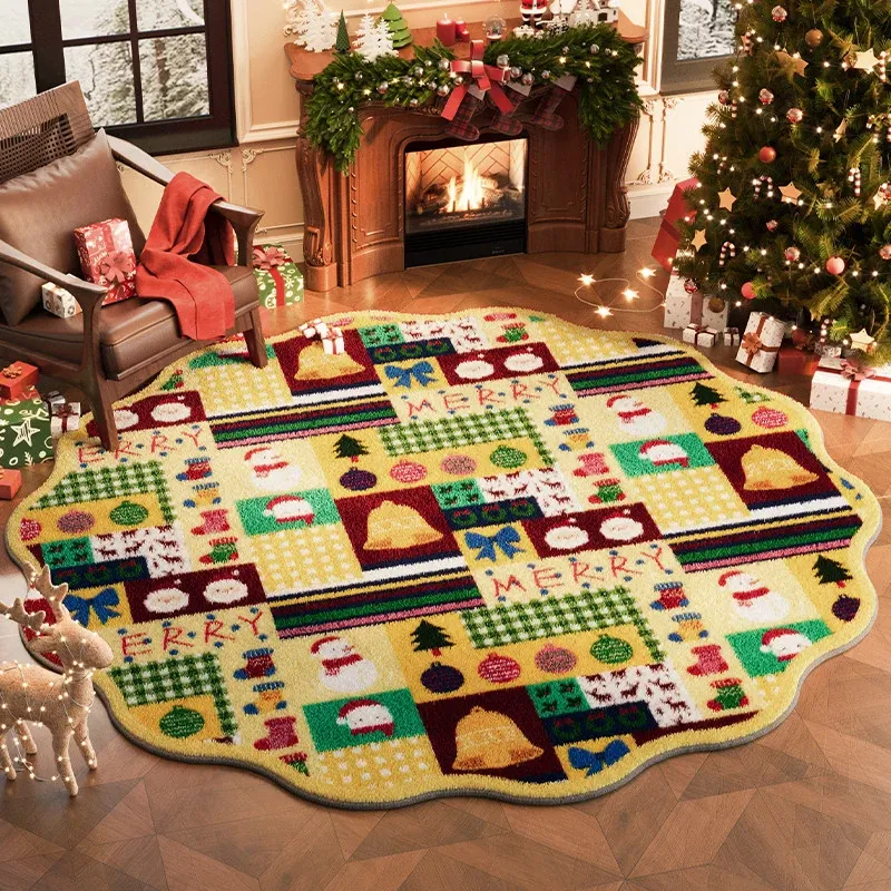 クリスマスツリーデザインの異形ラグ|おしゃれなリビングや冬の寝室にぴったり!新年の雰囲気を演出するふわふわのマットで、心温まるホリデーシーズンをお楽しみください。