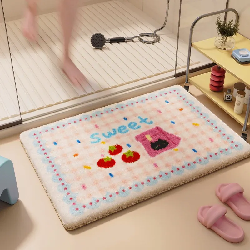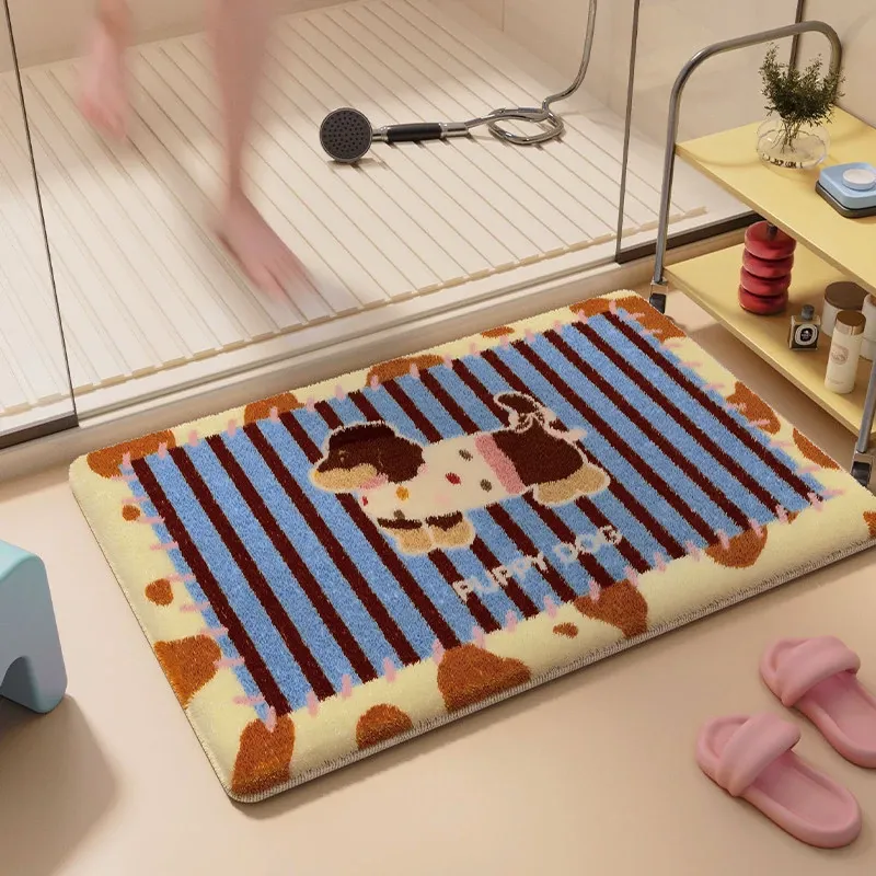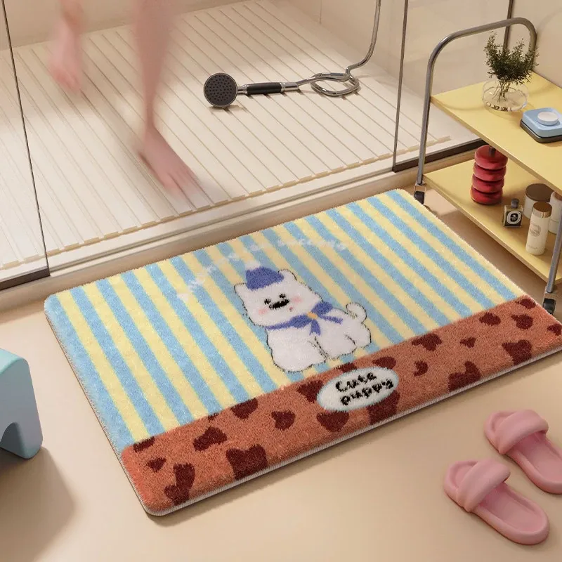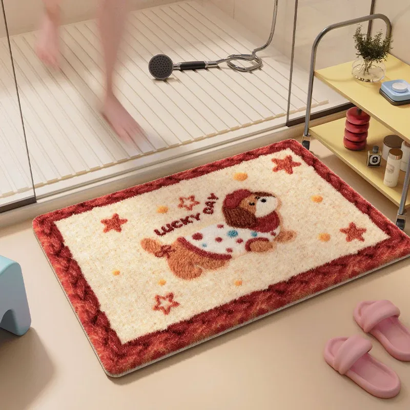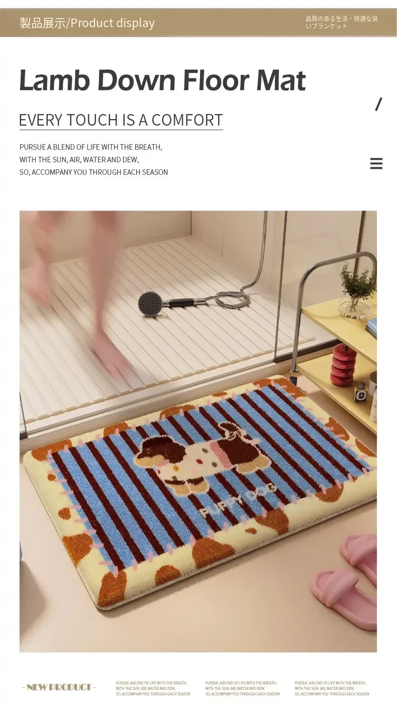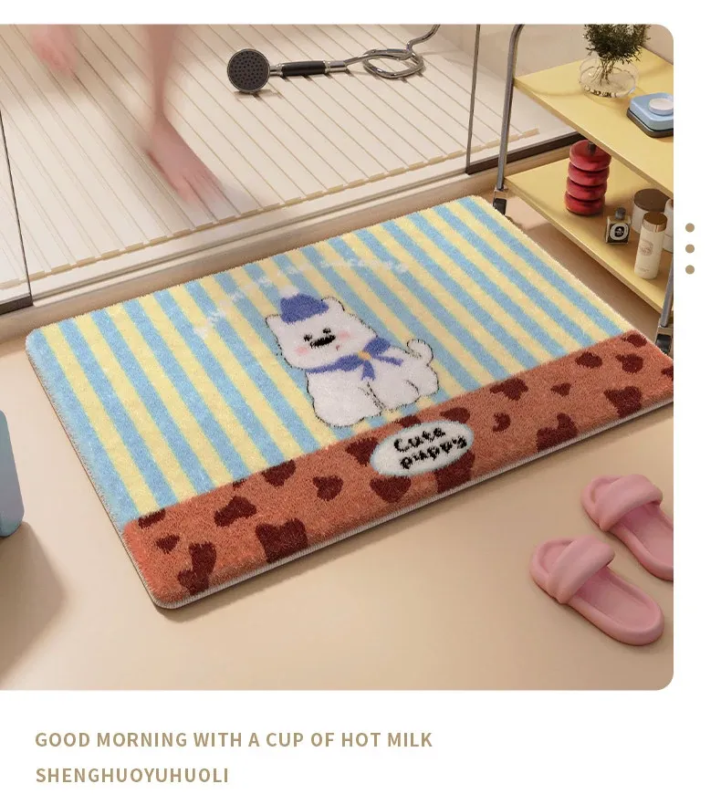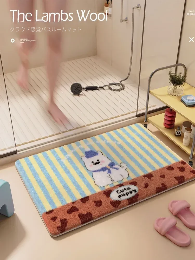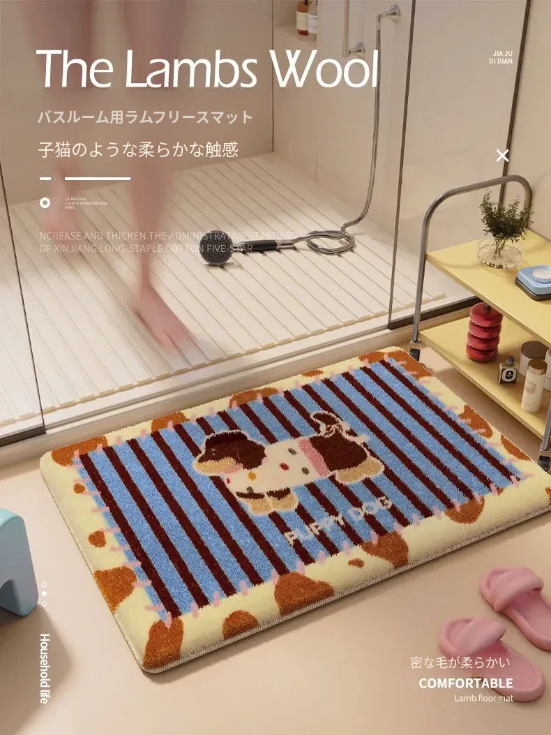 かわいいキャラクターのバスルーム吸水マット!ふわふわで厚みのある滑り止めデザイン、冬にぴったりのトイレ専用マット。快適さと安全性を兼ね備えた必需品!