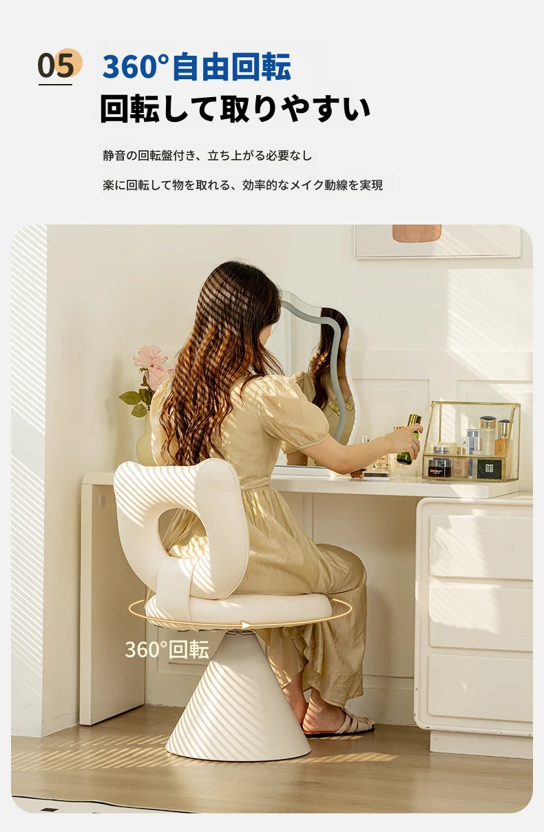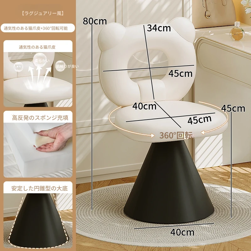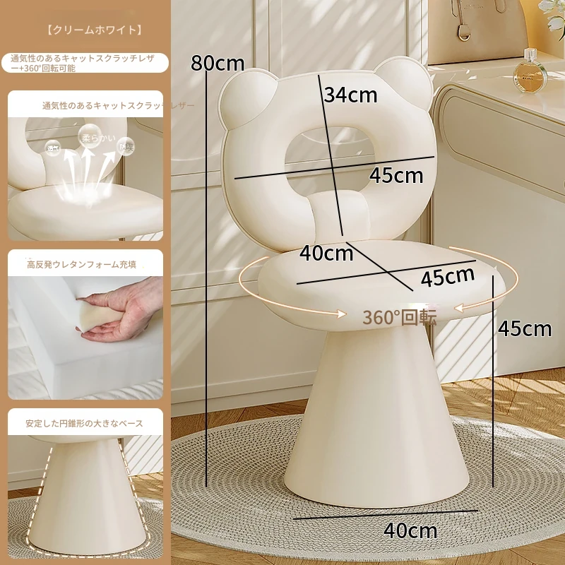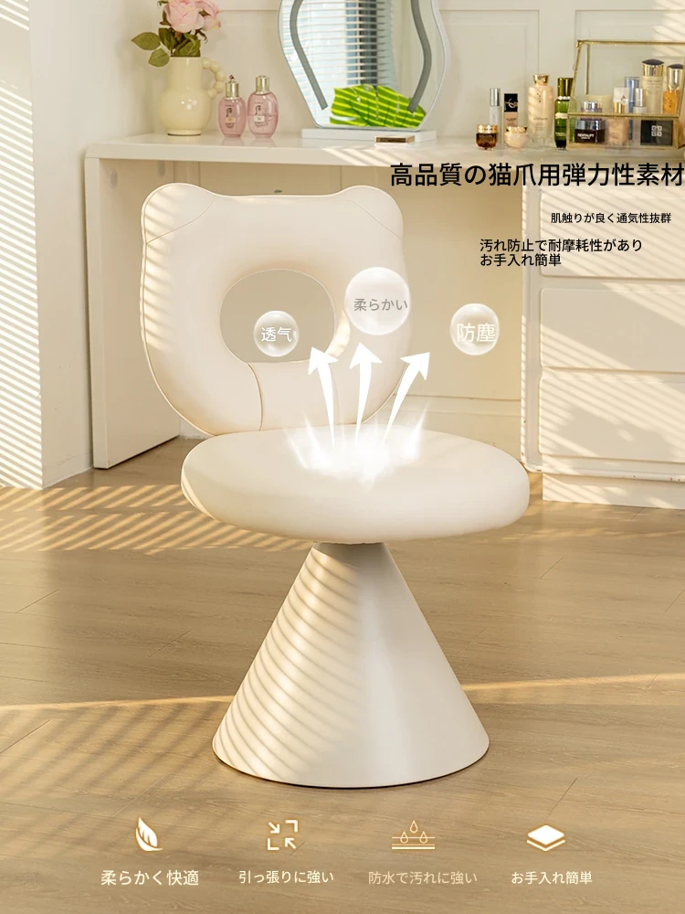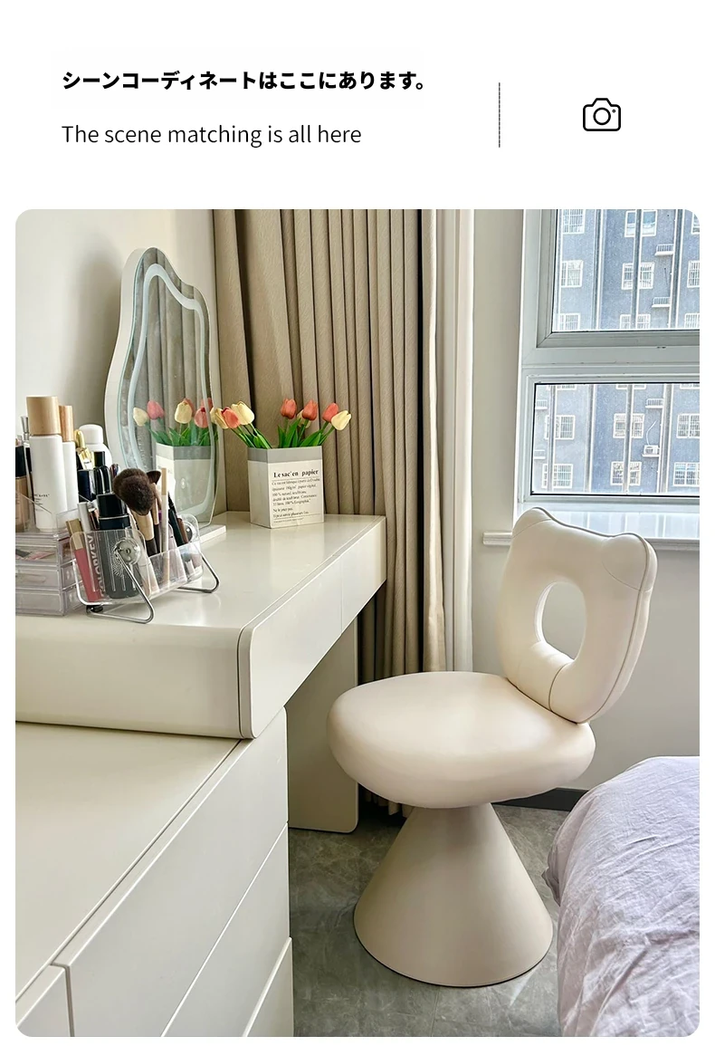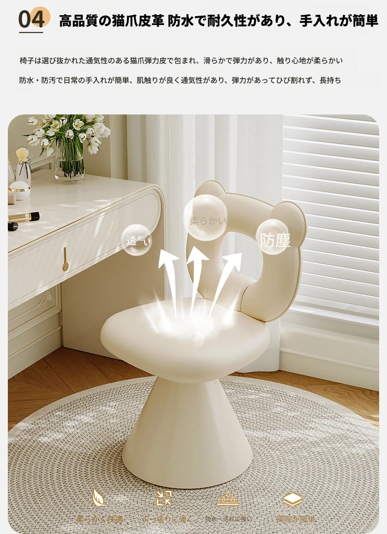 クリーム色の化粧椅子 - 女子向け主寝室やクローゼットに最適!高級感あふれるデザインで、回転式のネイル椅子としても大活躍。優雅な時間を演出するアイテムです!