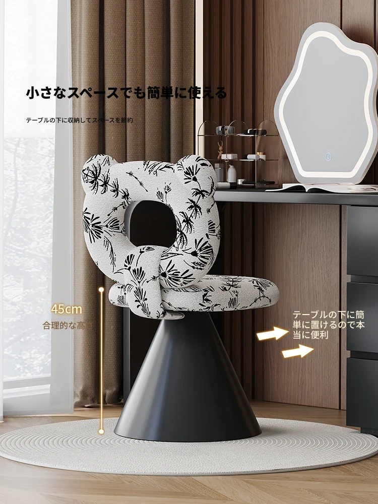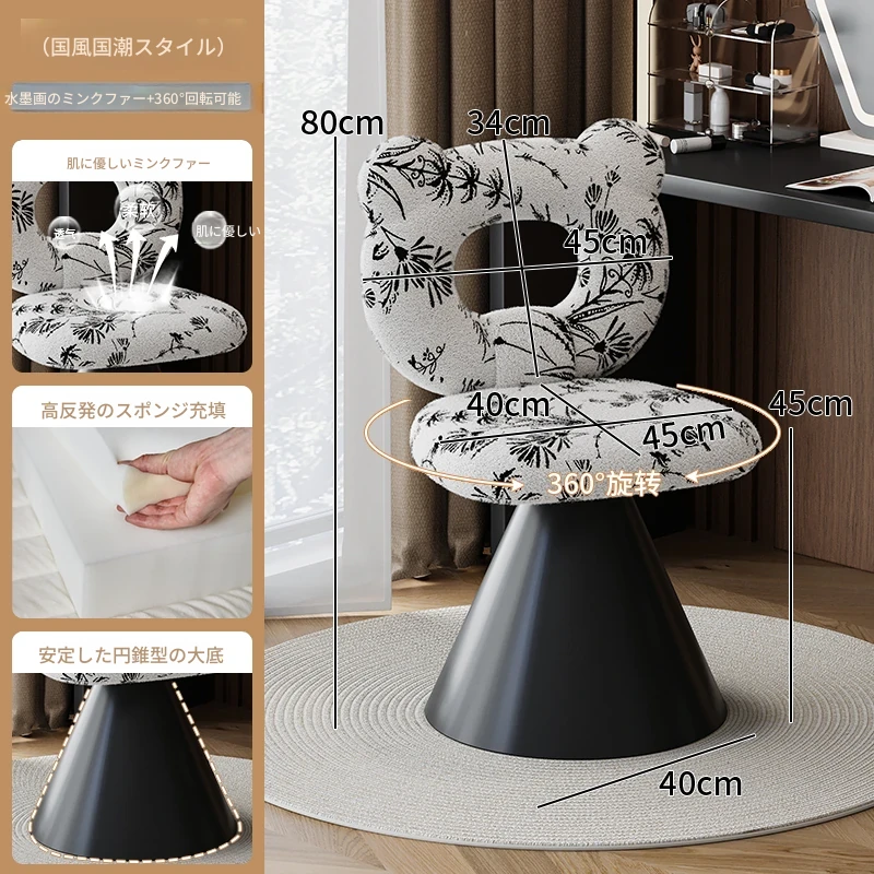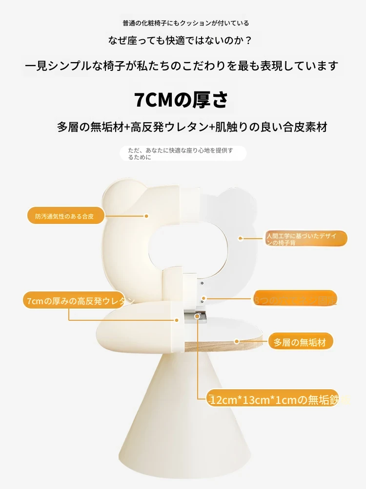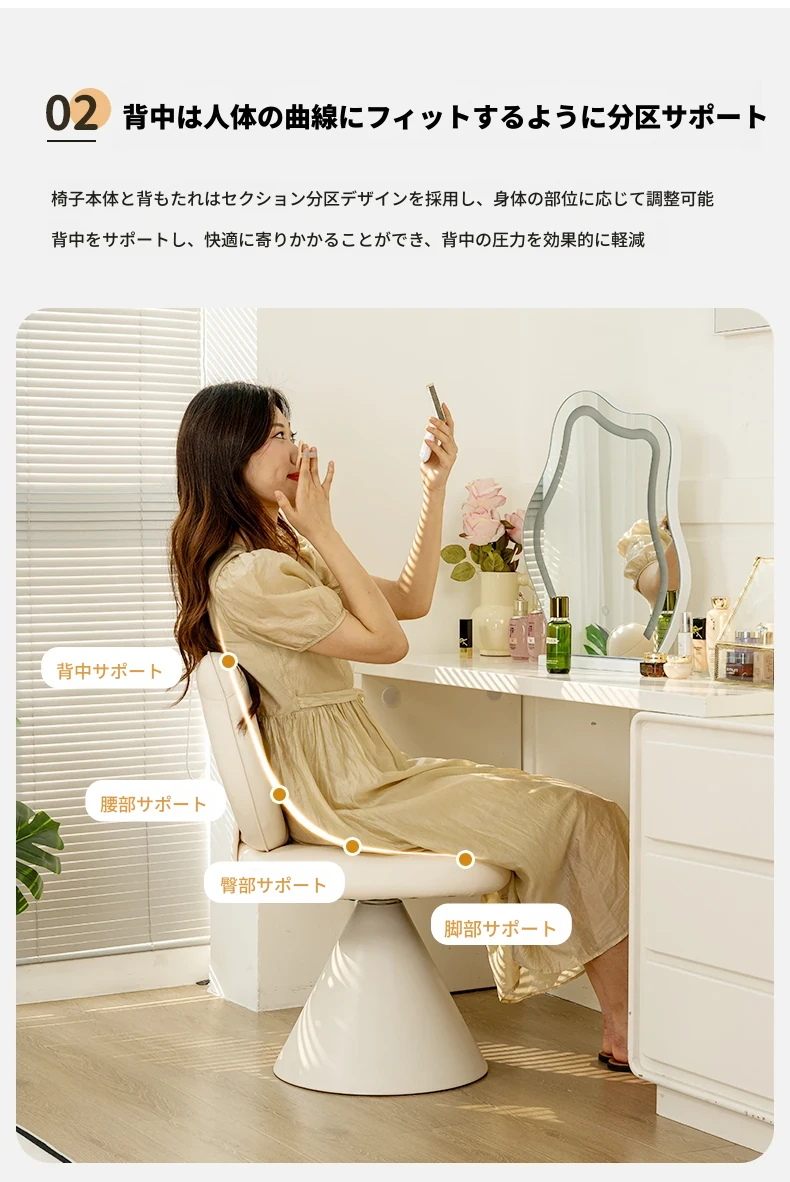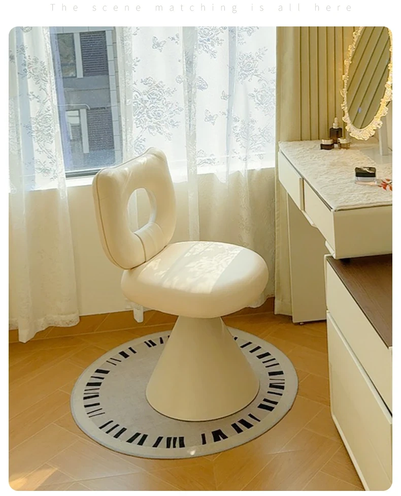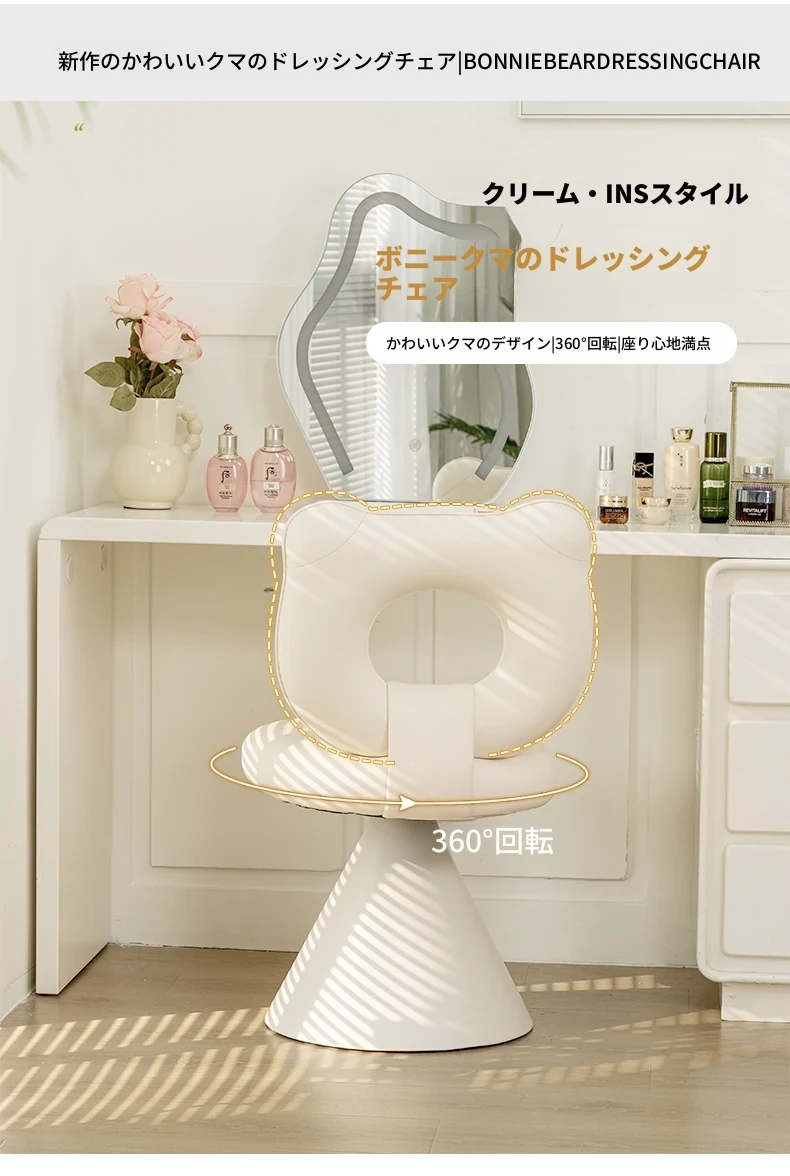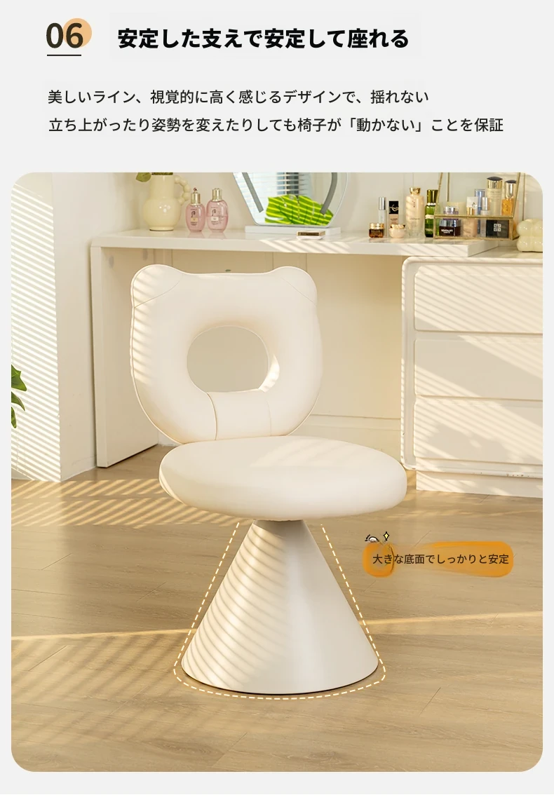 クリーム色の化粧椅子 - 女子向け主寝室やクローゼットに最適!高級感あふれるデザインで、回転式のネイル椅子としても大活躍。優雅な時間を演出するアイテムです!