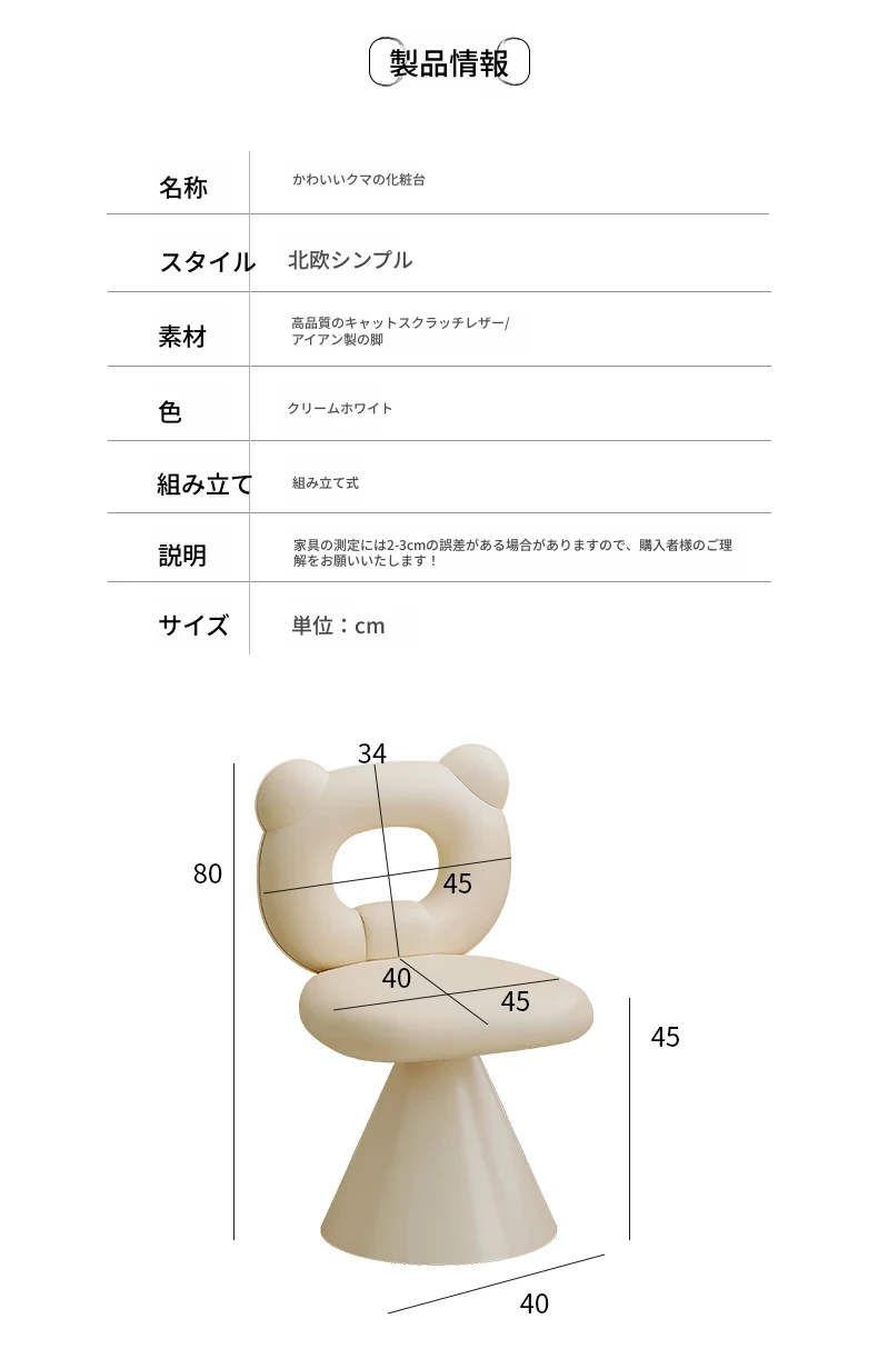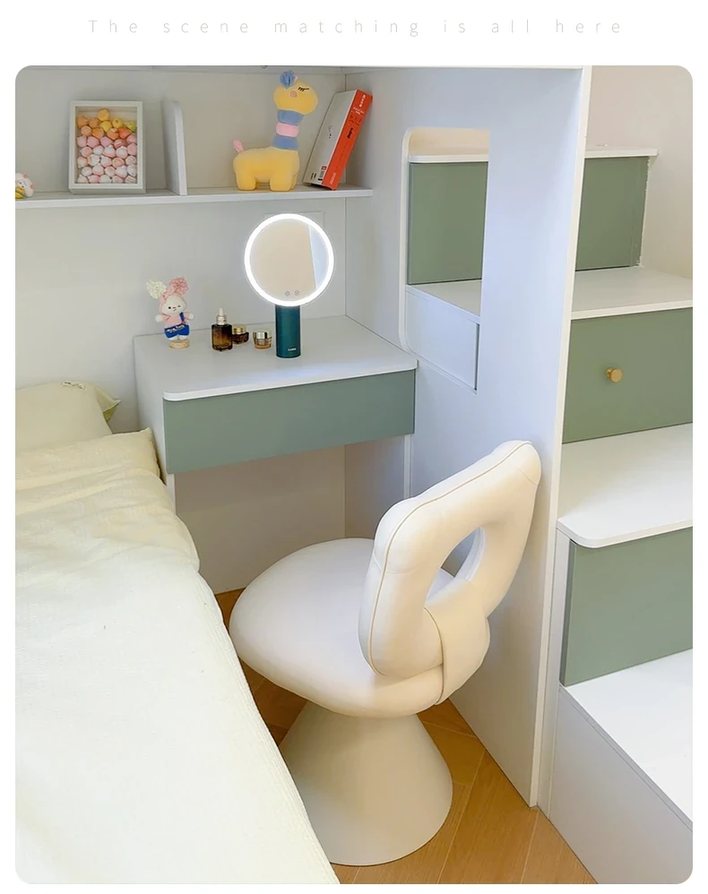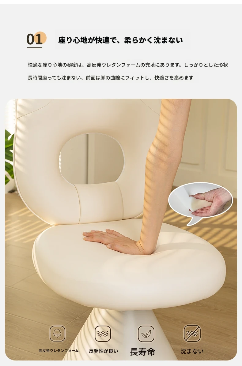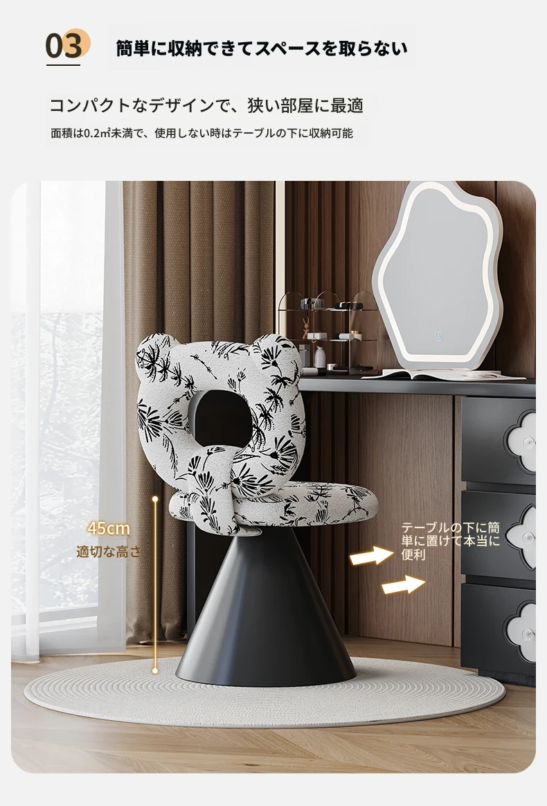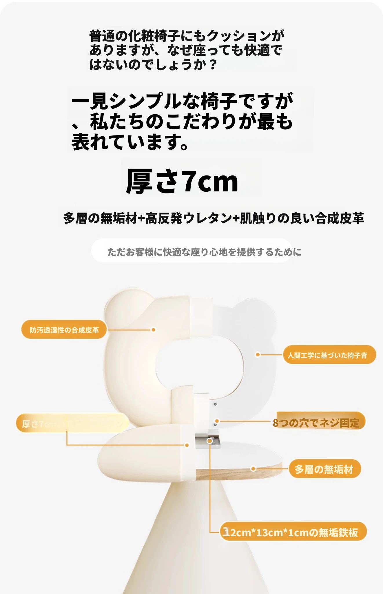 クリーム色の化粧椅子 - 女子向け主寝室やクローゼットに最適!高級感あふれるデザインで、回転式のネイル椅子としても大活躍。優雅な時間を演出するアイテムです!