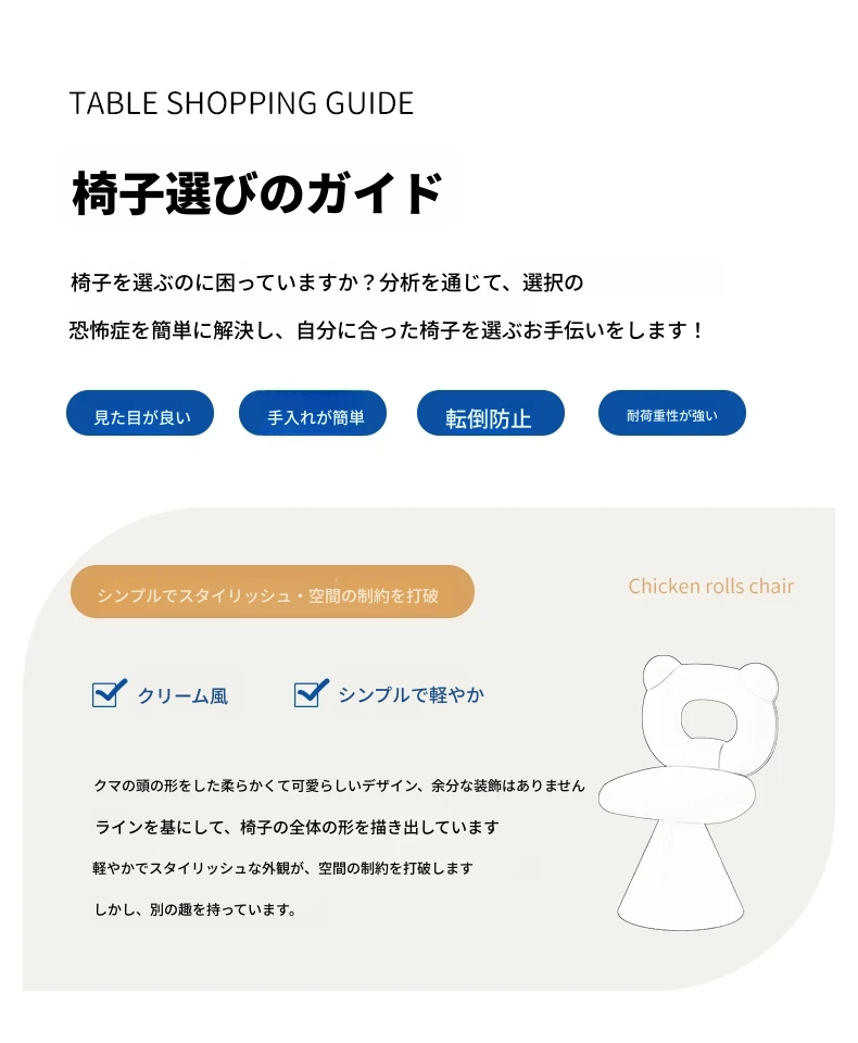 【クリームホワイト】通気性のあるキャットクライピング+360°回転可能+無垢材フレームの椅子脚