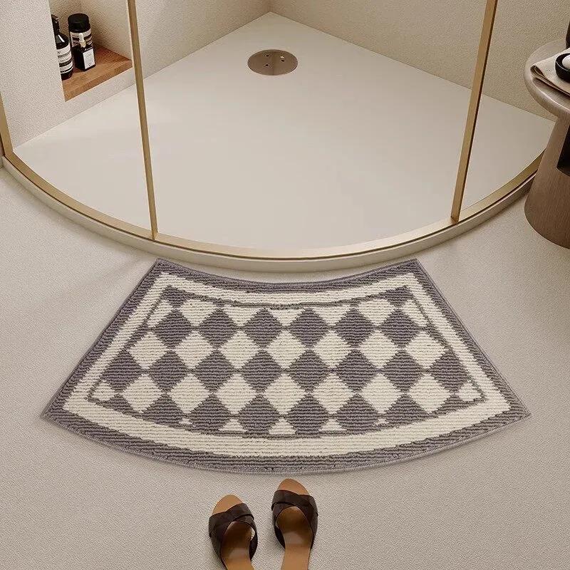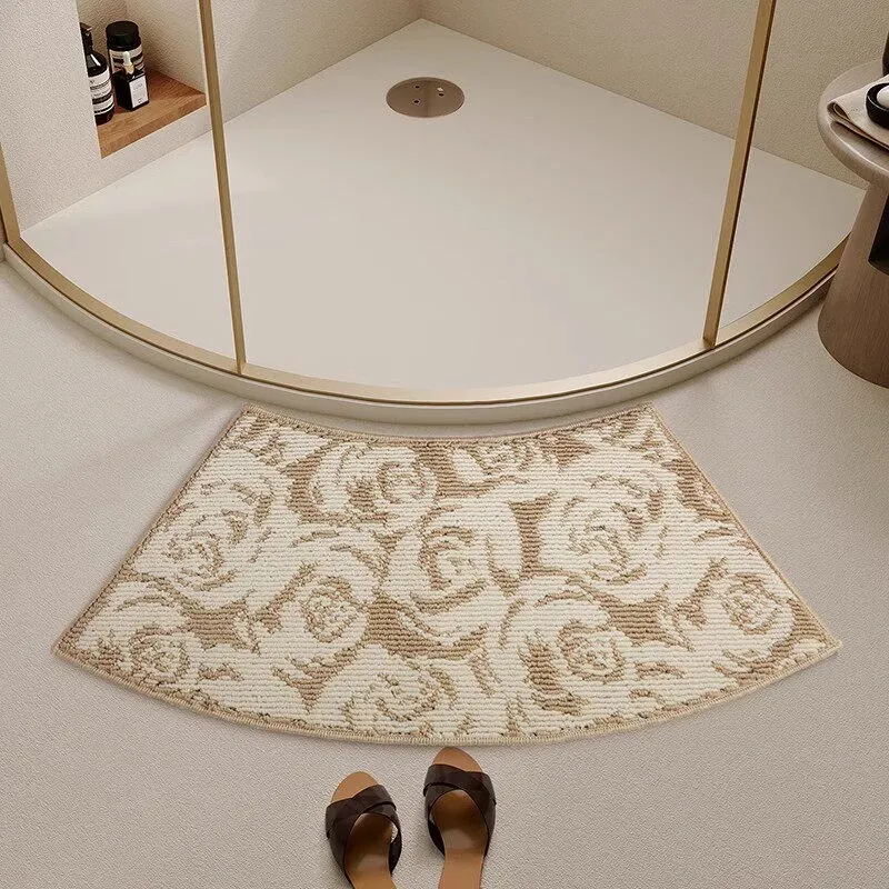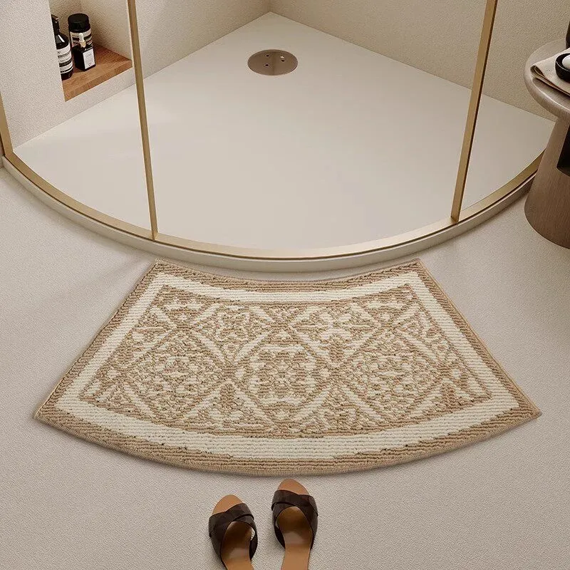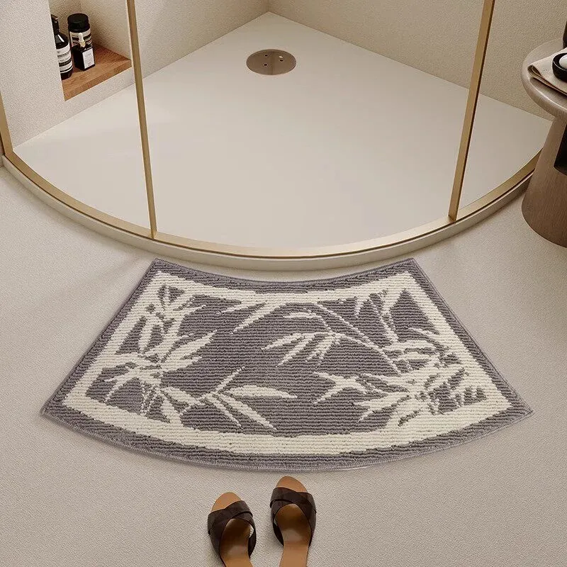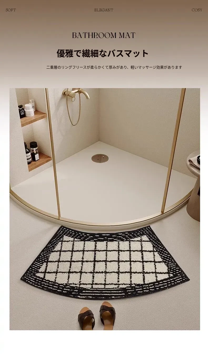 曲線形のバスルームマット|吸水性抜群・滑り止め付き・厚手のトイレ用フロアマット|快適さと安全性を両立したセクシーなバスエリアを演出する扇形マット