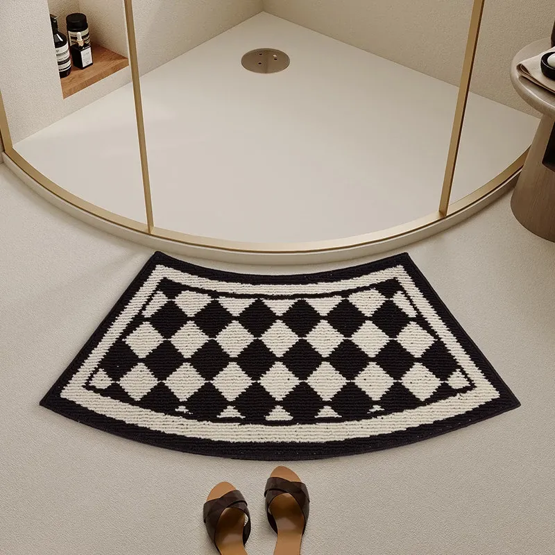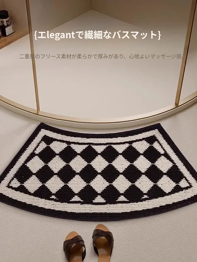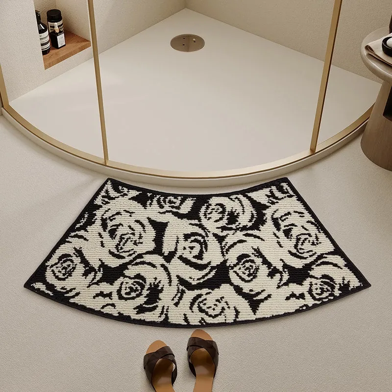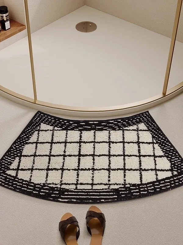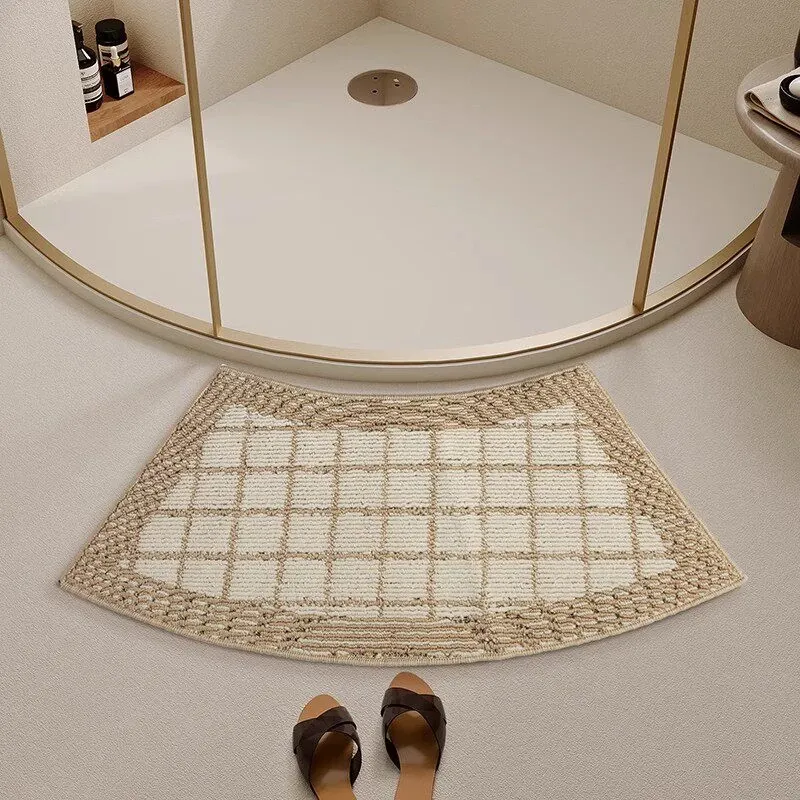 曲線形のバスルームマット|吸水性抜群・滑り止め付き・厚手のトイレ用フロアマット|快適さと安全性を両立したセクシーなバスエリアを演出する扇形マット