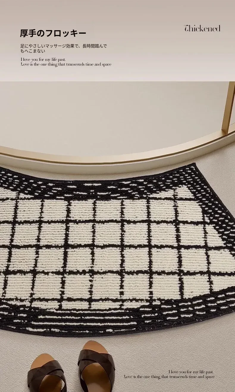 モダンチェスボードブラックダブルレイヤーサークルフリースマット-アーチ型