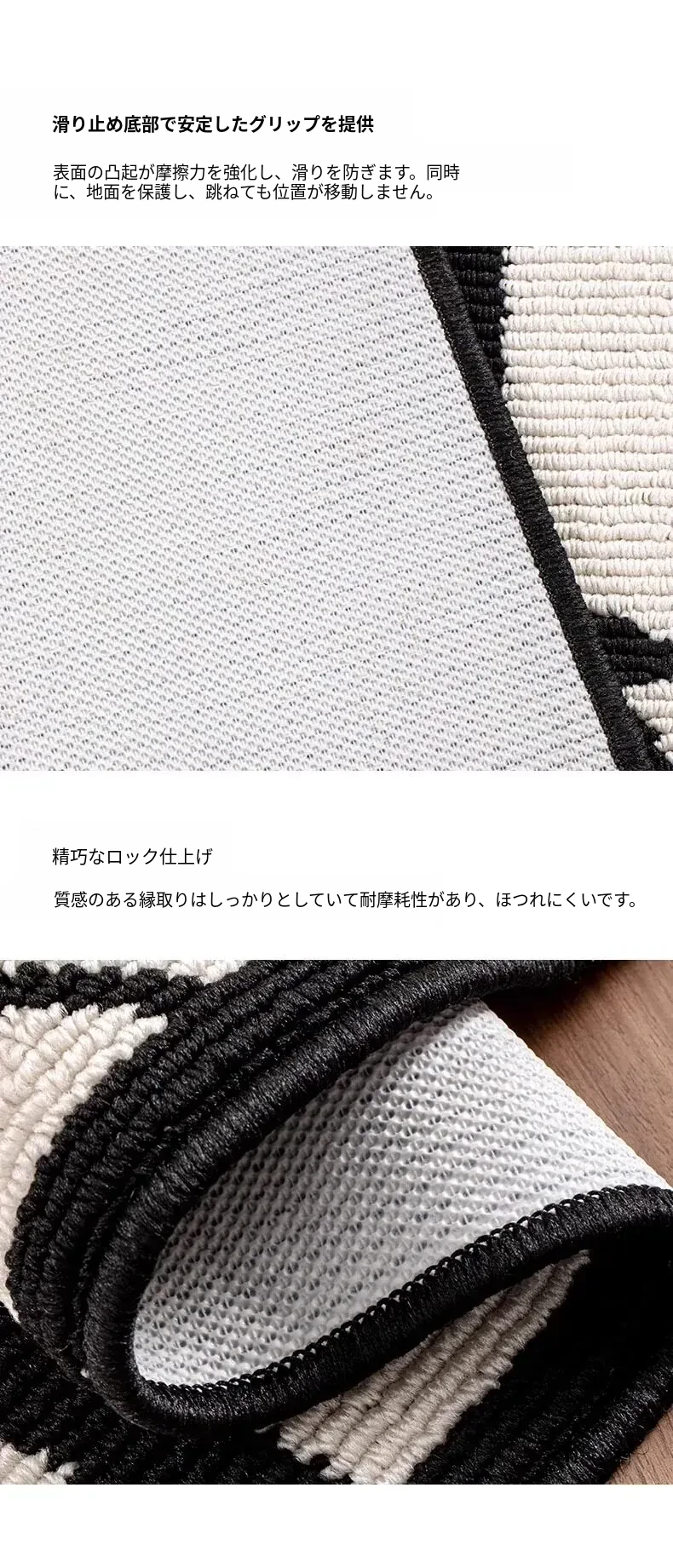 斑点タイルブラックダブルレイヤーサークルフリースマット-アーチ型