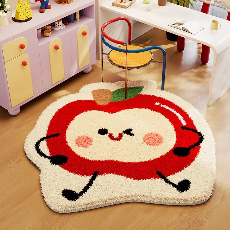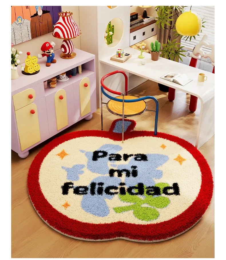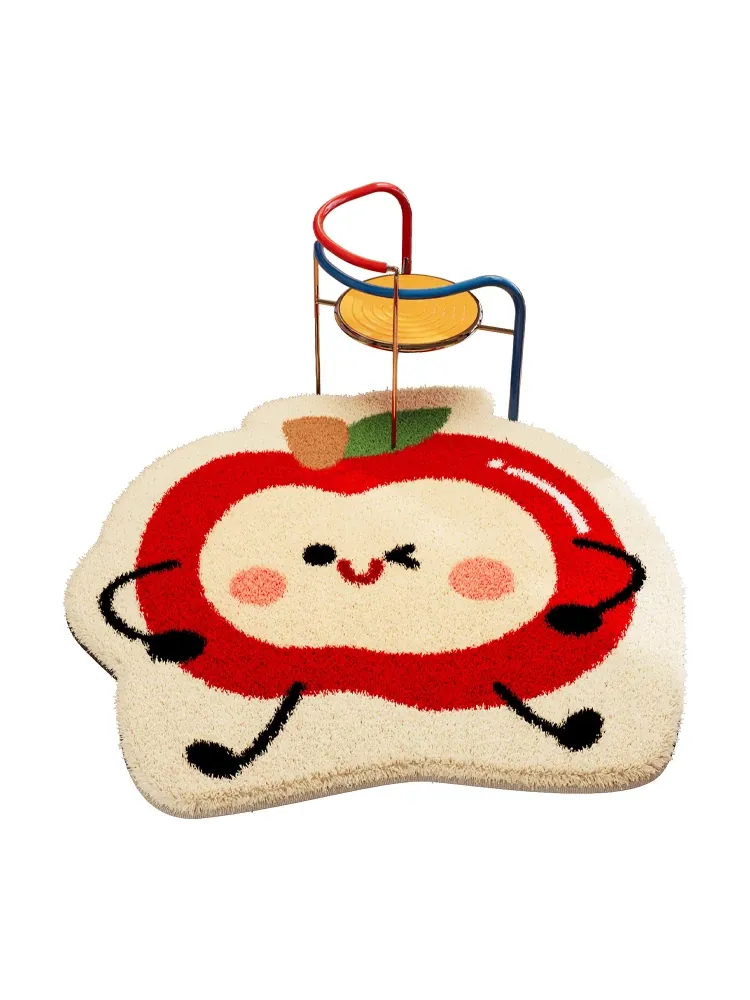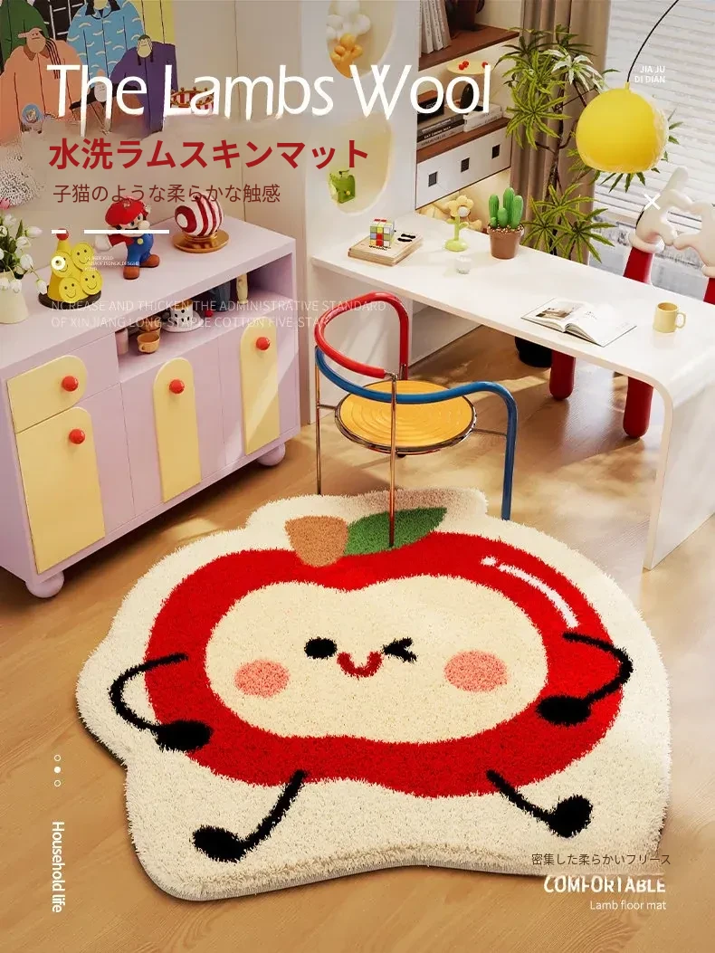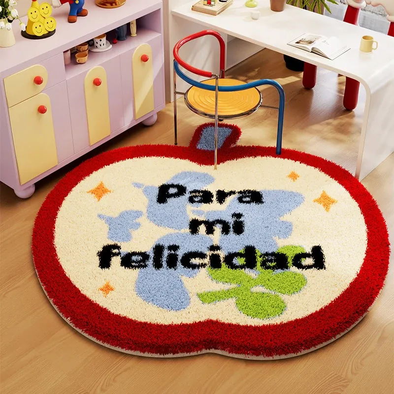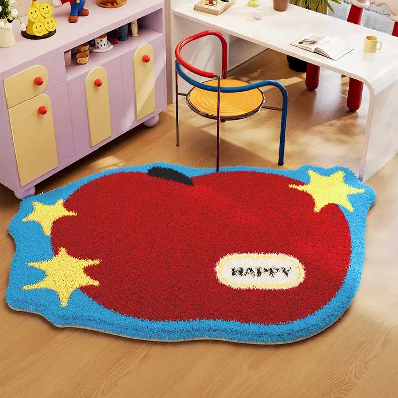 子供部屋にぴったり!かわいいアップル型のふわふわラグマット。読書や勉強に最適なデザイン、デスクや椅子の下でも大活躍!快適さと楽しさを兼ね備えた空間作りに最適です。