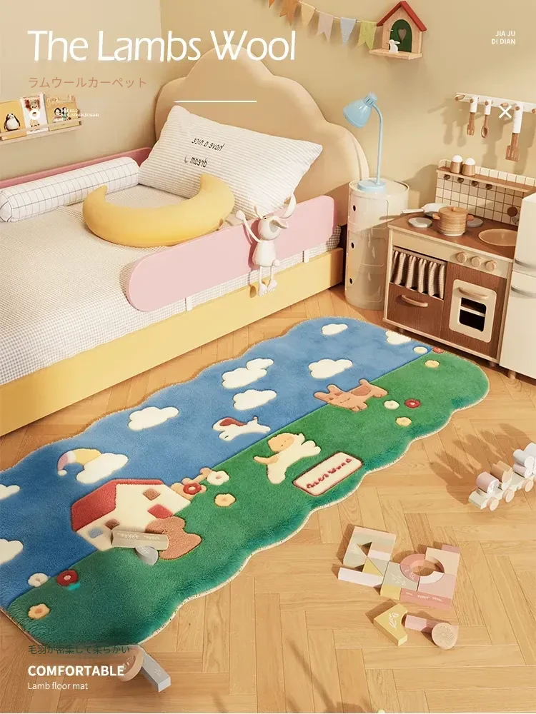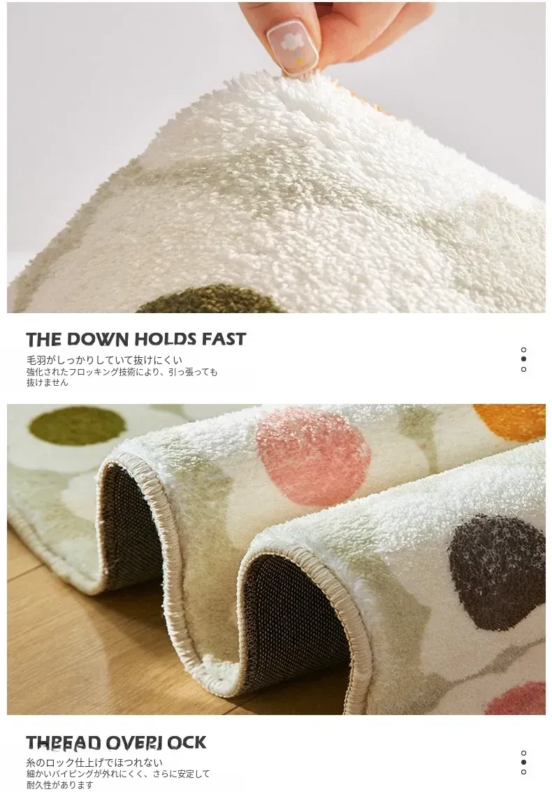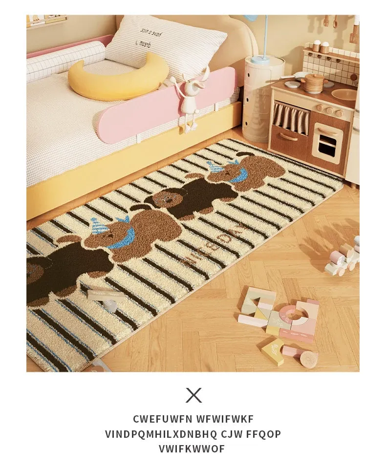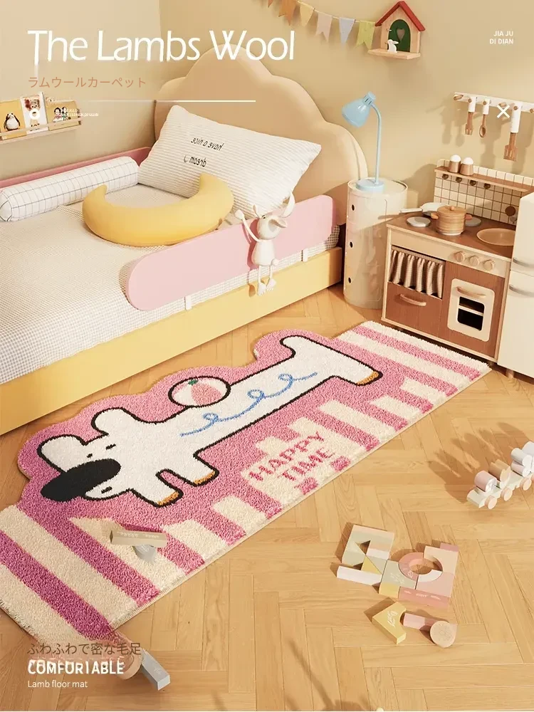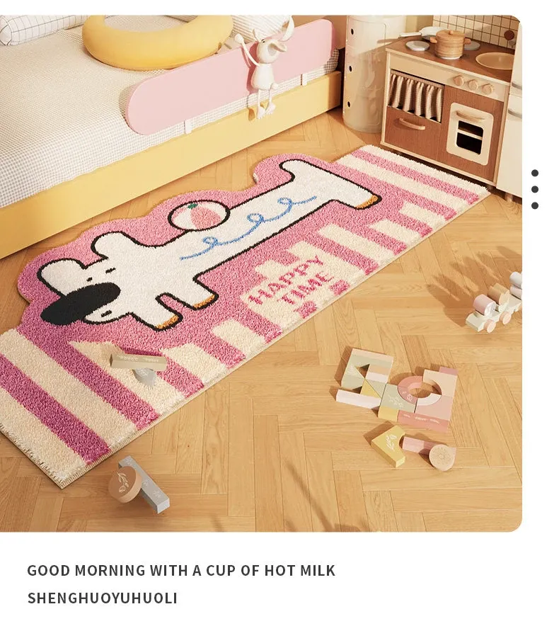 かわいいカートゥーンデザインのドーパミンベッドサイドマット!冬にぴったり、子供部屋や女の子の寝室に最適なふわふわなラグ。お手入れ簡単で、暖かさと楽しさをプラスします!