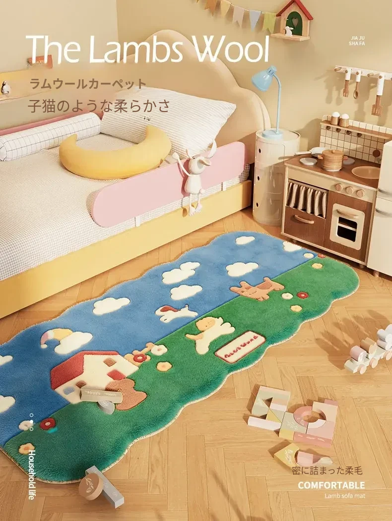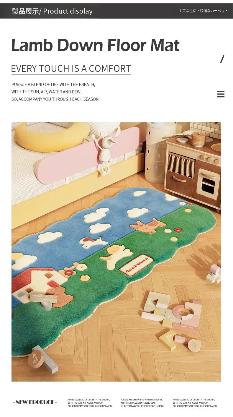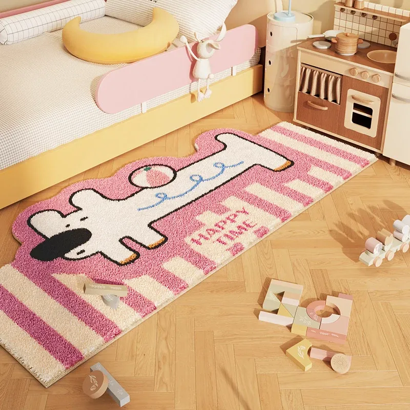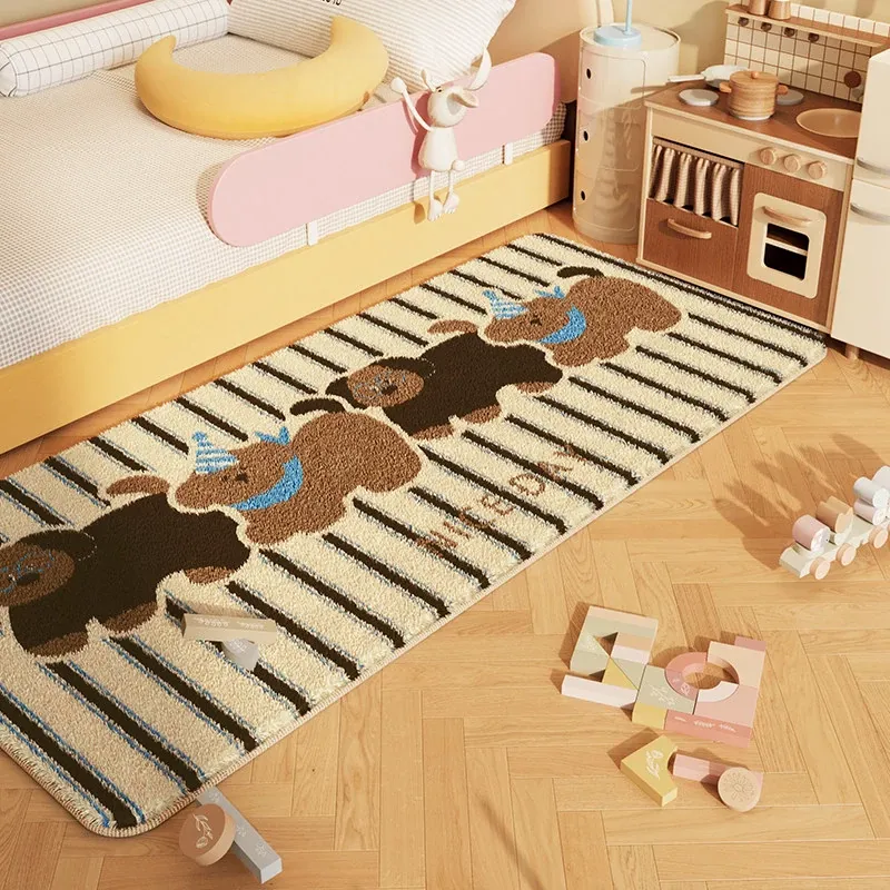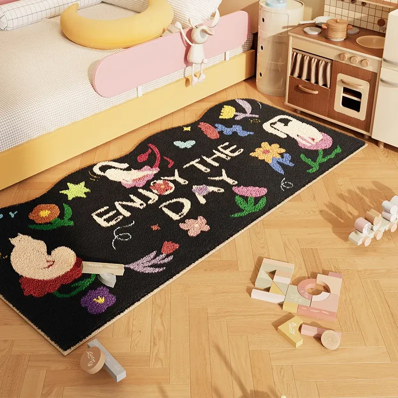 かわいいカートゥーンデザインのドーパミンベッドサイドマット!冬にぴったり、子供部屋や女の子の寝室に最適なふわふわなラグ。お手入れ簡単で、暖かさと楽しさをプラスします!