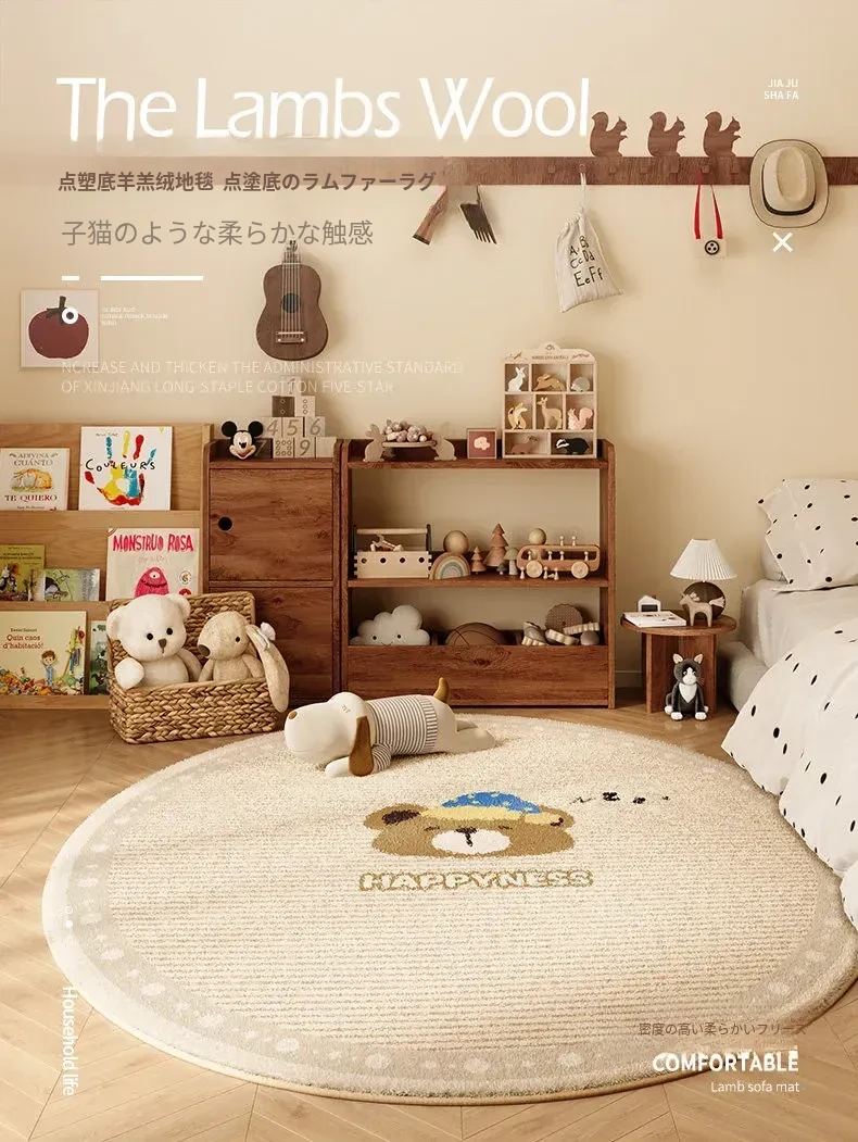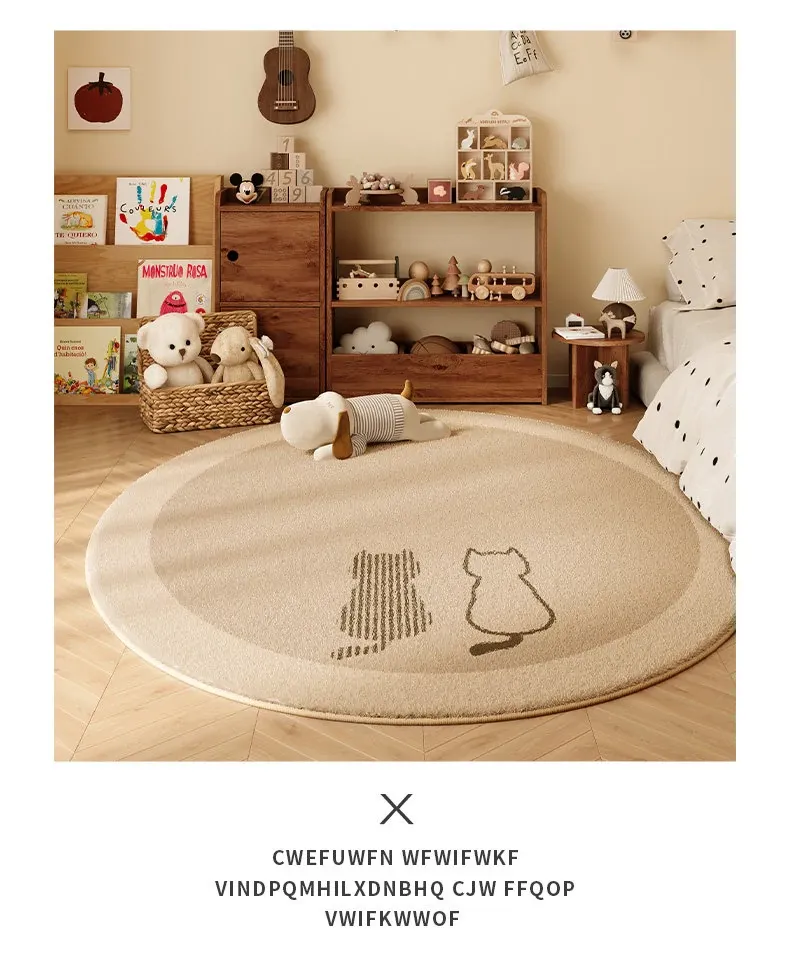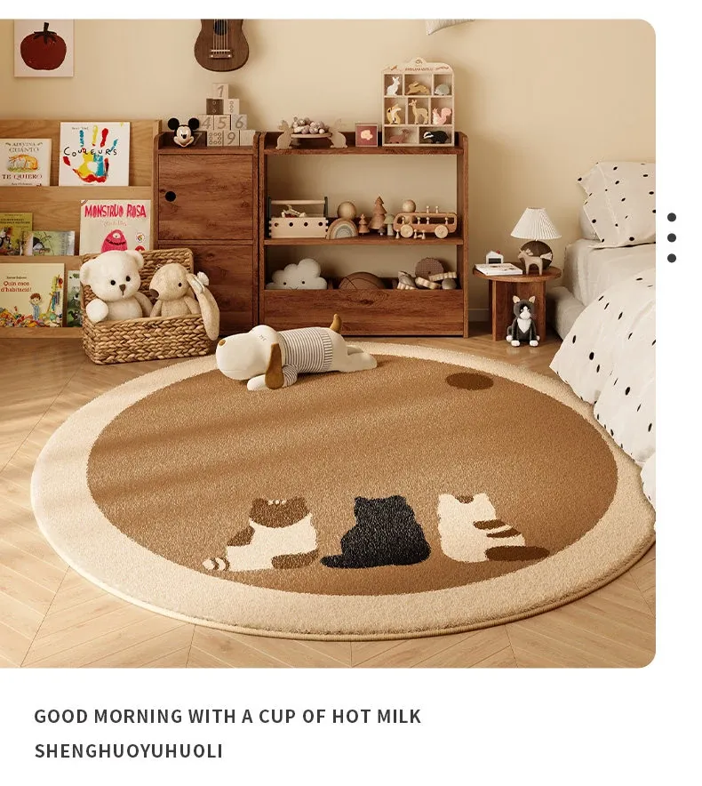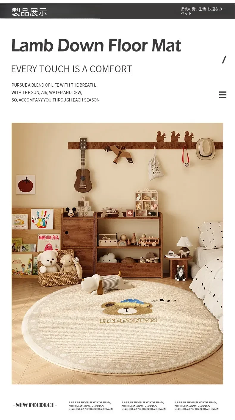 かわいいキャラクター円形カーペット 女の子の寝室にぴったり!滑り止め付きで安全、ふわふわの肌触りで子供部屋を華やかに彩るマット。ベッドの前に最適な愛らしいデザイン!