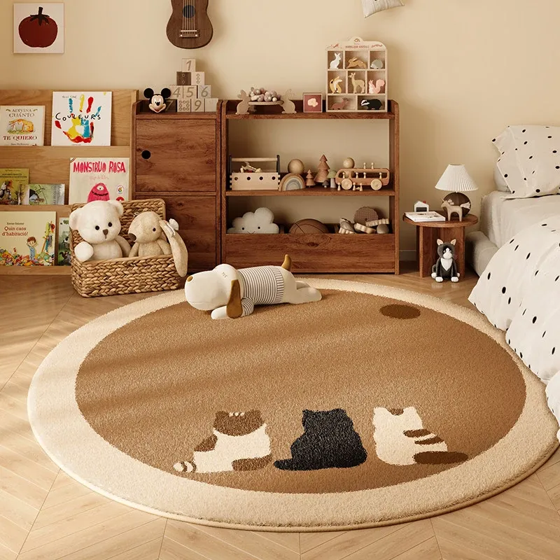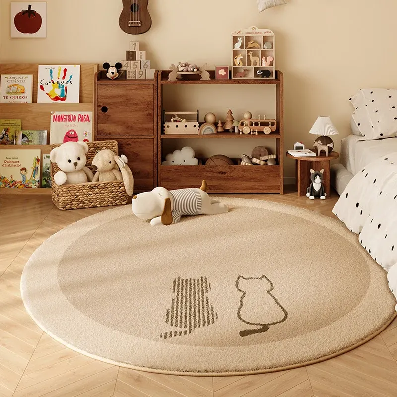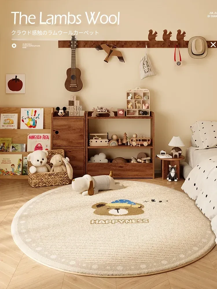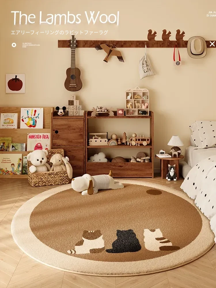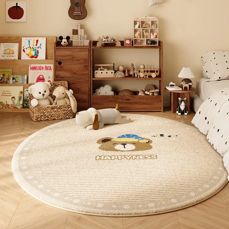 かわいいキャラクター円形カーペット 女の子の寝室にぴったり!滑り止め付きで安全、ふわふわの肌触りで子供部屋を華やかに彩るマット。ベッドの前に最適な愛らしいデザイン!