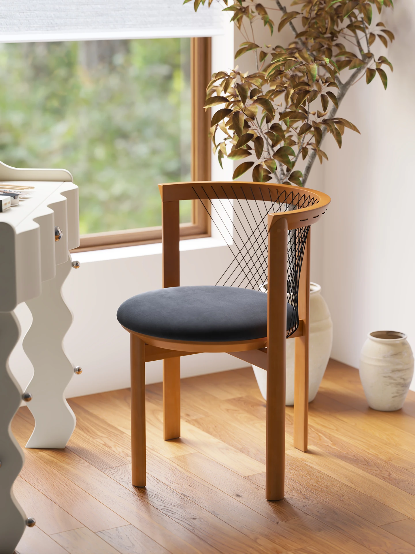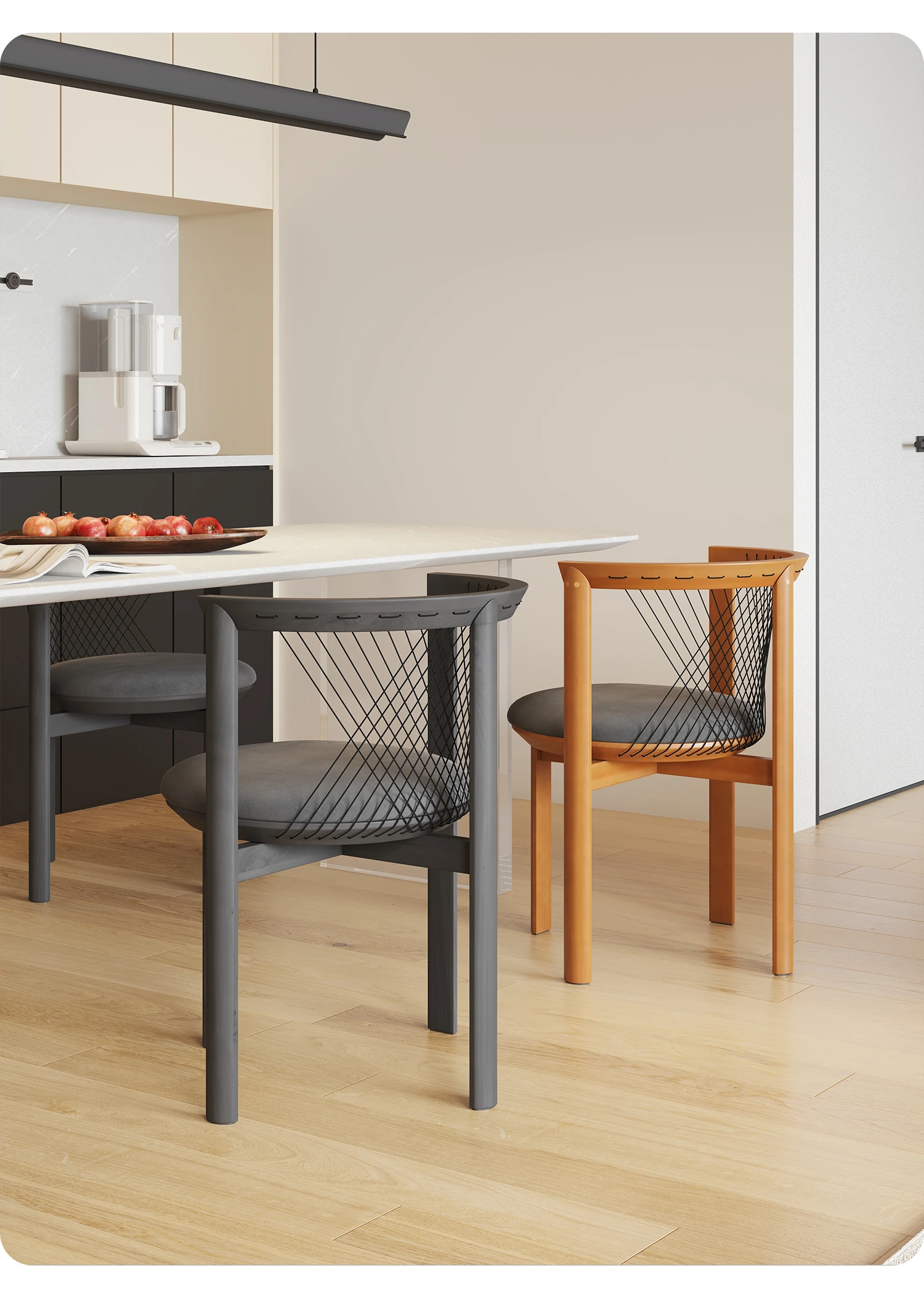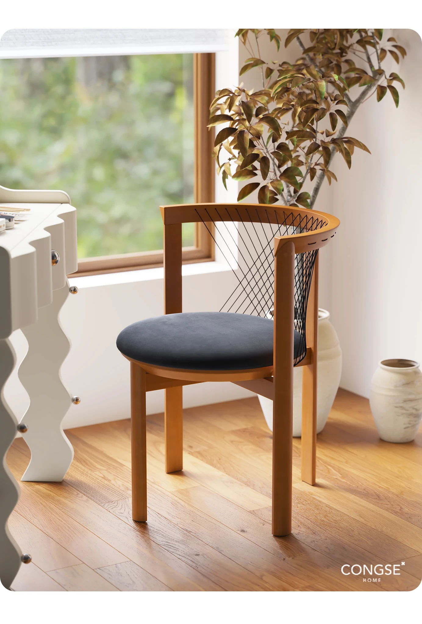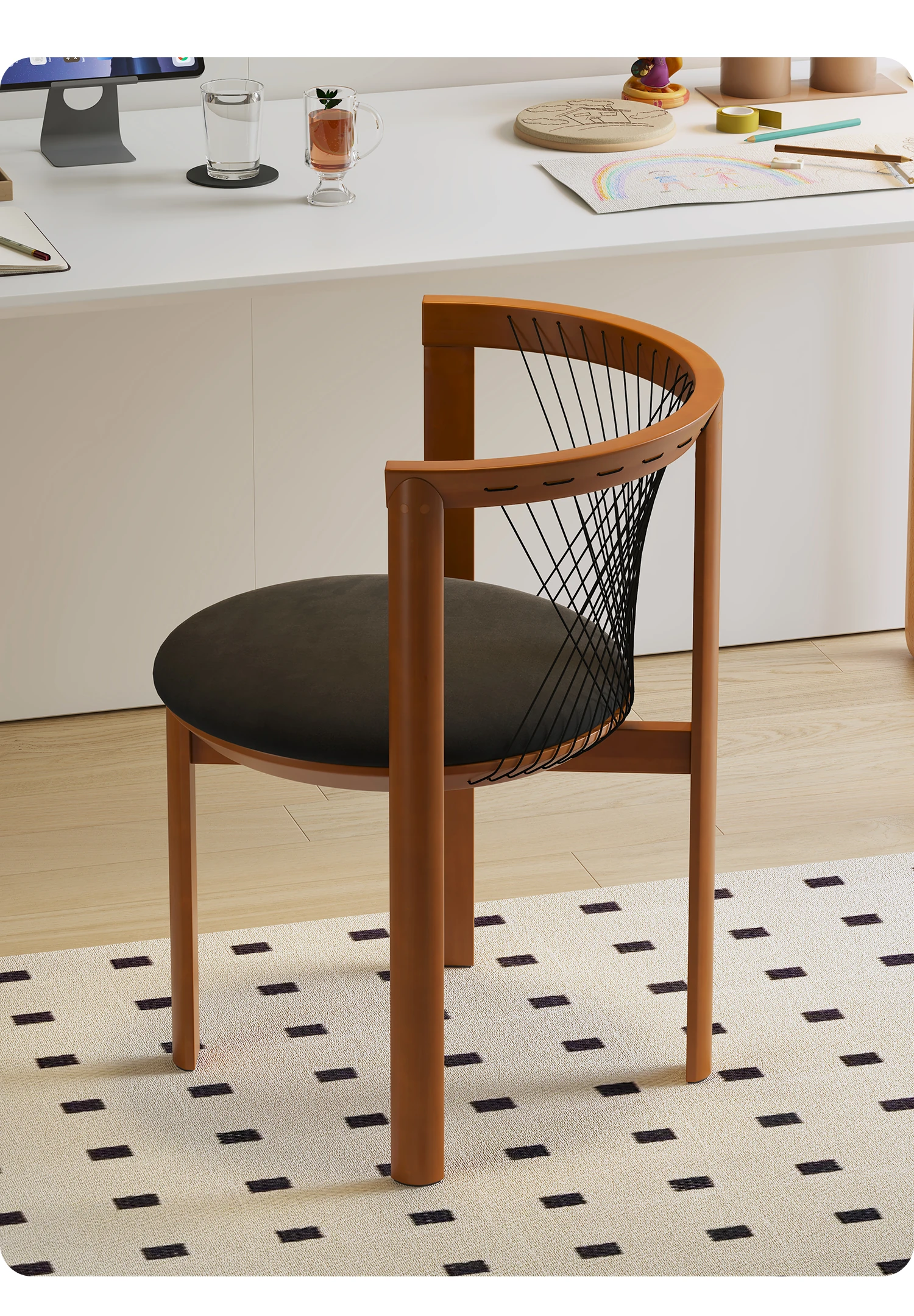 Designer Scandinavian Solid Wood Dining Chair with Soft Backrest - Vintage Luxury Armchair, Perfect for Chic Dining Spaces and Trendy Interiors.