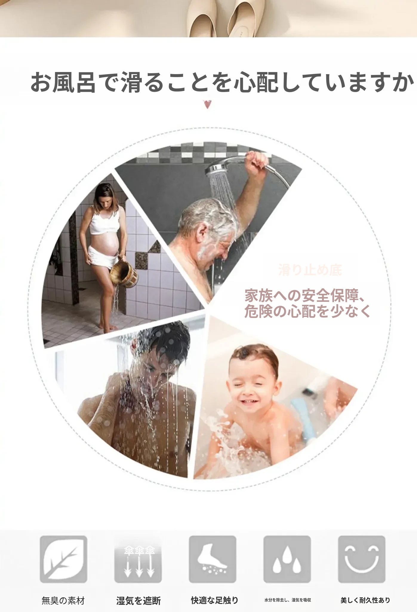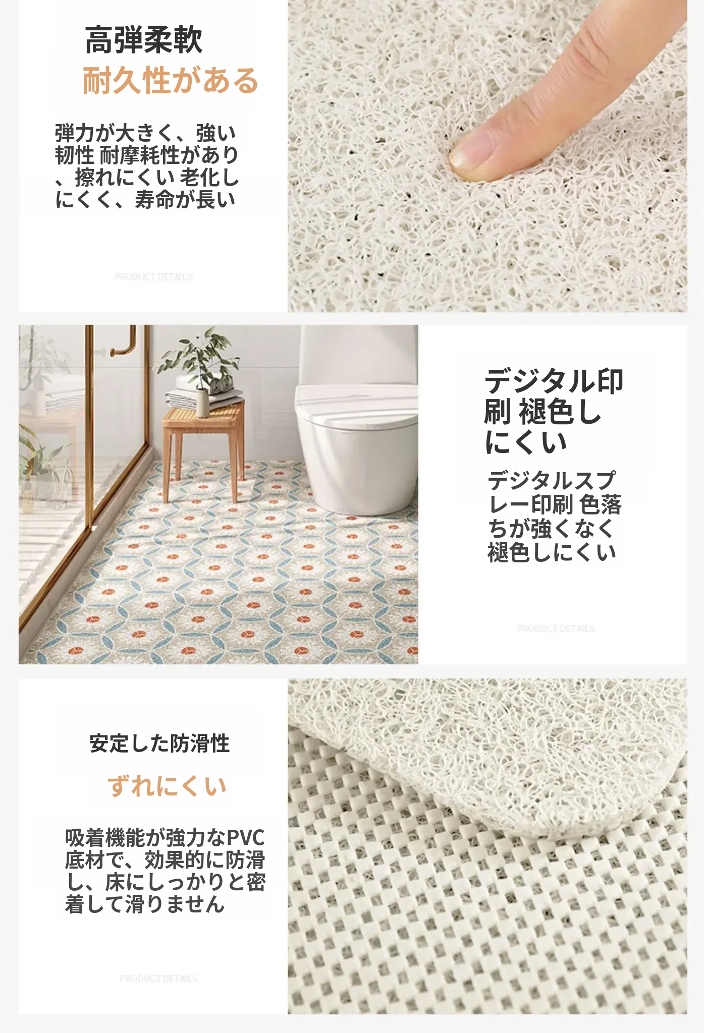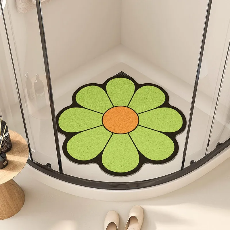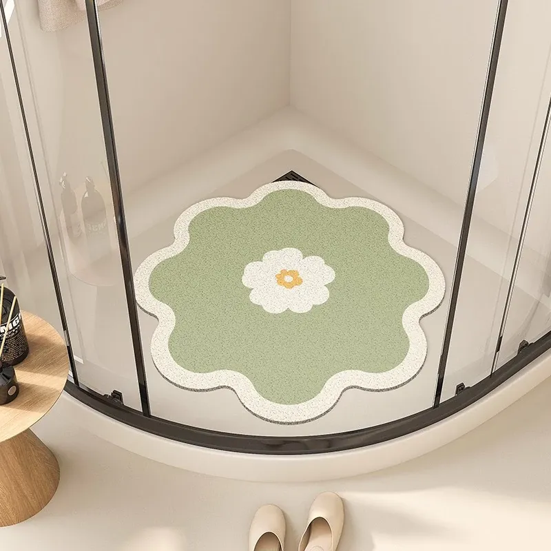 ダイヤモンドデザインのバスルームマット!シャワールームに最適な扇形の踏みマット。家庭用トイレの入口マットとしても使える、滑り止め機能付きのアーチ型カーペットで、安心してお風呂を楽しめます!
