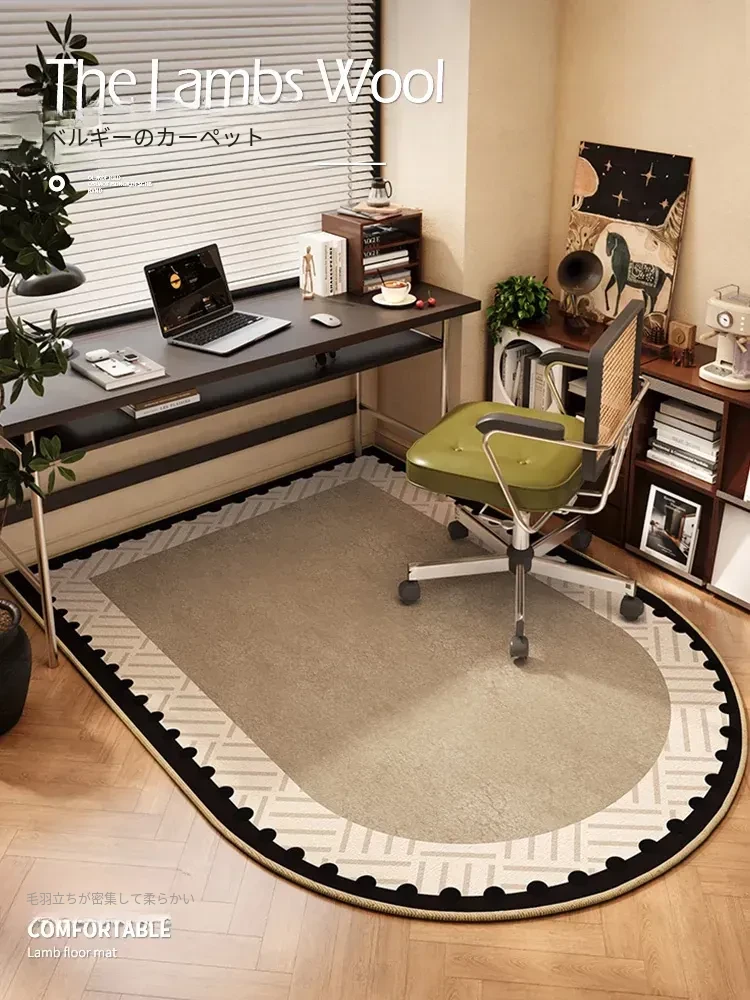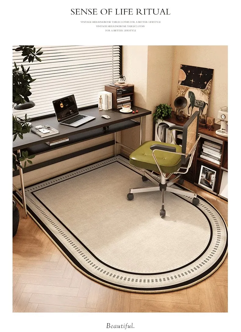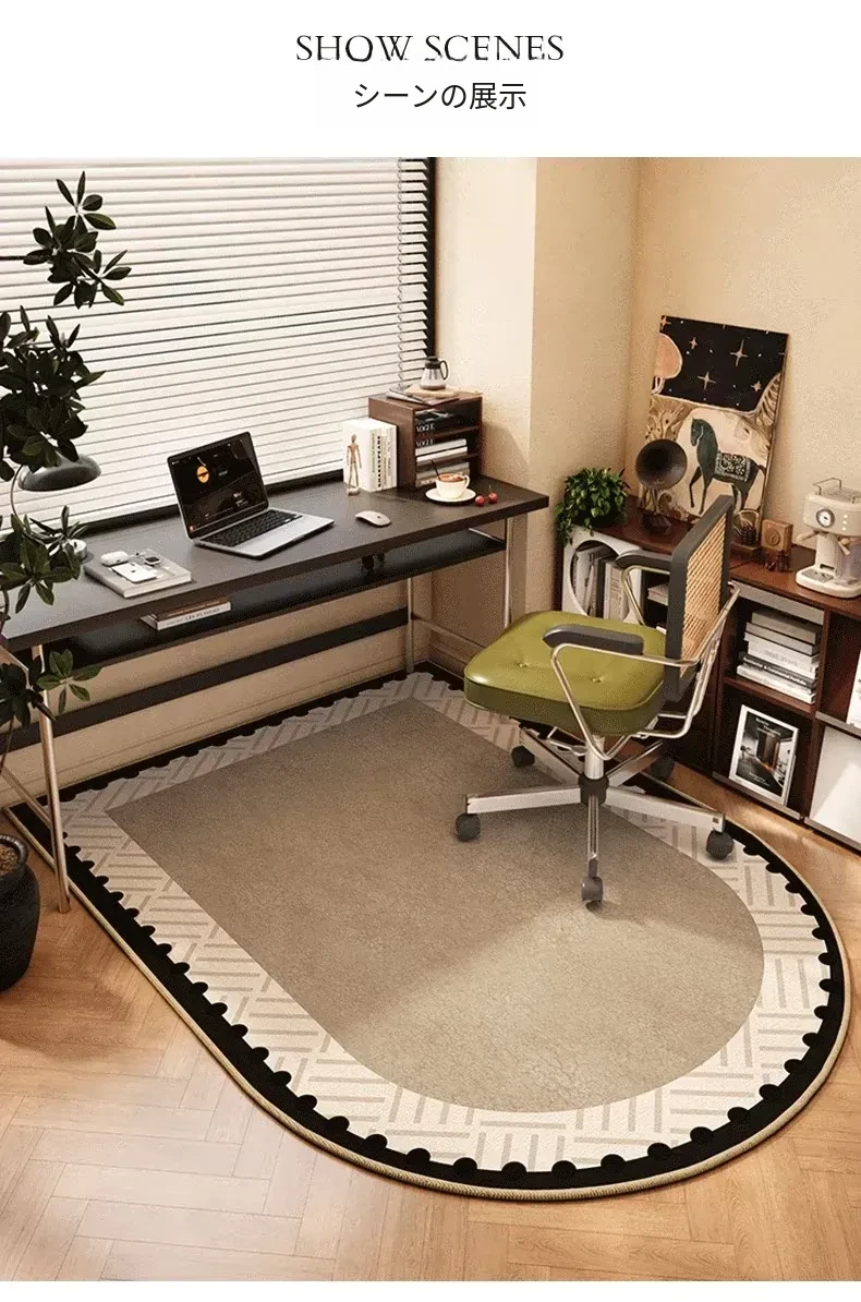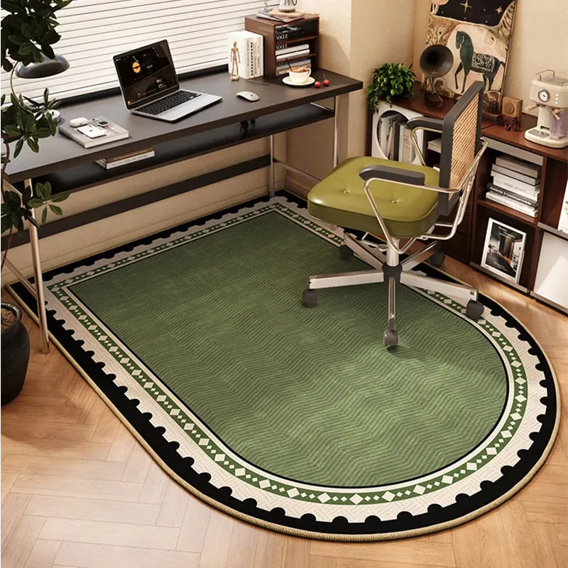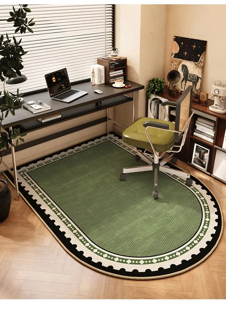 フランス風アーチ型オフィス用ラグ - 読書エリアや回転椅子に最適!おしゃれで高級感あふれるグリーンの耐汚れマット。心地よい空間を演出し、仕事やリラックスタイムを格上げします。