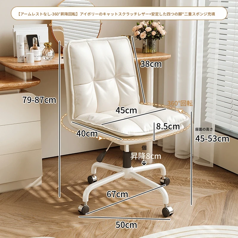 【アームレストなし-360°昇降回転】クリーム色のキャットスクラッチ+安定した四本脚*二層スポンジ充填