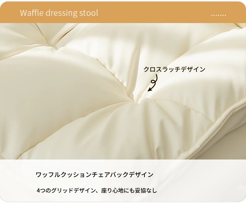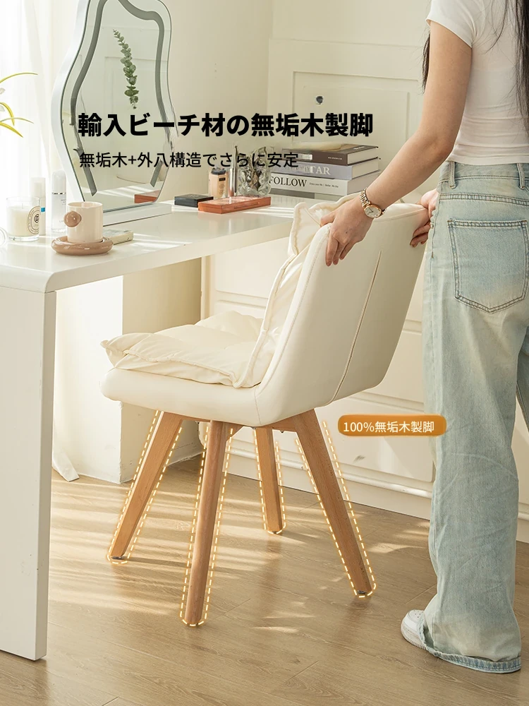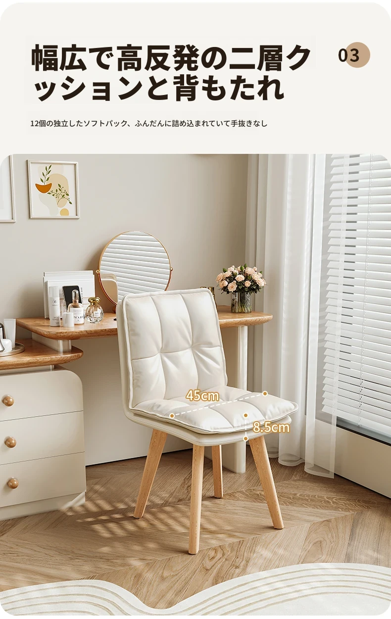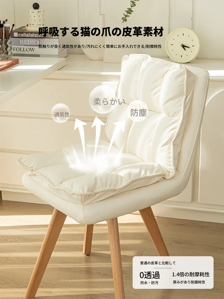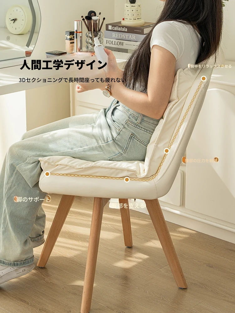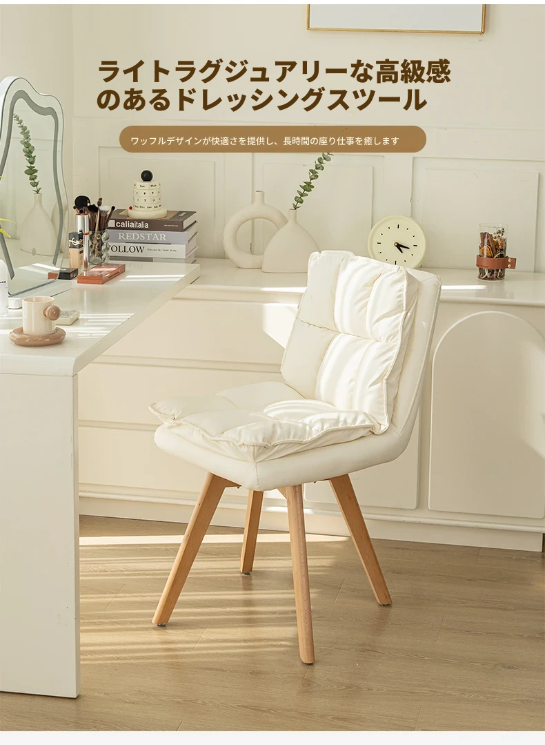プレミアム化粧台用スツール|女の子のための快適な化粧椅子|クリーミーなデザインで、おしゃれな寝室を演出|背もたれ付きで長時間座っても疲れにくい!