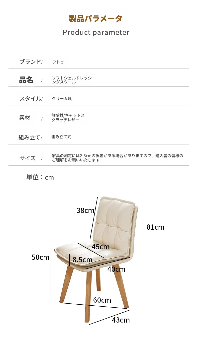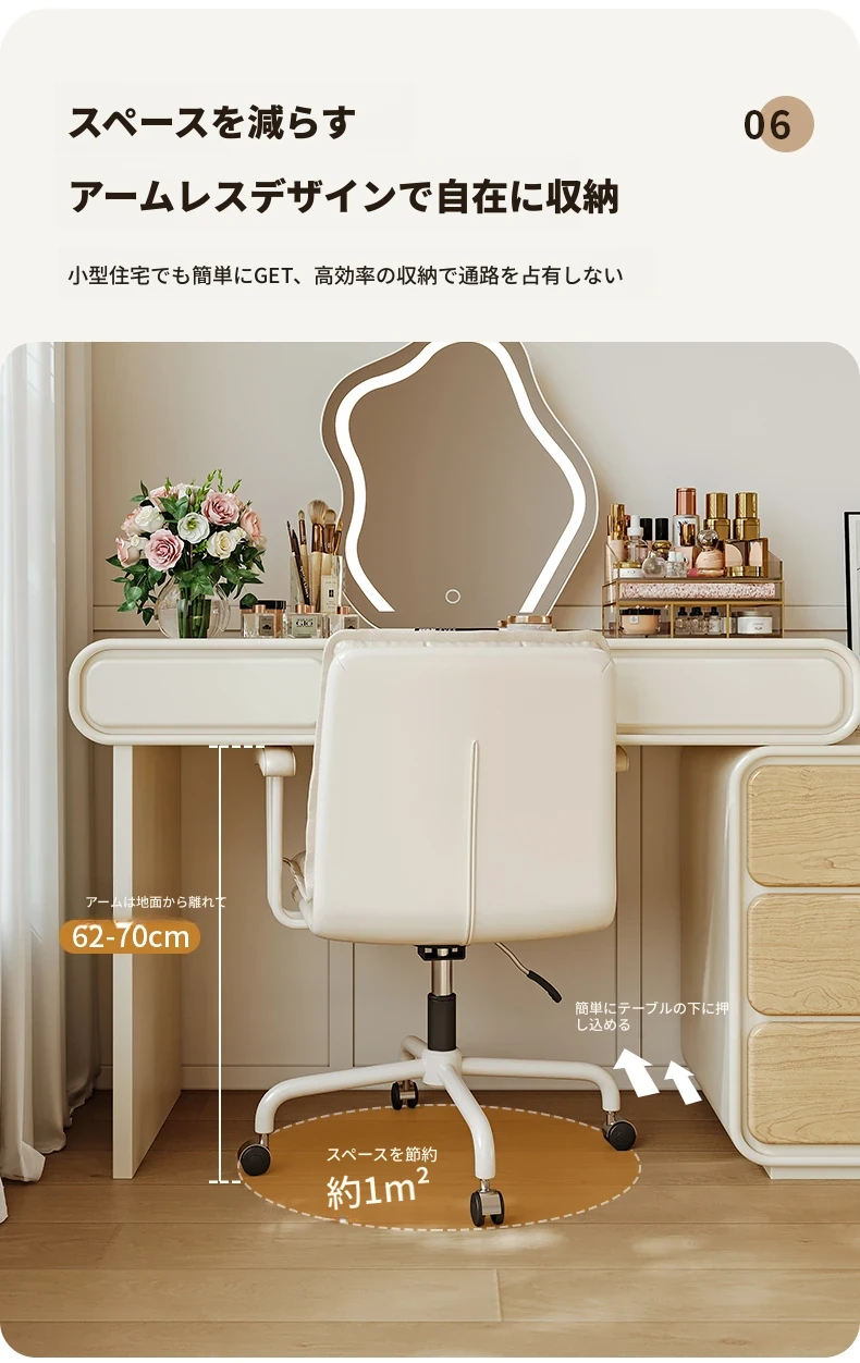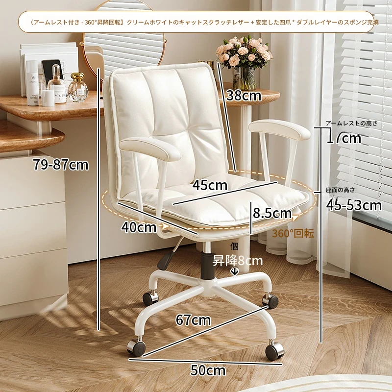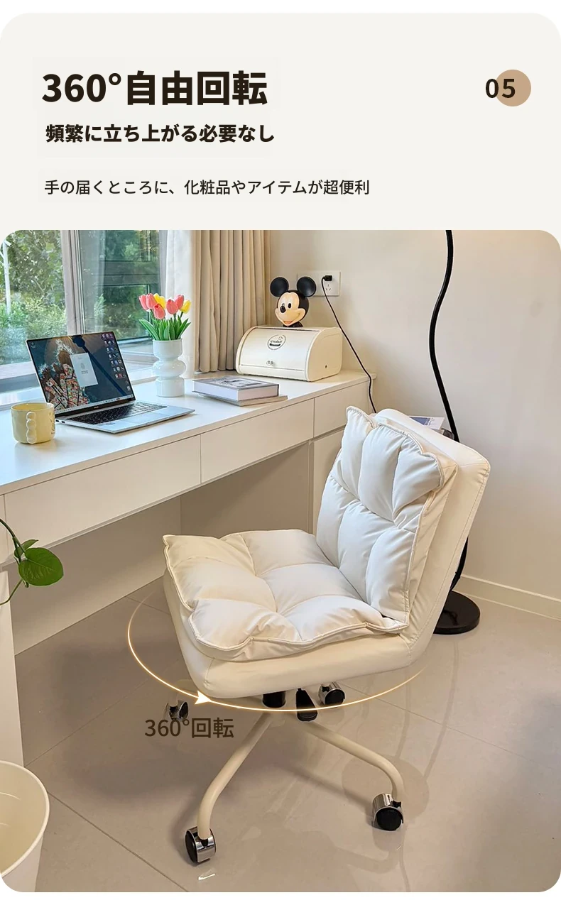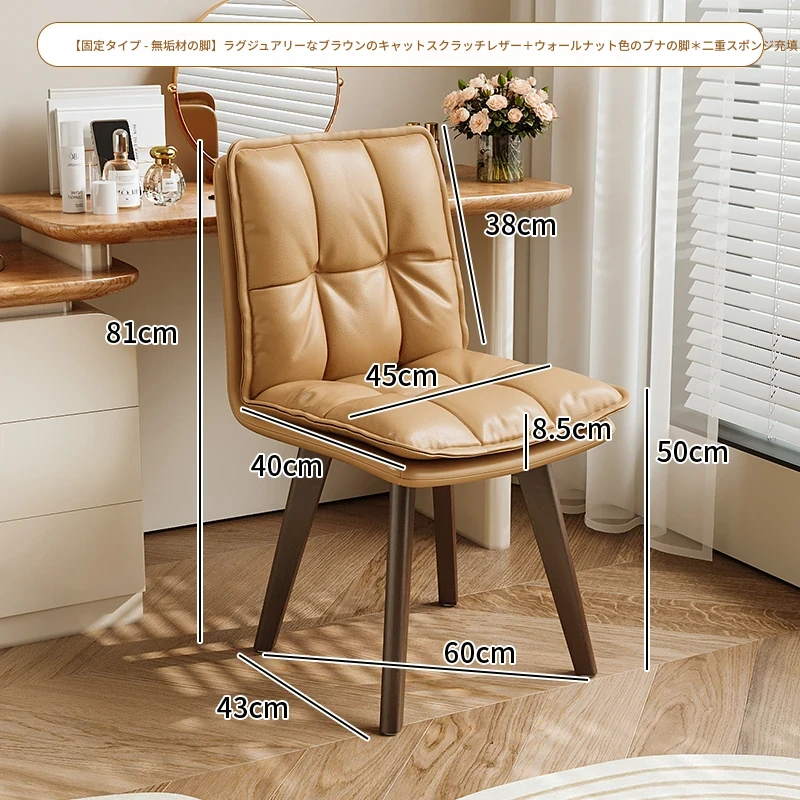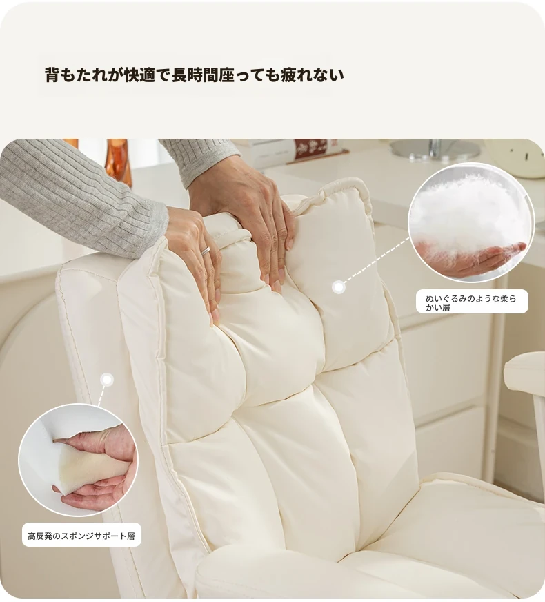 プレミアム化粧台用スツール|女の子のための快適な化粧椅子|クリーミーなデザインで、おしゃれな寝室を演出|背もたれ付きで長時間座っても疲れにくい!