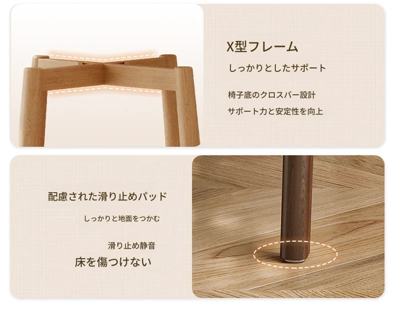 【360°回転-無垢材脚】クリーム色のキャットスクラッチ+ナチュラル色のブナ材脚*二層スポンジ充填