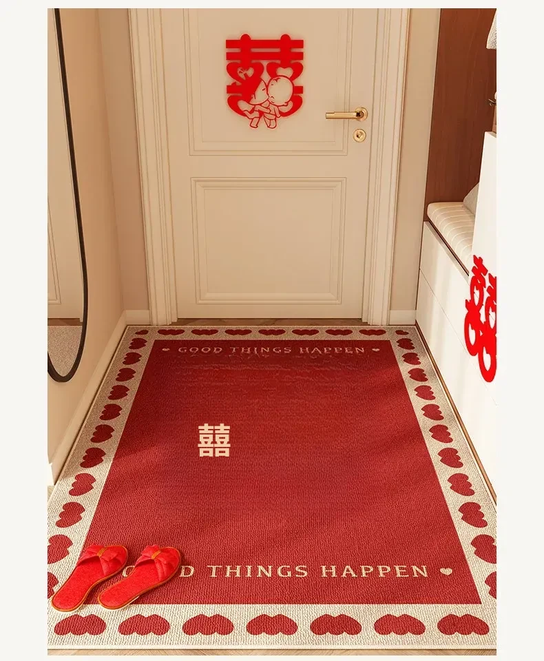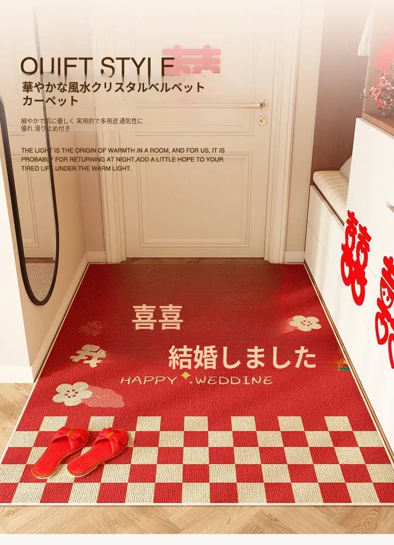 結婚祝いの玄関マット!新居を彩る赤色の縦型マット - 喜びの瞬間を迎えるための特別な一品。新婚生活のスタートを華やかに演出します。