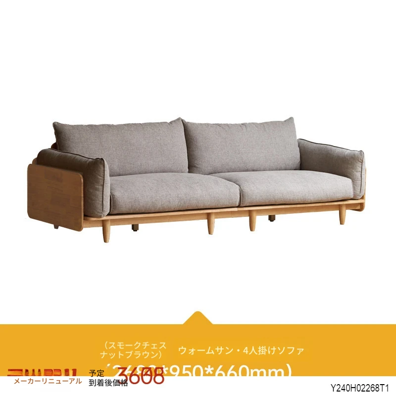 【源氏木语x维莎】高級無垢材モダンシンプルソファ - 快適でスタイリッシュな4人掛けリビングソファ