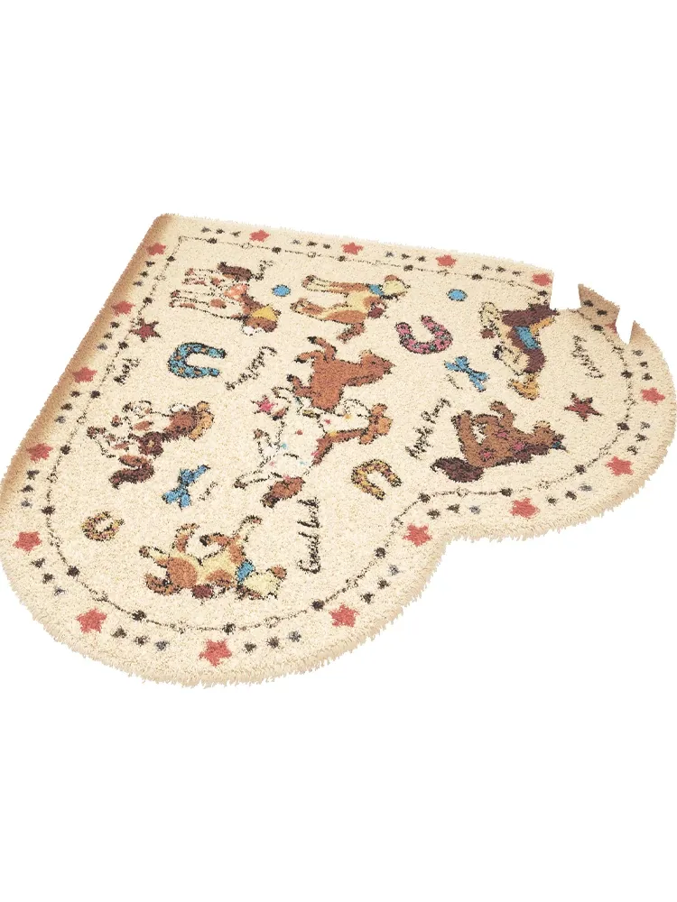 星野小馬点塑底の子羊の毛バスマット-ハート型