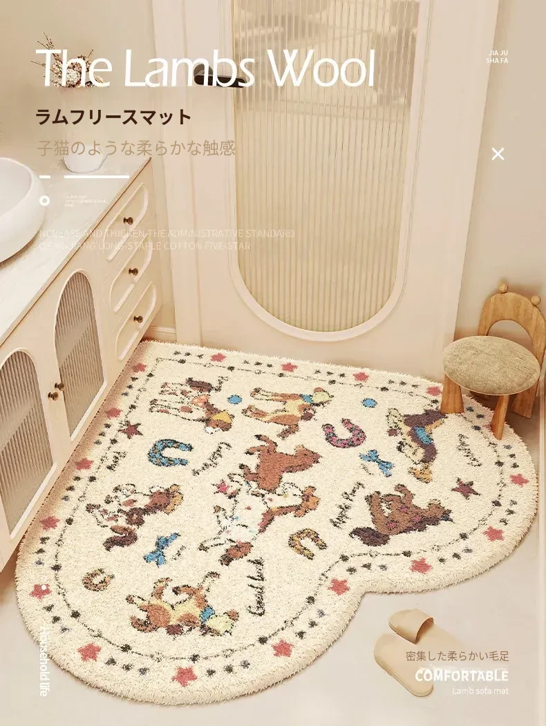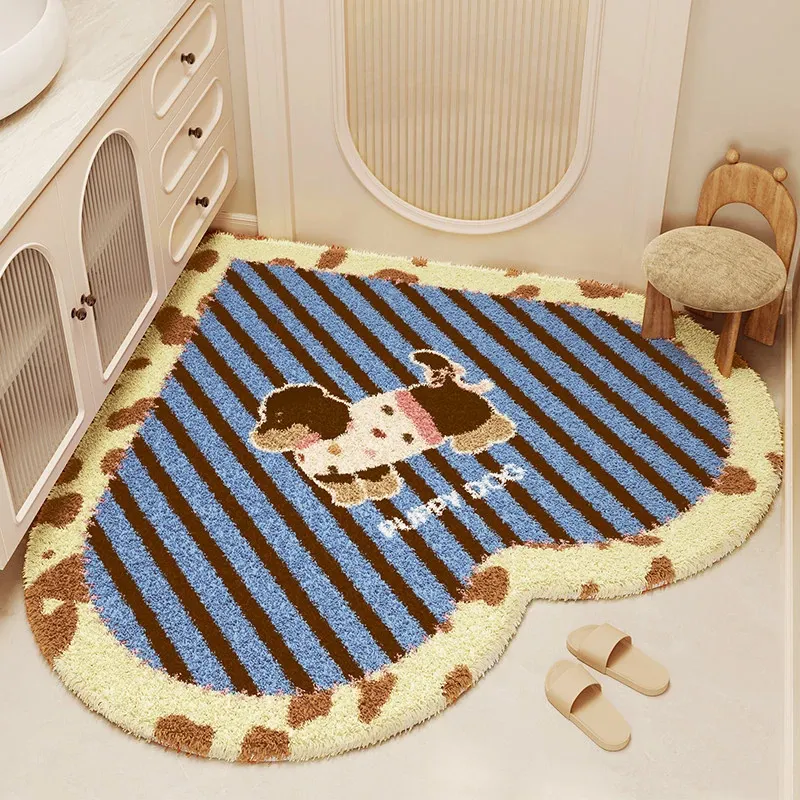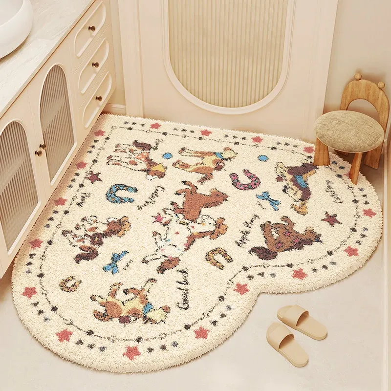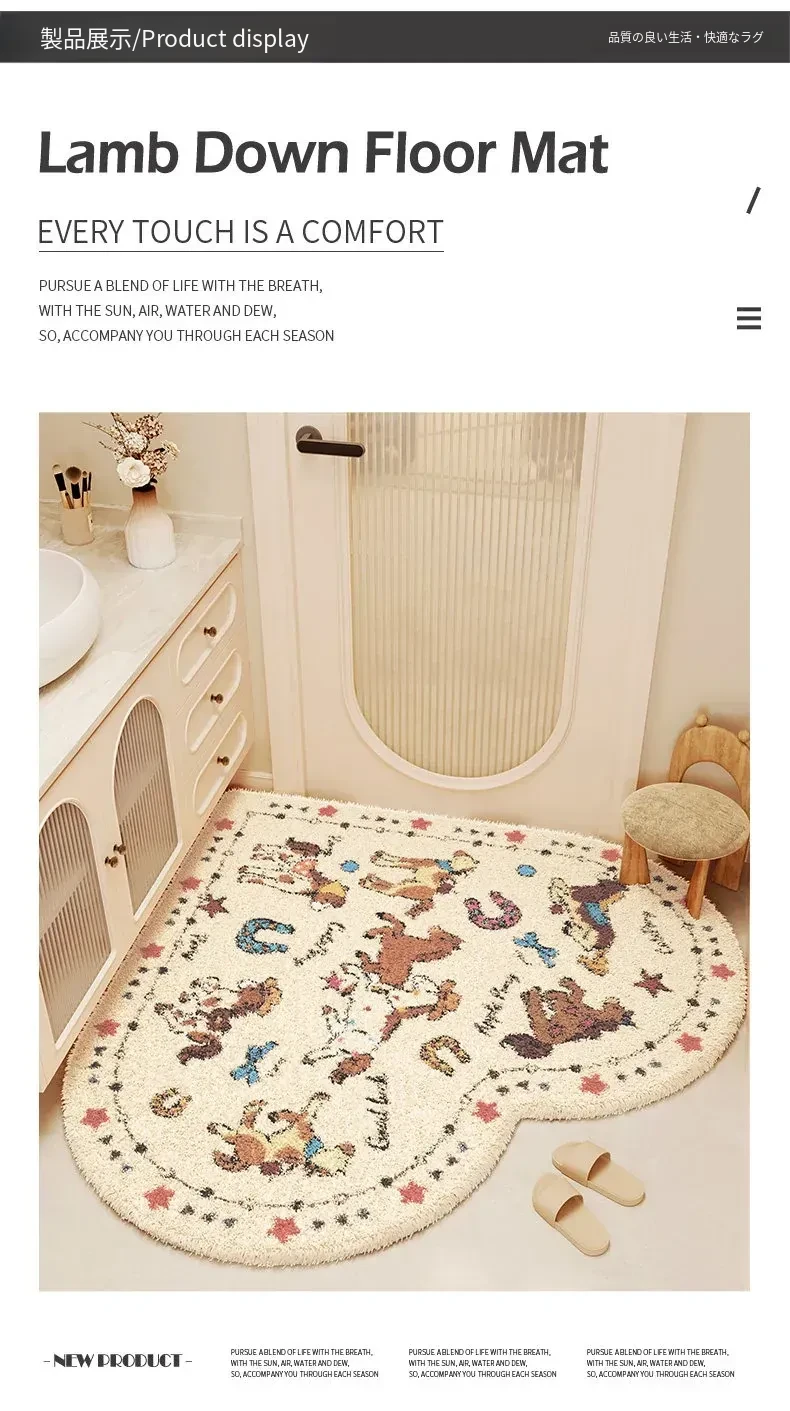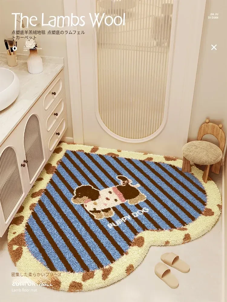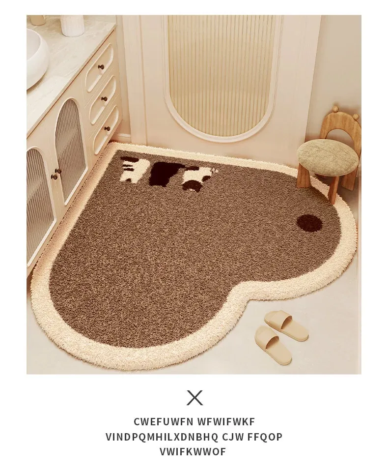 クリーム風ハート型バスルームマット - 吸水性抜群で冬も暖かい!トイレや洗面所に最適なふわふわな滑り止めマットで、快適な足元を実現!