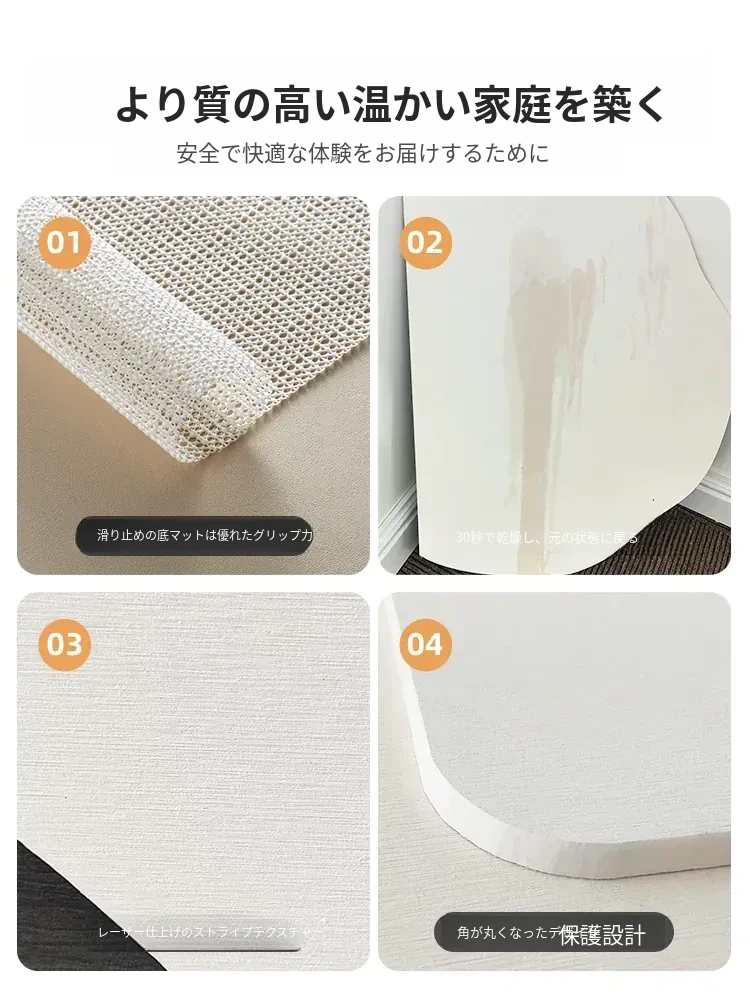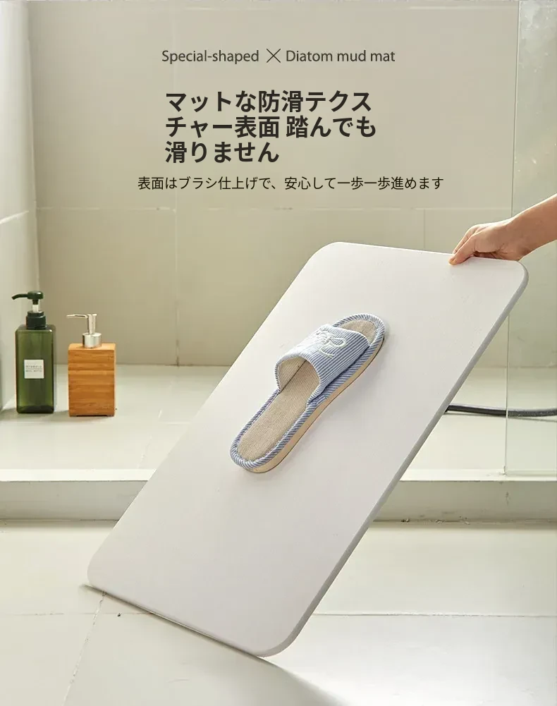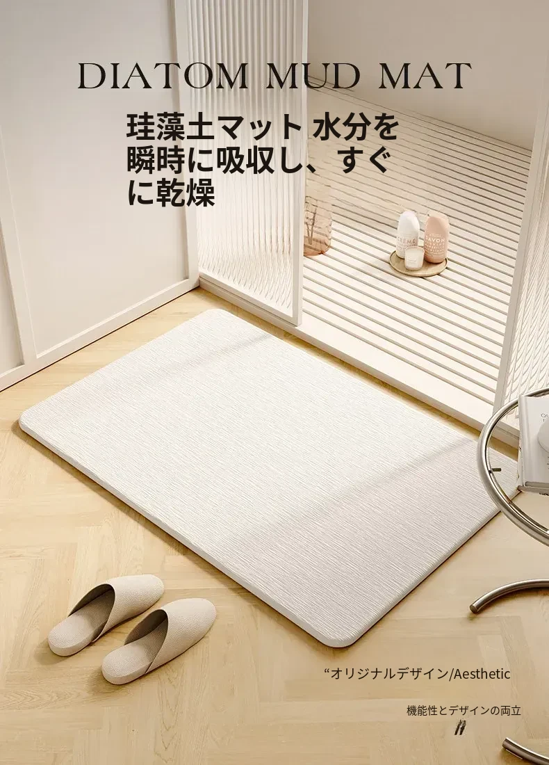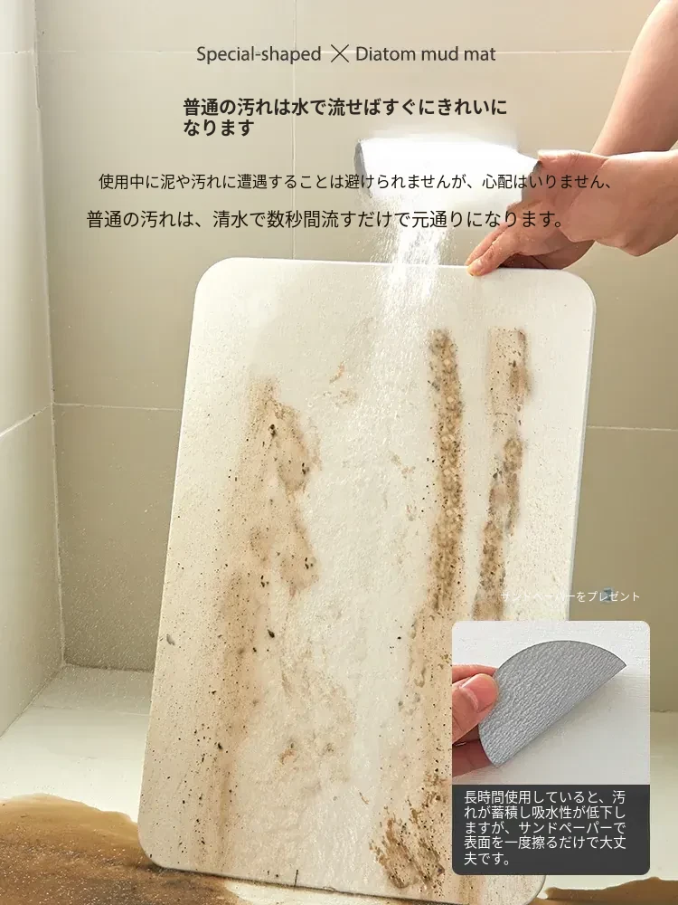 強力吸水&速乾!滑り止め付き硬質珪藻土マット - 浴室・シャワー・トイレ用、快適な足元を提供するおしゃれな玄関マット。