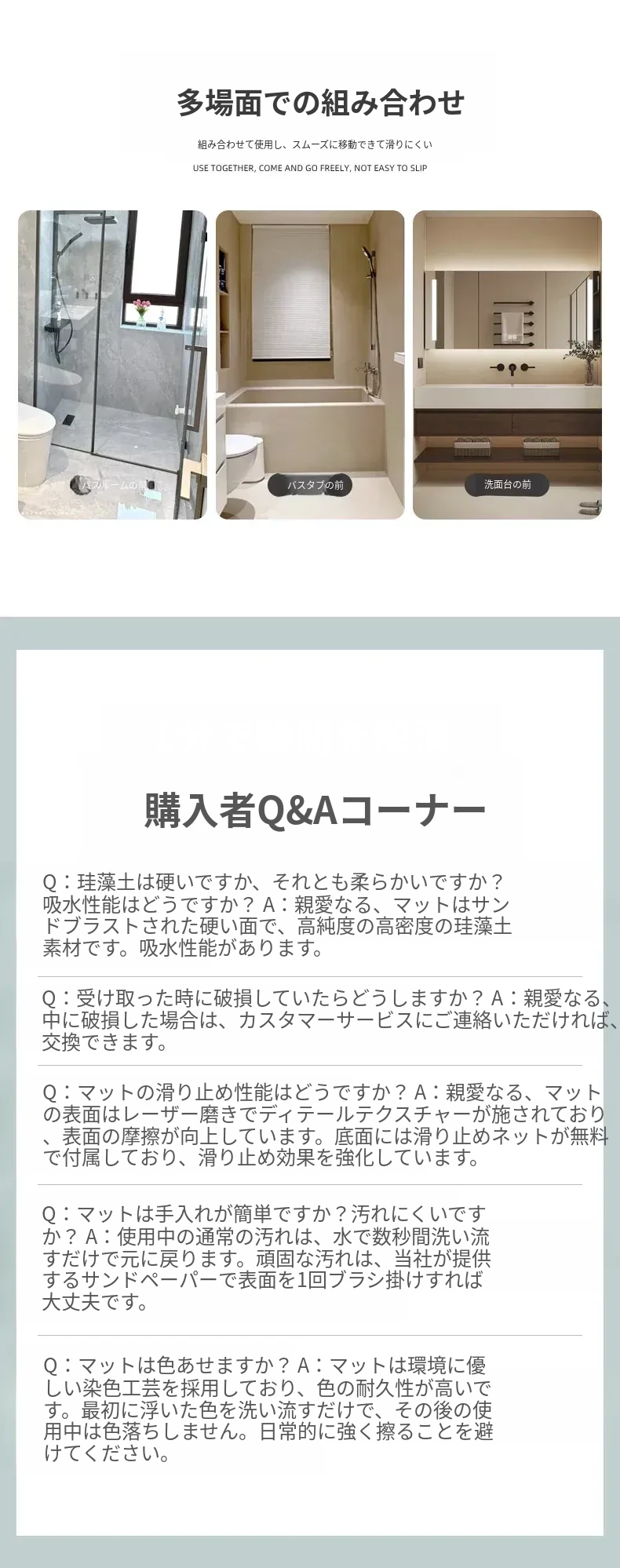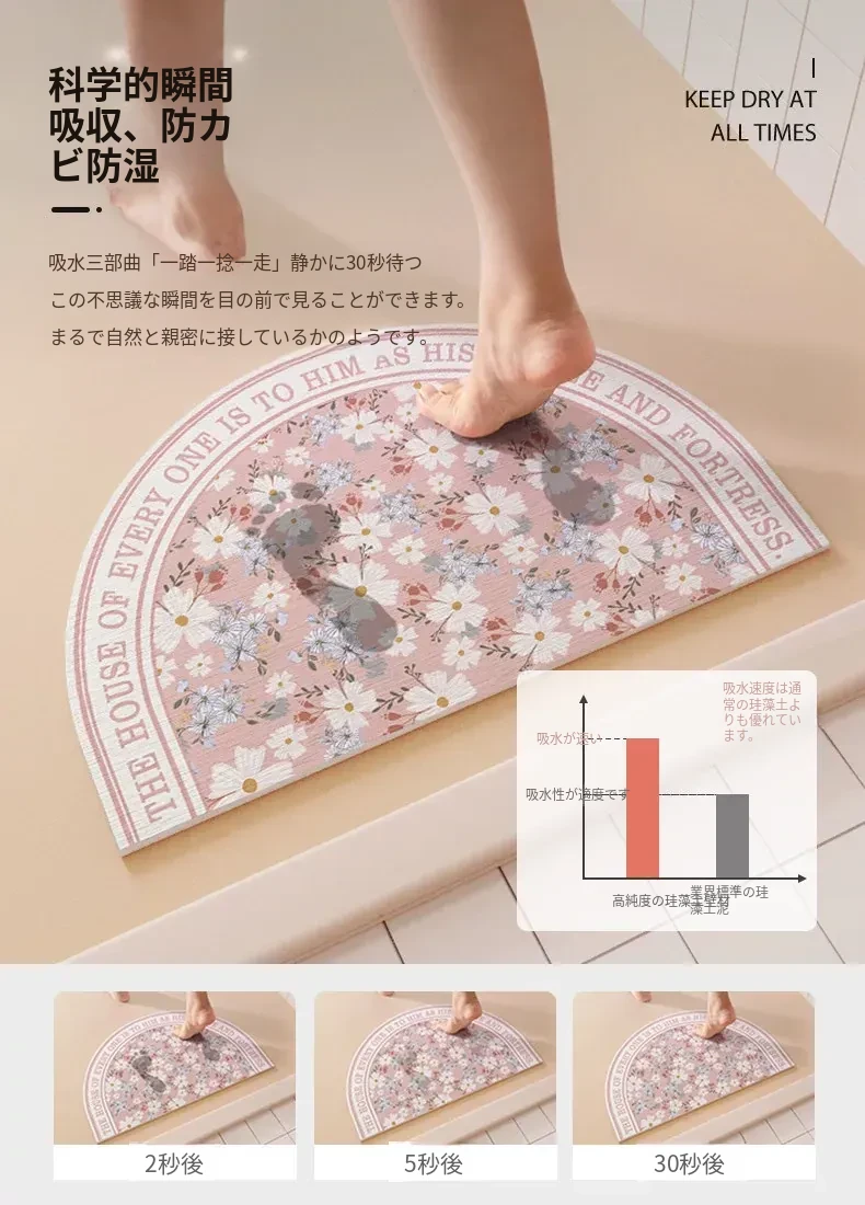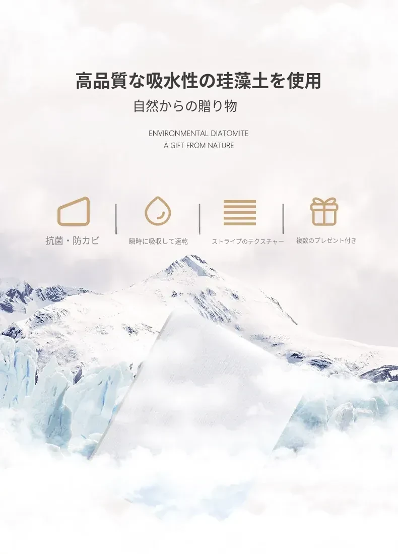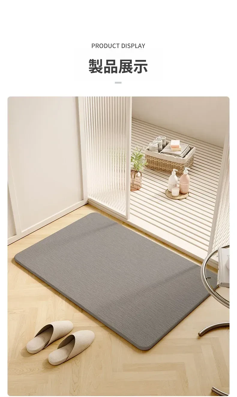 強力吸水&速乾!滑り止め付き硬質珪藻土マット - 浴室・シャワー・トイレ用、快適な足元を提供するおしゃれな玄関マット。