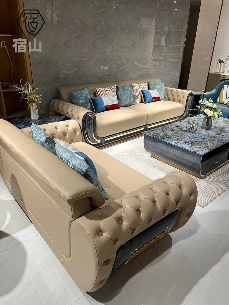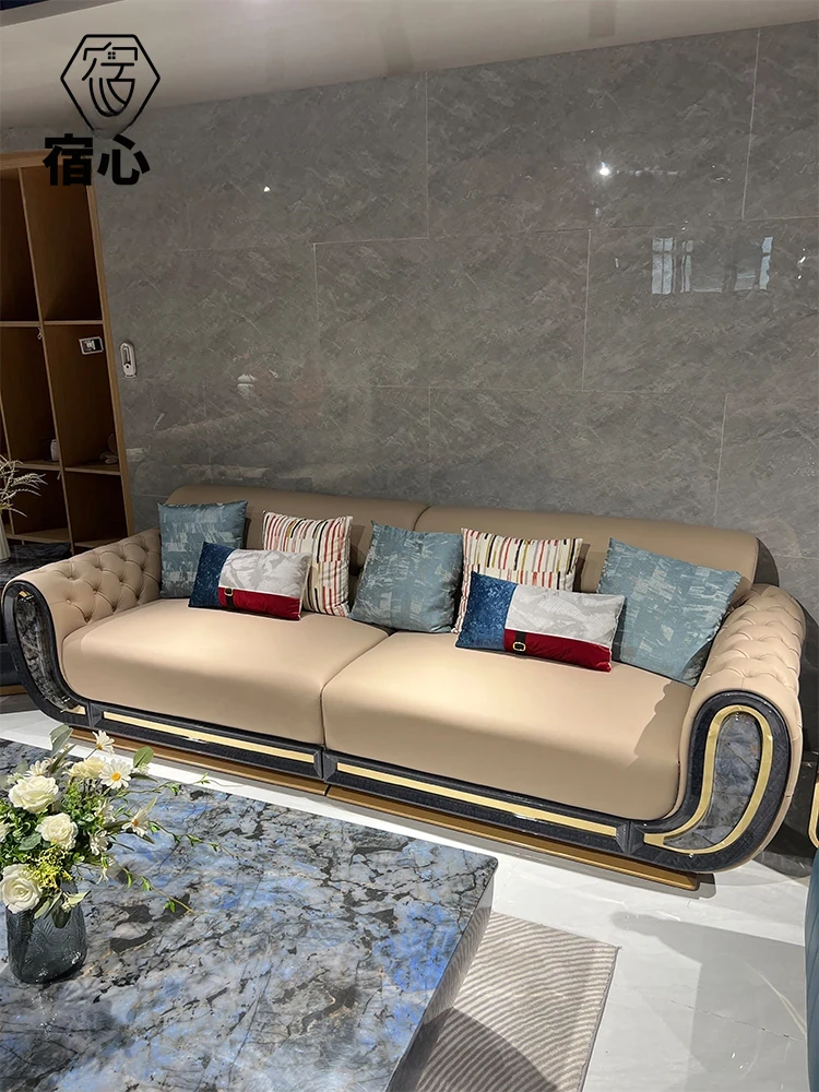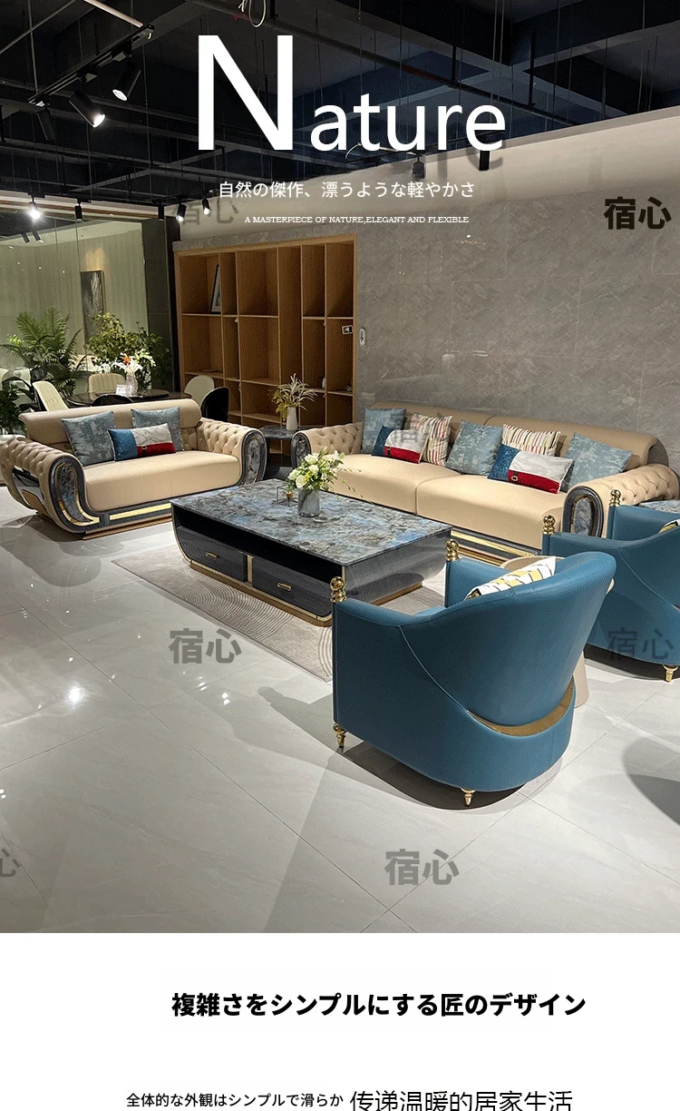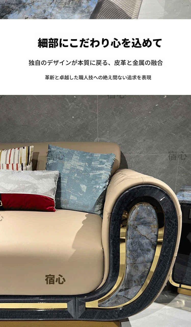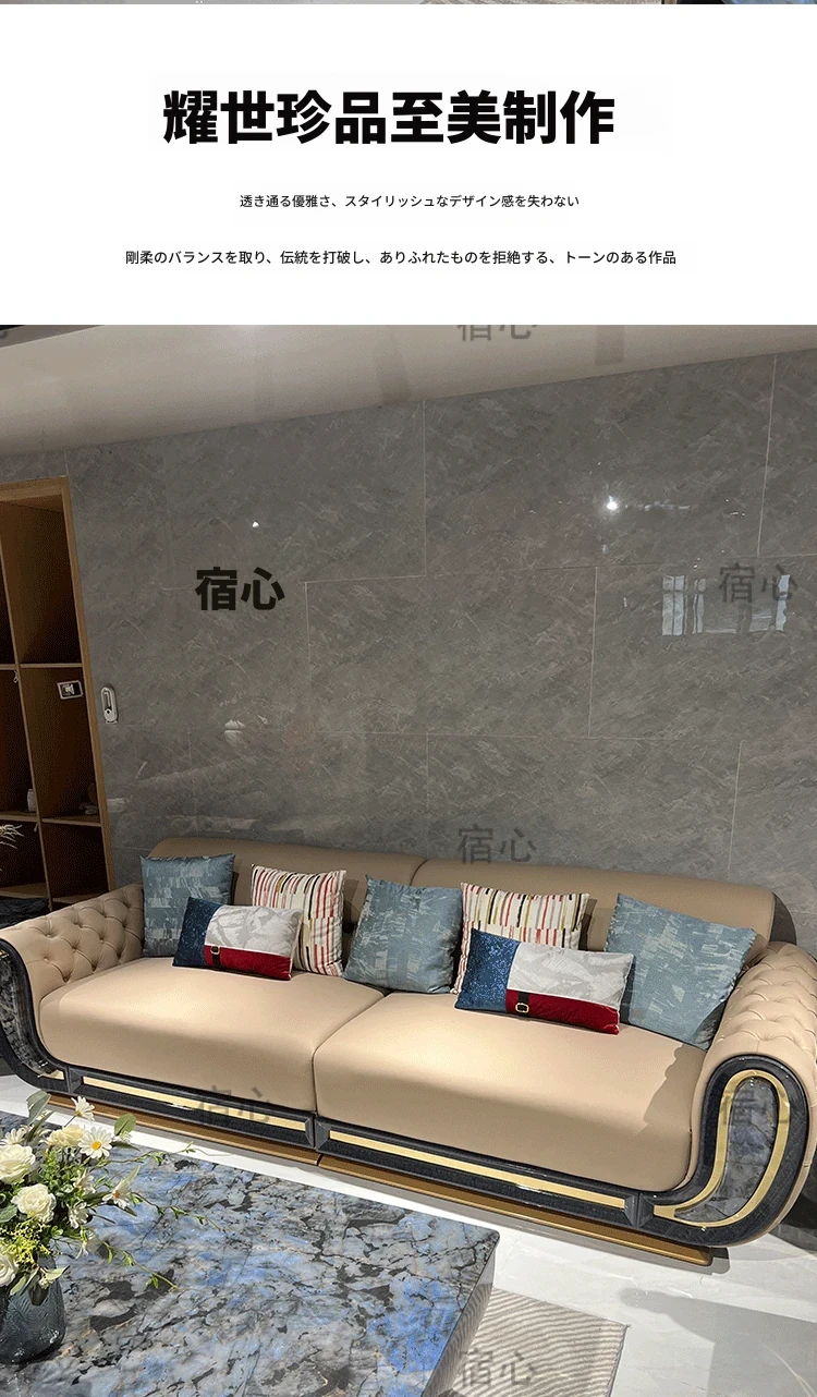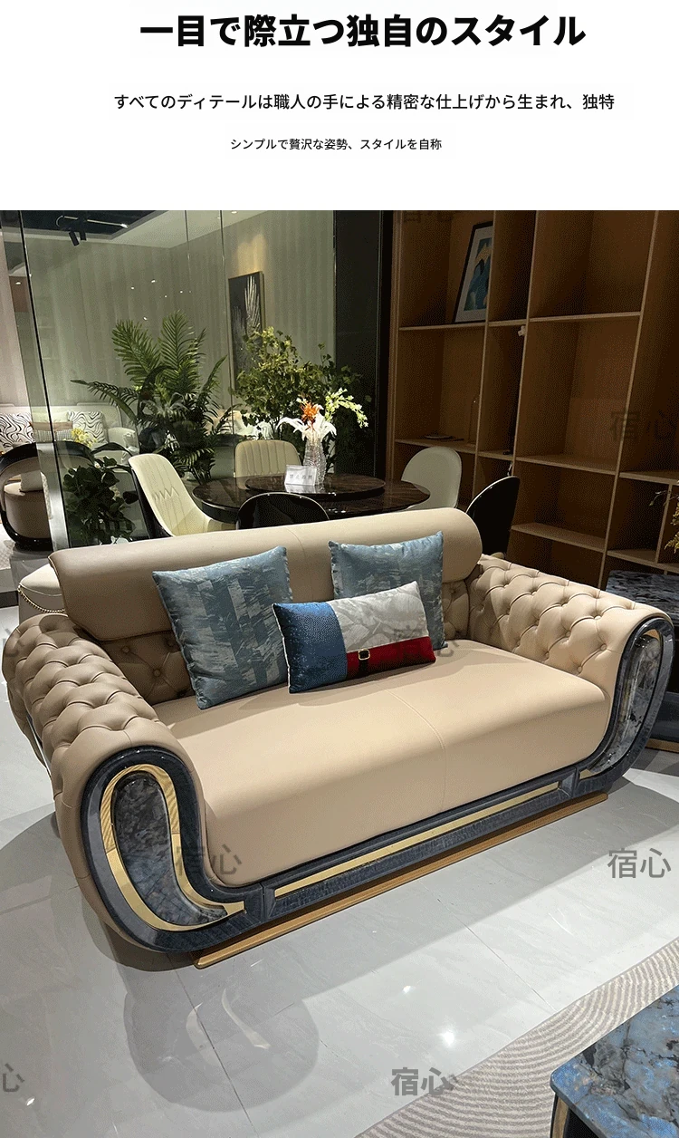 イタリアンラグジュアリーソファ - 高級感溢れるモダンデザイン、真皮仕様の豪華なリビング空間を演出!広々とした大邸宅やヴィラに最適な本格的な木製フレームを使用。あなたのライフスタイルを格上げする一品です。