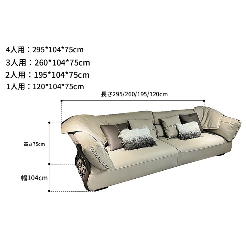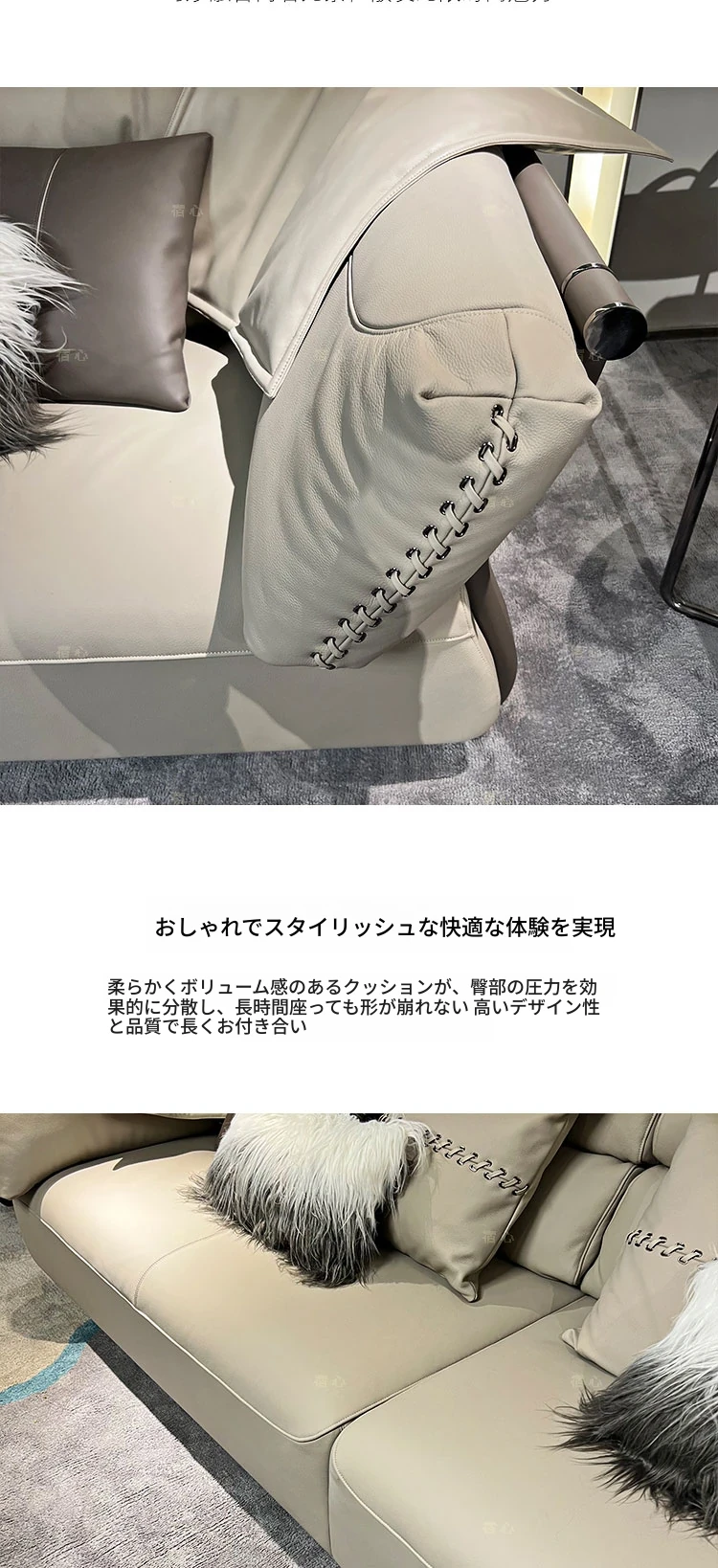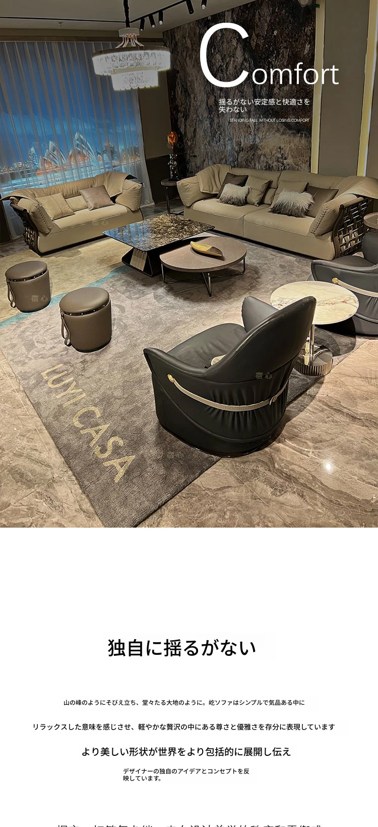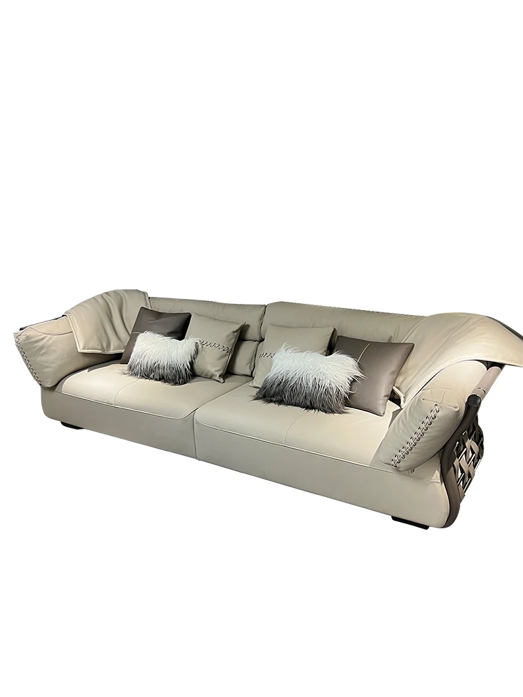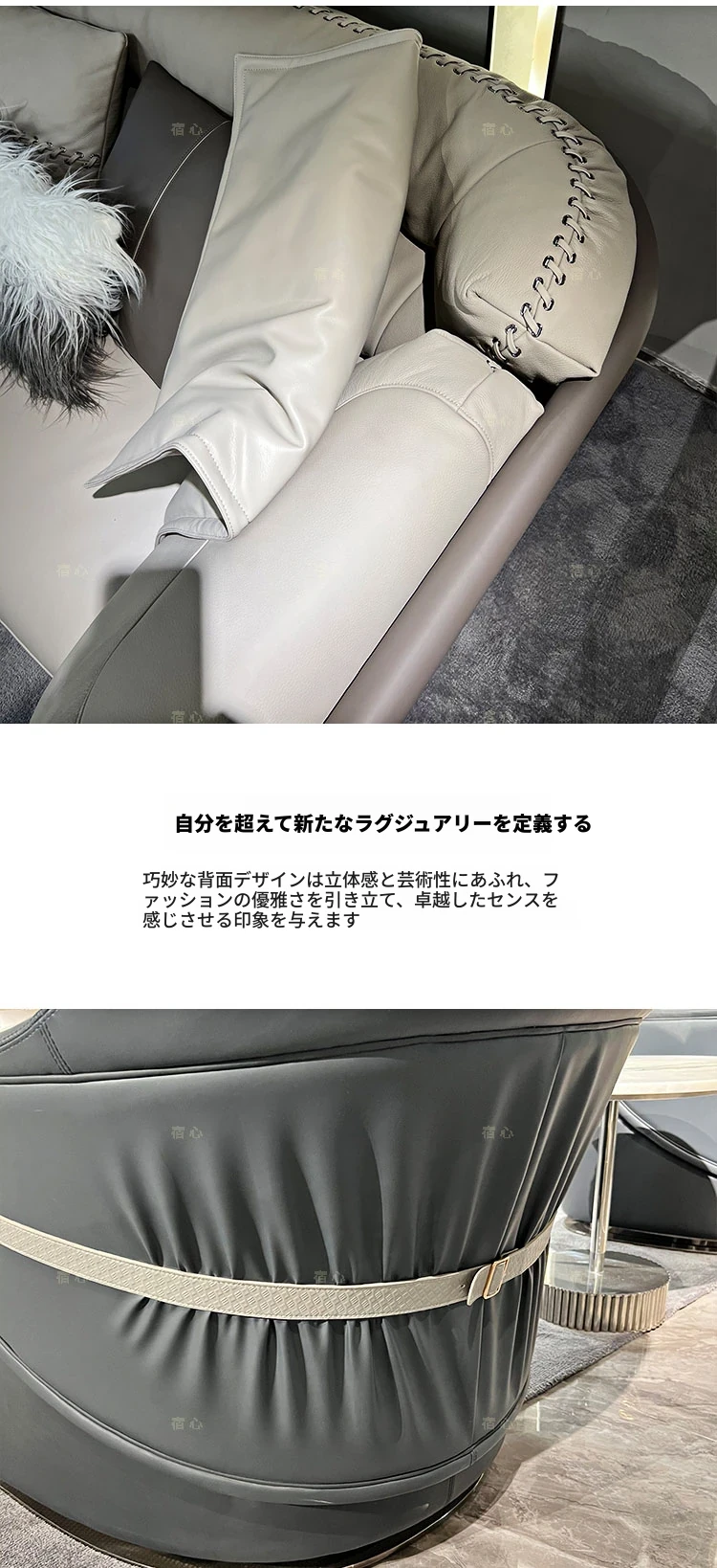 イタリアンモダン・ラグジュアリーソファ|高級木製フレーム&本革使用|豪邸リビングに最適な空間を演出|広々とした大サイズで、贅沢なひとときを提供します!