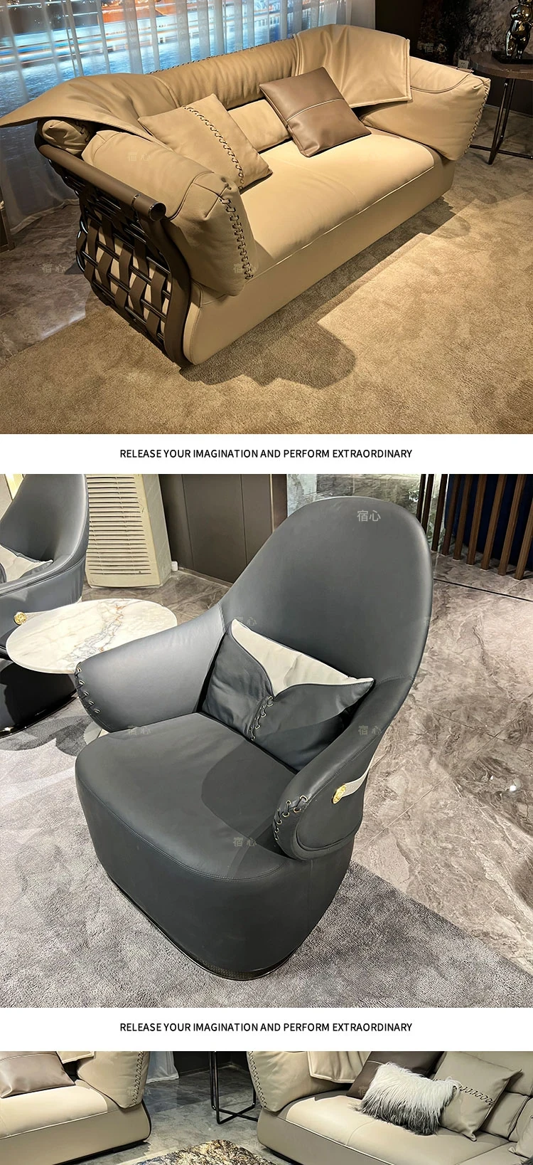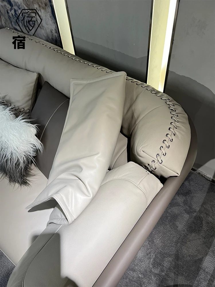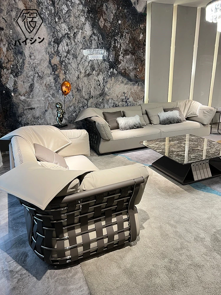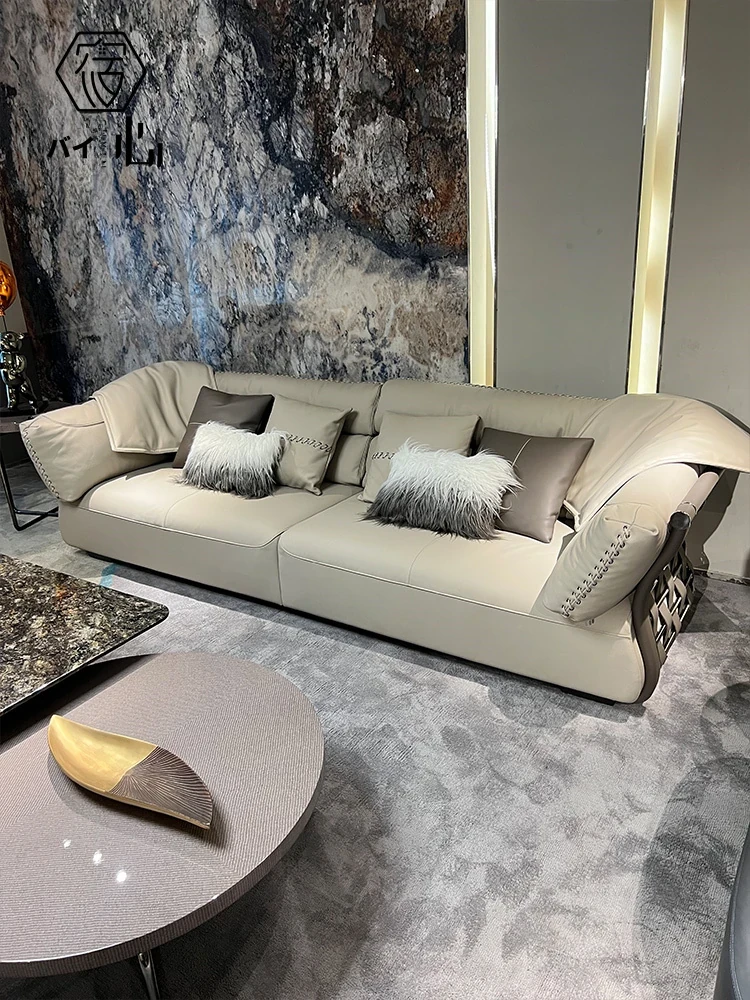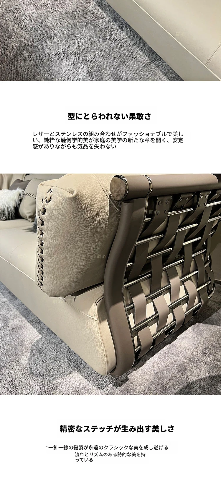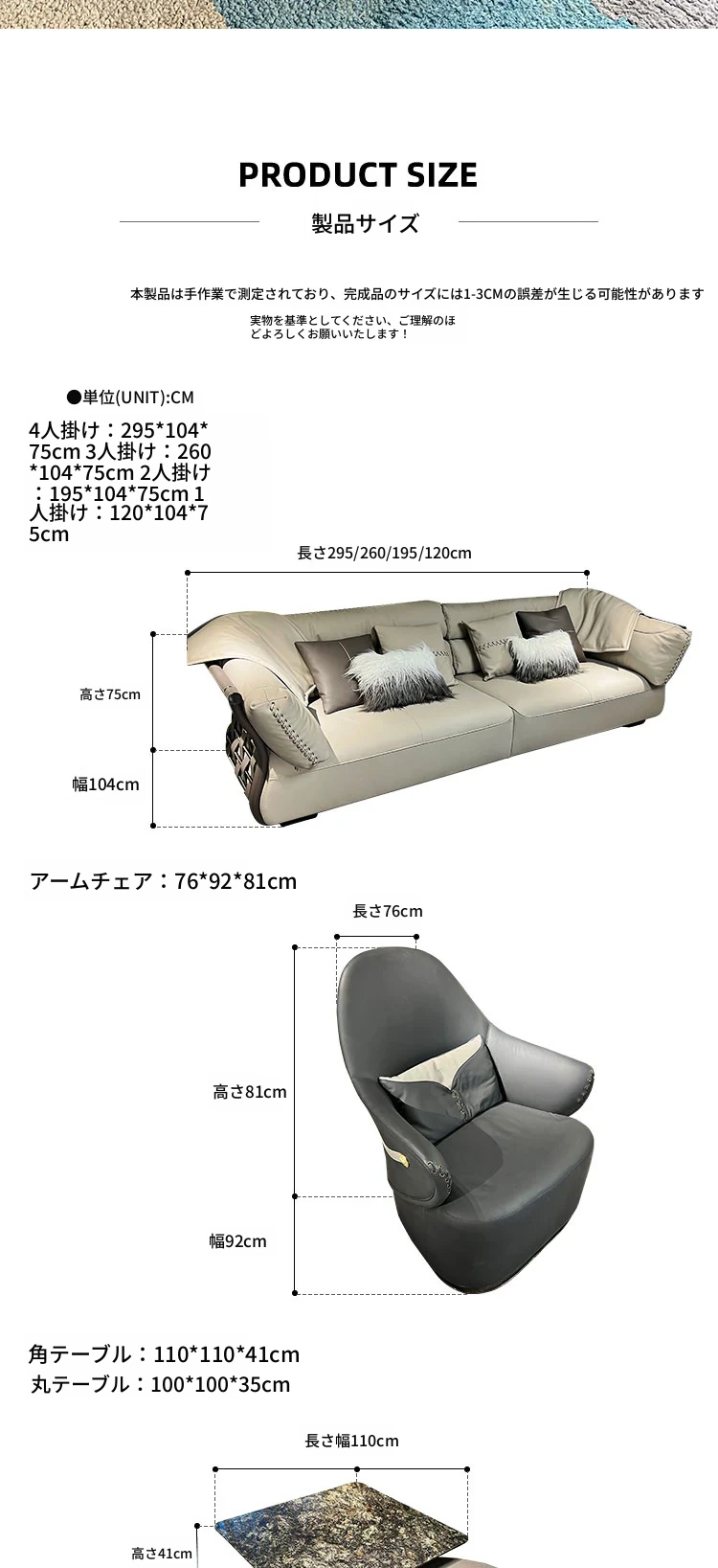 イタリアンモダン・ラグジュアリーソファ|高級木製フレーム&本革使用|豪邸リビングに最適な空間を演出|広々とした大サイズで、贅沢なひとときを提供します!
