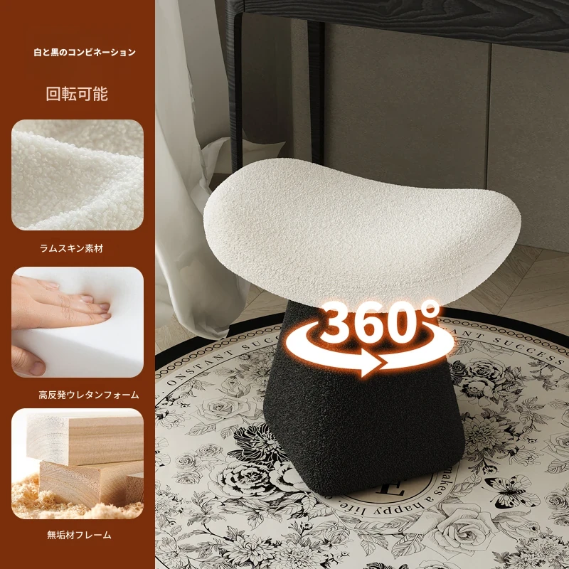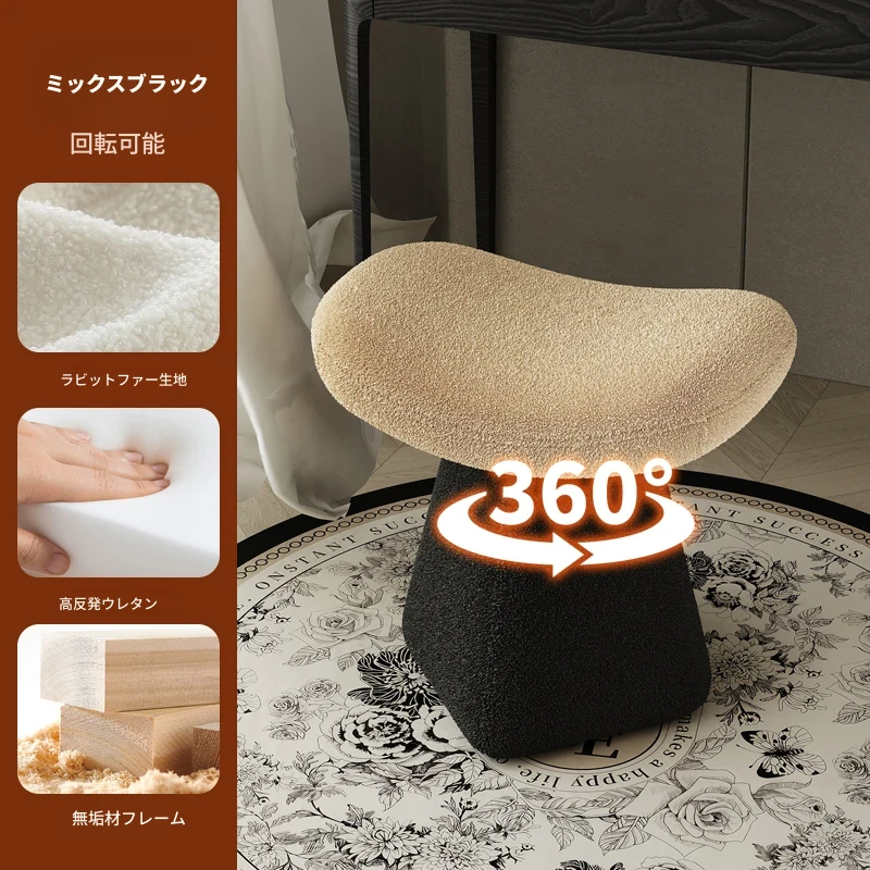 360°回転可能丨アイボリー×ブラック(長毛ラビットファー+全木フレーム)