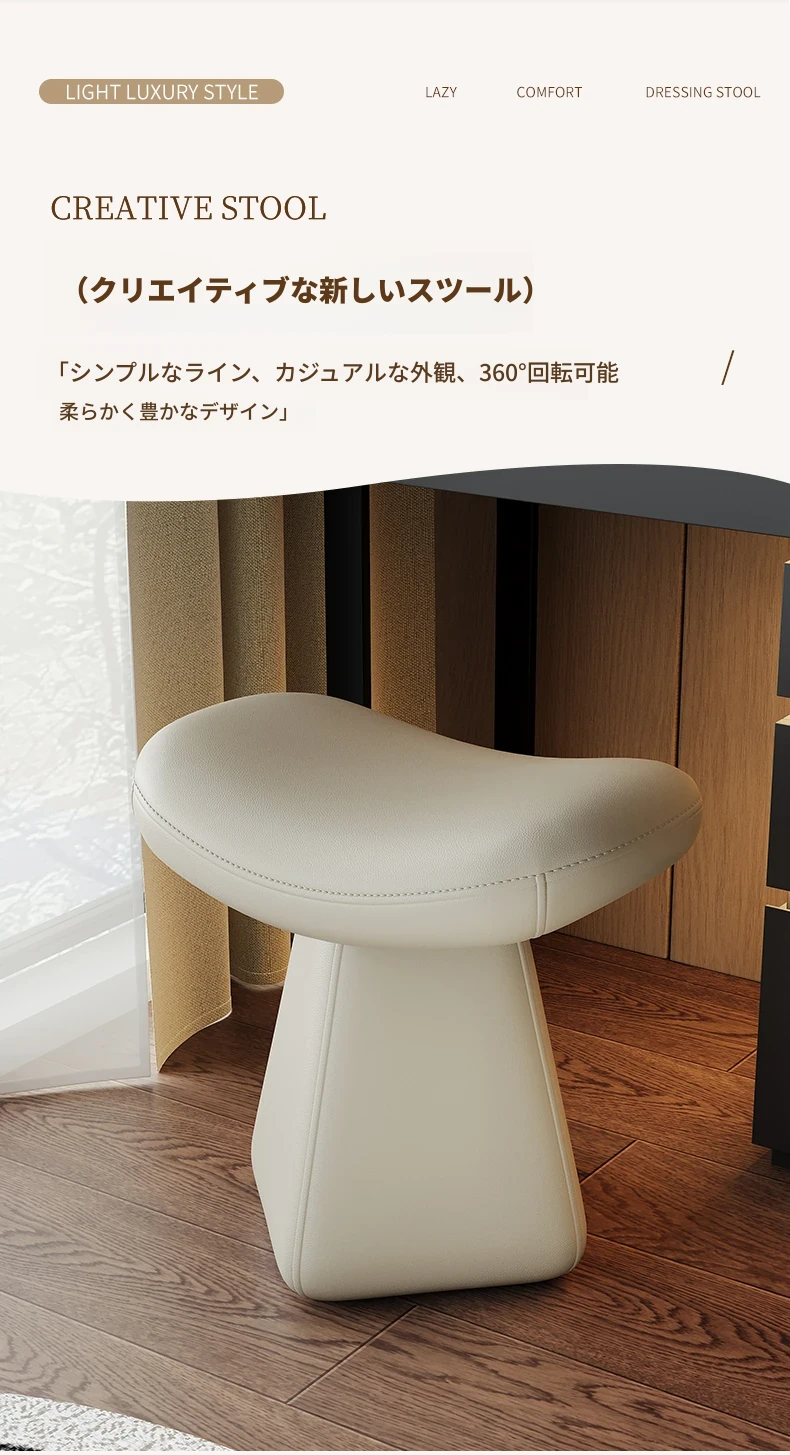 日本直輸入MUJIE化粧椅子!高級感溢れるドレッシングテーブル専用、女性にピッタリのスタイリッシュなソファスツールで、おしゃれな衣装部屋を演出!