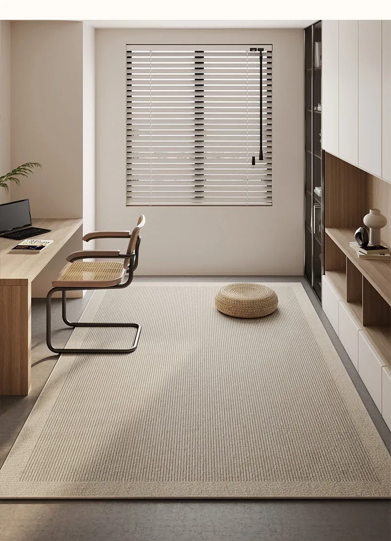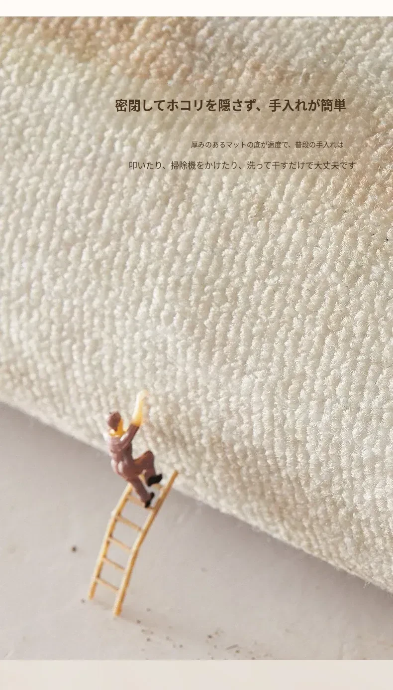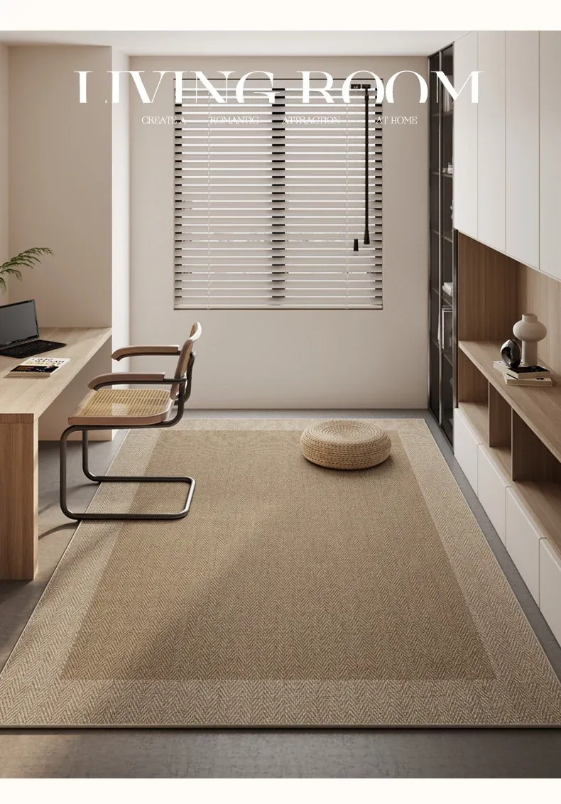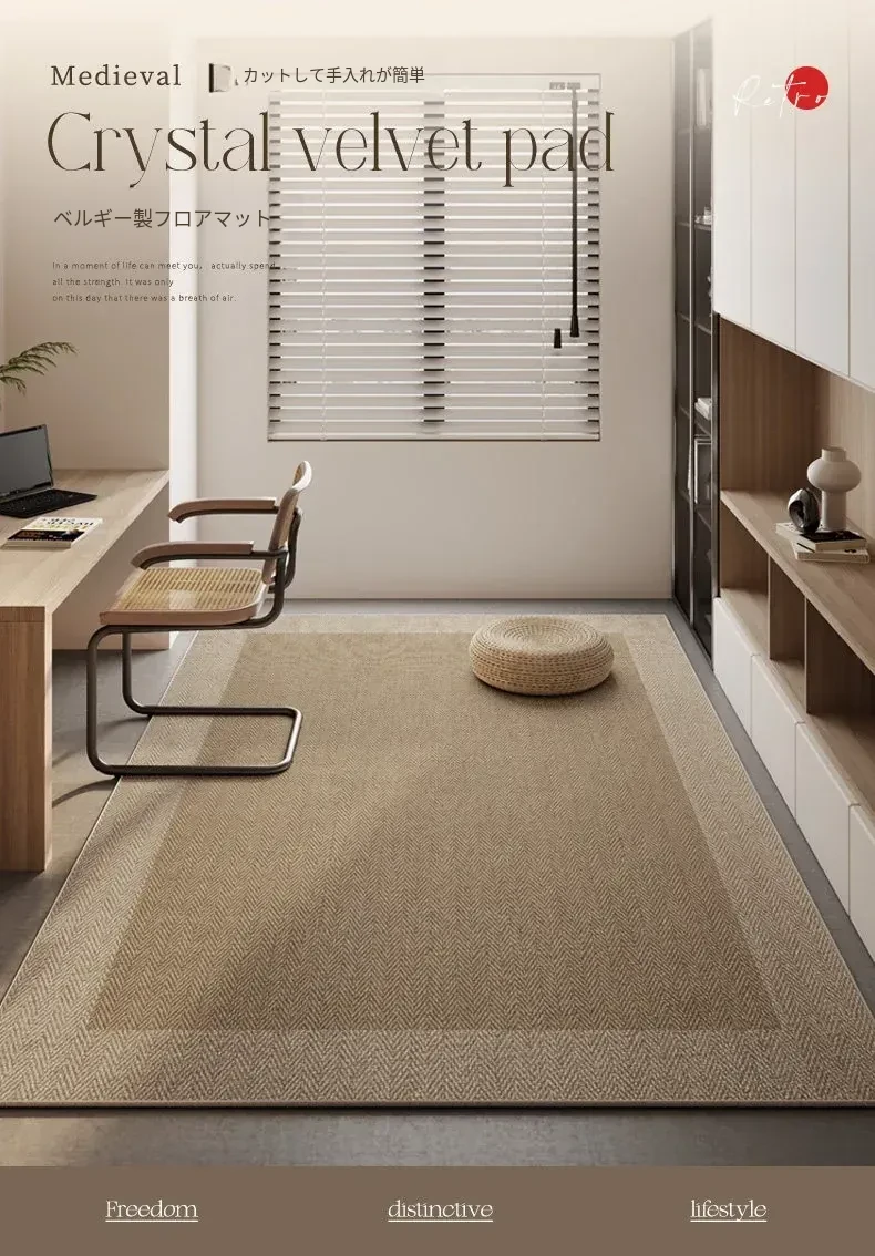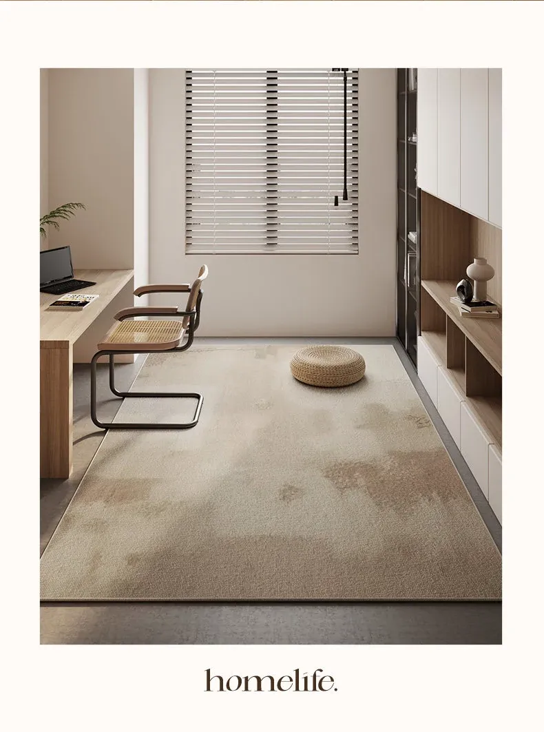 和風侘寂スタイルの広々としたリビングマット - 寝室にも最適!お手入れ簡単で、パソコンチェアやデスクの下にぴったりな洗えるラグ。心地よい空間を演出します!
