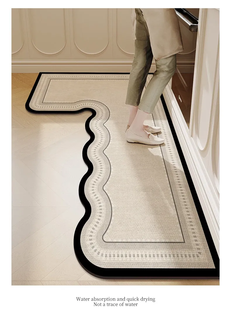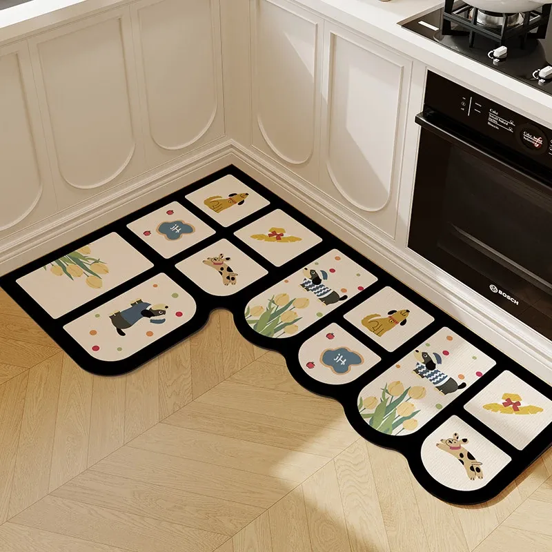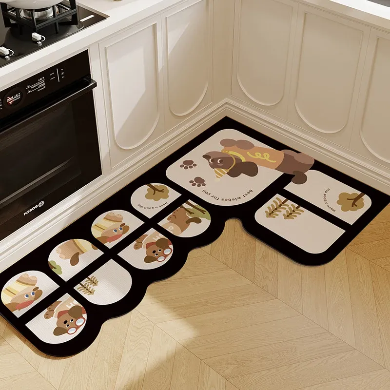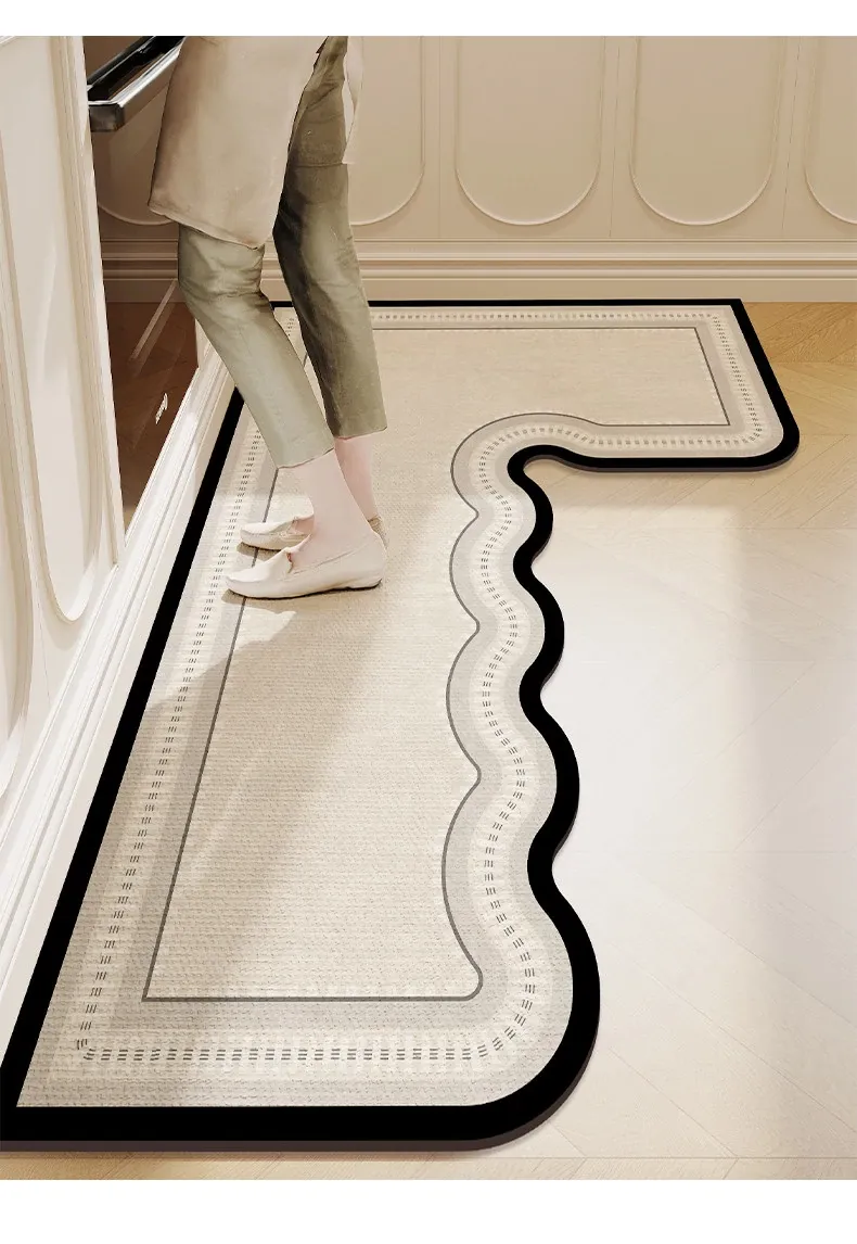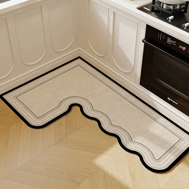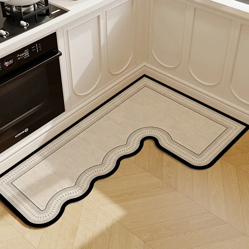 キッチン専用L型防滑防油マット!カラフルなカーペットでおしゃれな七字型、洗える角型吸水フットマット。滑り止め効果で安全に、清潔感もアップ!お料理をもっと楽しくするアイテムです。